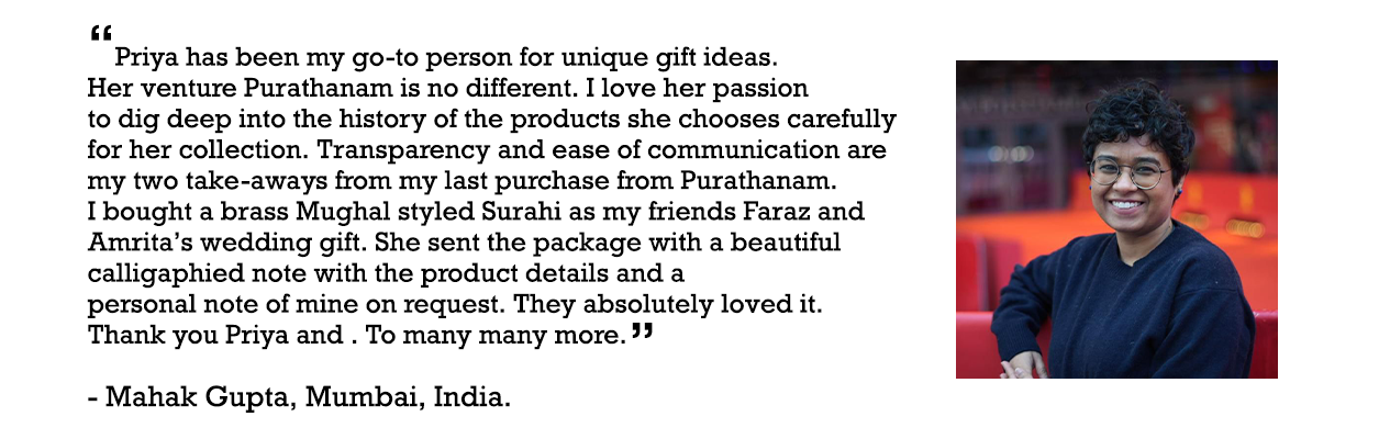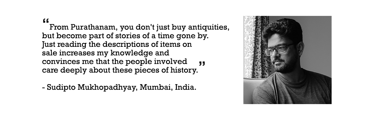 Purathanam is a word used in most Indian languages to refer to objects which are old and vintage. The objects we use in our day to day lives have a story to say about us and hence become a part of our history. Our aim is to find such unique objects across time and bring them to you to be made part of your lives and spaces.