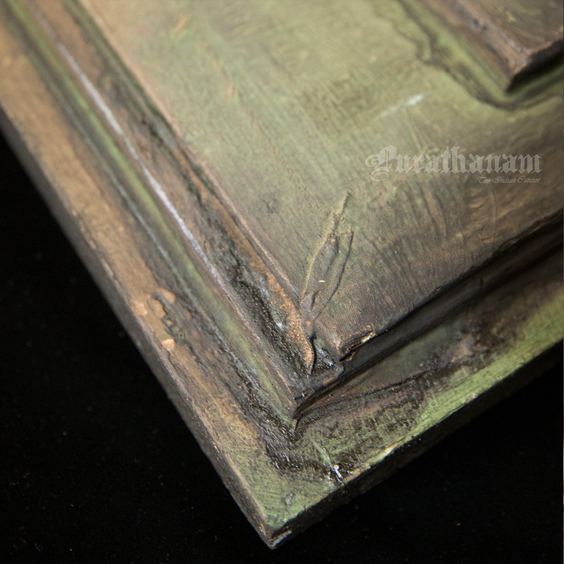 - No Glass Protection: Back in the day, Tanjore paintings were framed using teak wood and did not have protective glass covers, they were displayed openly. Due to less pollution they were safe even without a glass cover.