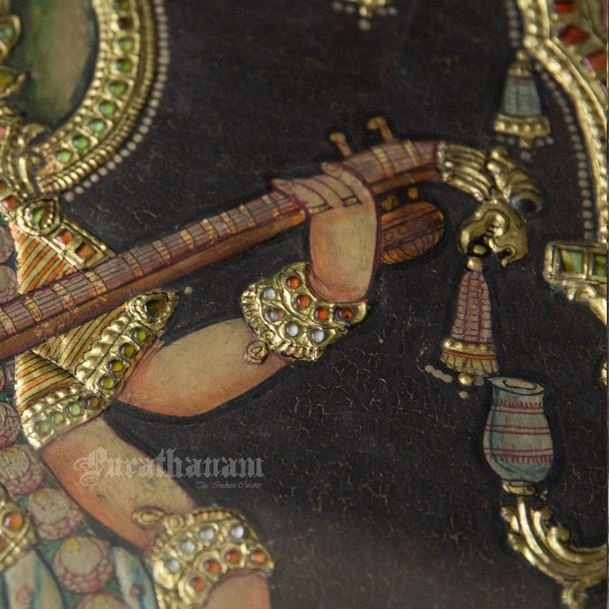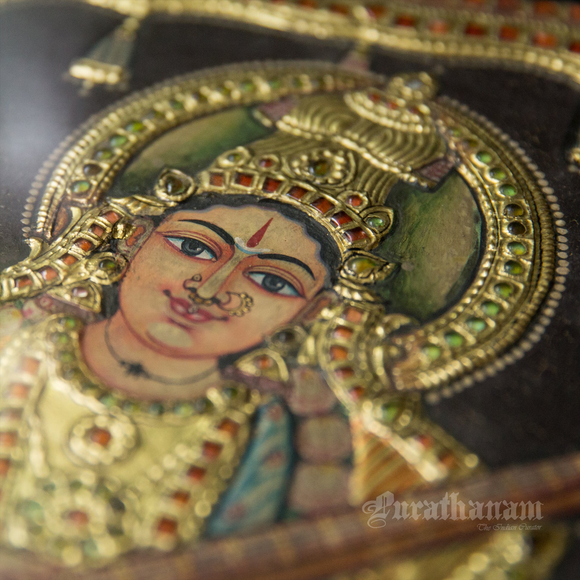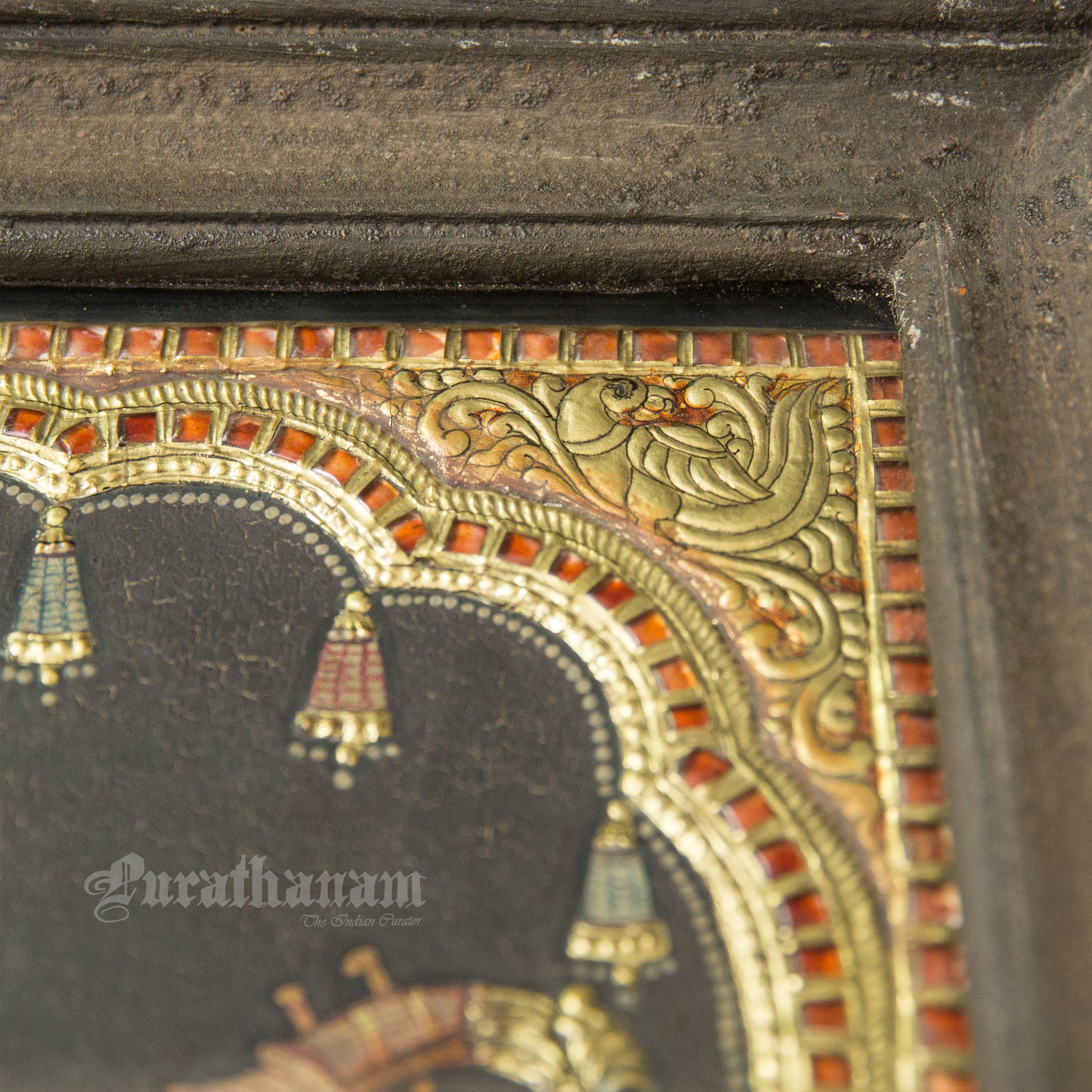 Tanjore Painting (or Tanjavur Painting), as the name suggests, comes from the city of Tanjavur in South India. This style of painting was introduced during the reign of King Raghunatha Nayakkar in the 16th century CE. Until the 13th century, Tanjore was ruled by the Chozhas (Cholas), after which it was captured by the Nayakars of the Vijayanagara Empire. The Tamil region was then divided into three Nayakships — Madurai, Tanjore, and Gingee.