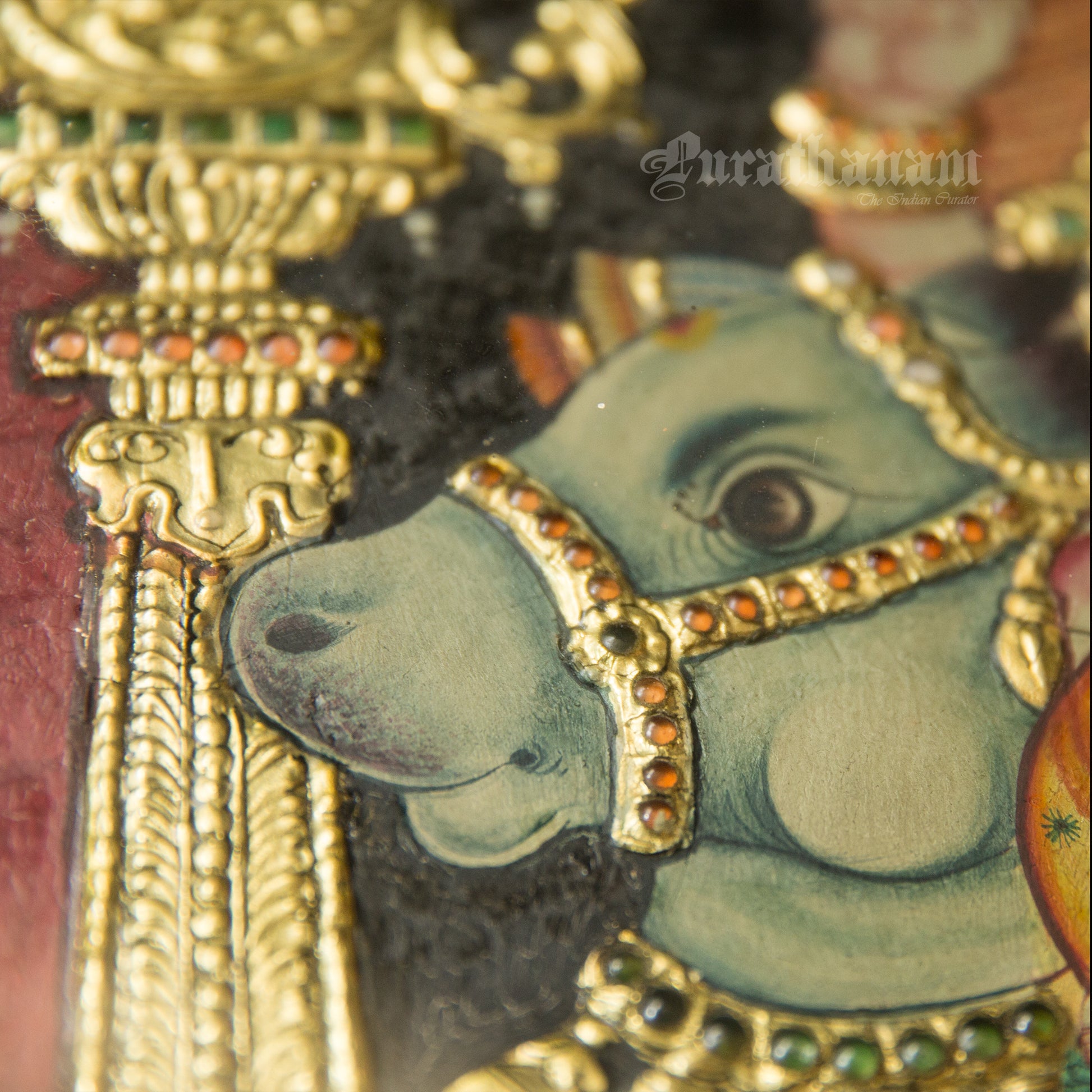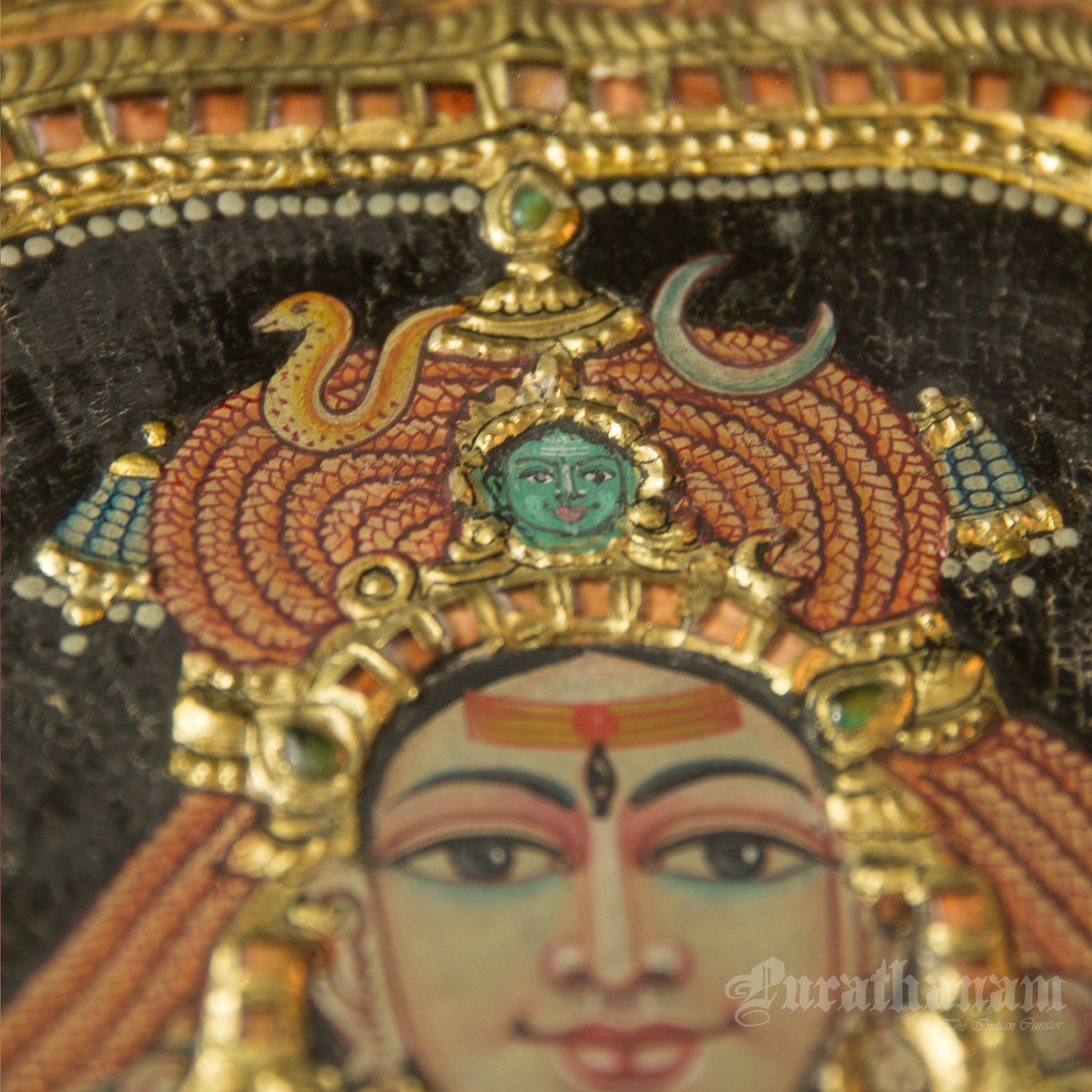 - Nose Rings Came Later: The nose rings on deities seen in Tanjore paintings are relatively new. Tanjore painting artisans say the earliest paintings had no nose rings on deities, and this is one way to judge the age of a painting. Nose rings are not seen in Chola bronzes or in early Pandya stone idols. It’s understood that there were no nose rings on Devis until the Chozha period. Later, we can see the influence of the Mughal period in Tanjore paintings.