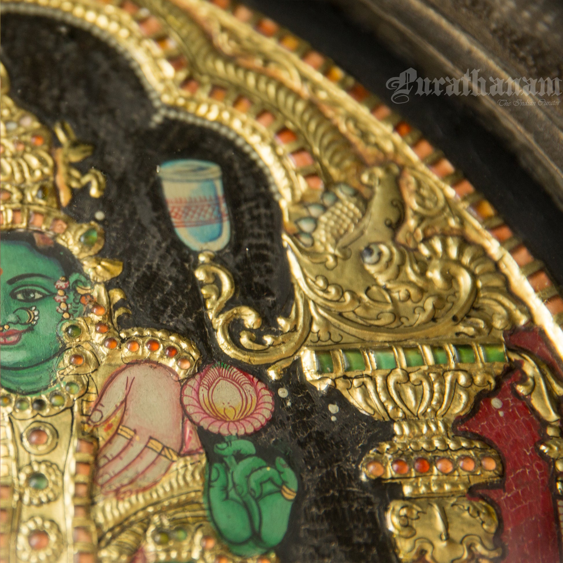 - No Glass Protection: Back in the day, Tanjore paintings were framed using teak wood and did not have protective glass covers, they were displayed openly. Due to less pollution they were safe even without a glass cover.