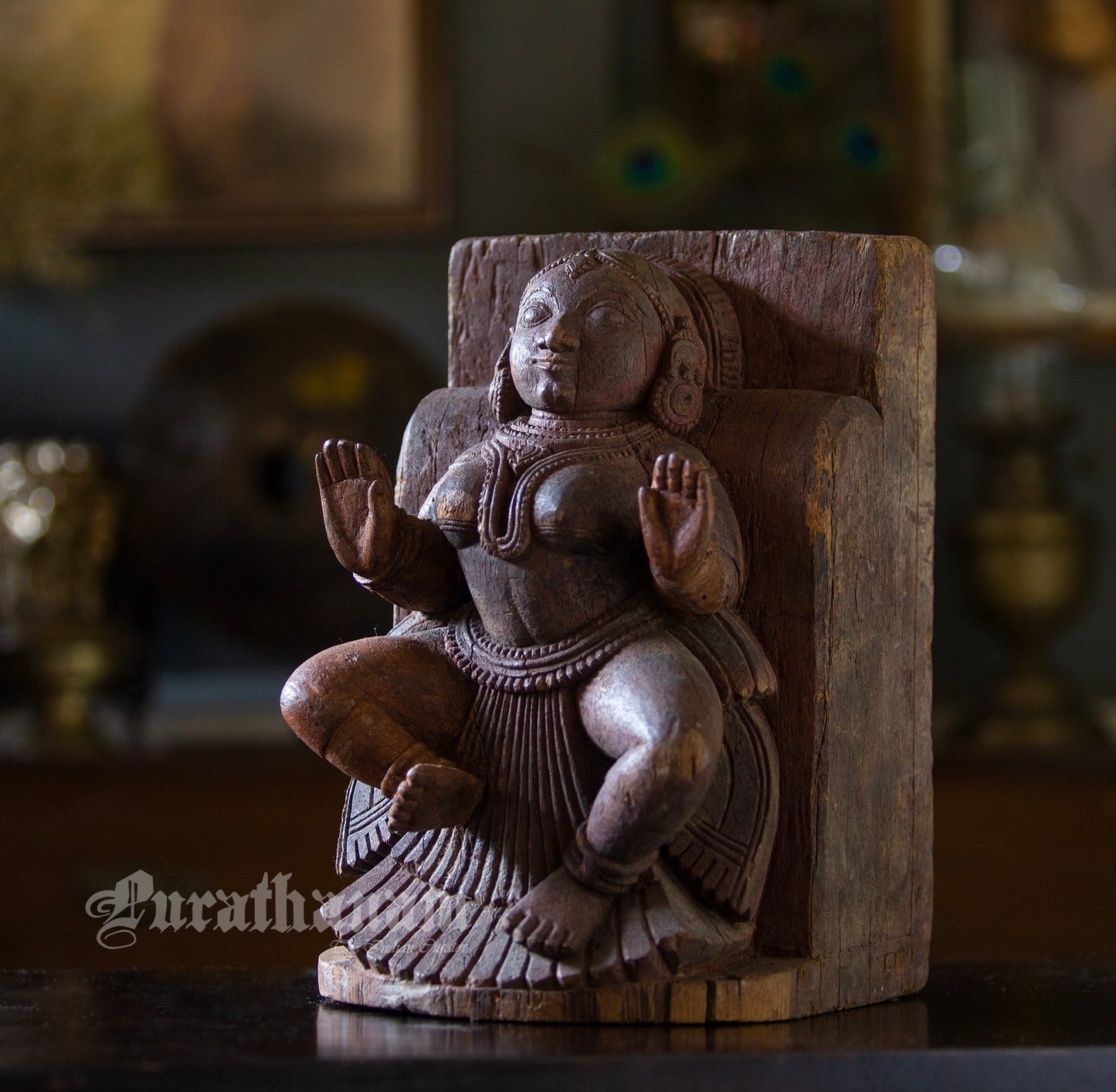 Here is a beautiful Apsaras wooden sculpture from Southern part of India. It is more than 100 years old.
