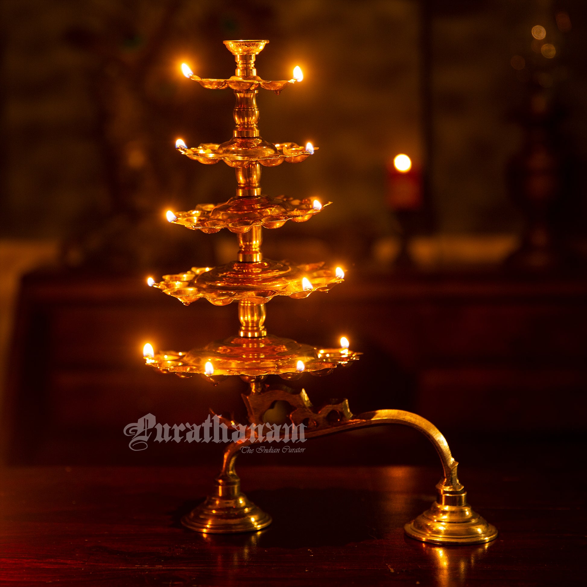 Here we have a beautiful decorative 5 layered arthi Lamp with multiple wicks on each layers.