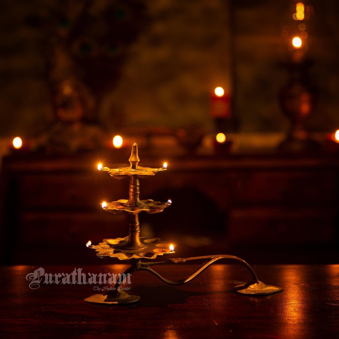 Here we have a beautiful decorative 3 layer Arthi Lamp with multiple wicks on each layers.