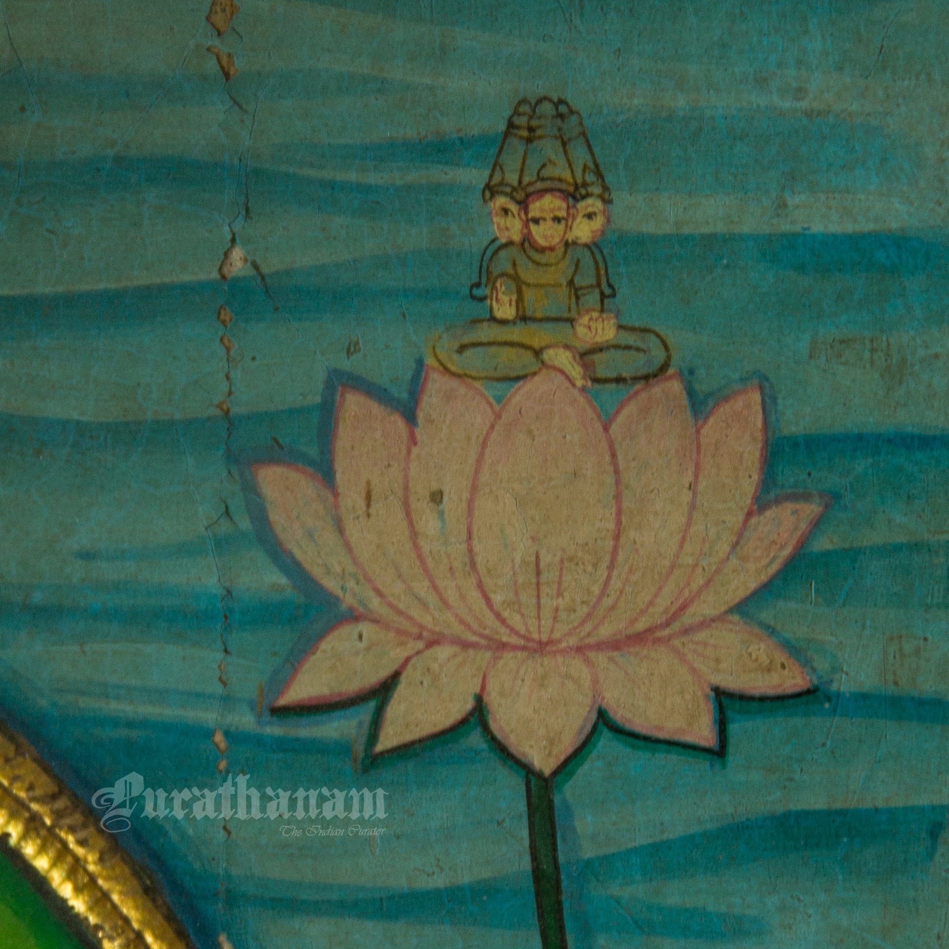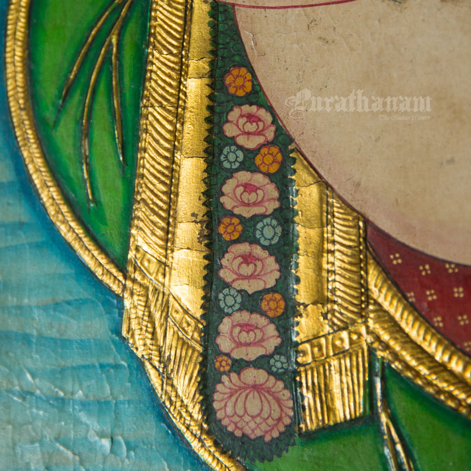 - Natural Colors: The color medium used in early Tanjavur paintings was made from organic vegetable dyes, resulting in lighter shades compared to modern-day Tanjore paintings. These natural colors were not affected by light exposure at the time, as the paintings were mostly kept indoors and lit by dim traditional lamps. However, with the invention of electricity and the use of brighter lighting, it became harder for these colors to survive over time.