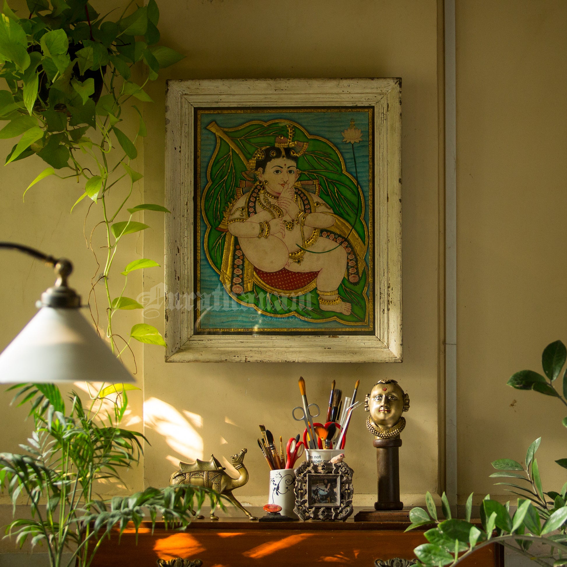 - No Glass Protection: Back in the day, Tanjore paintings were framed using teak wood and did not have protective glass covers, they were displayed openly. Due to less pollution they were safe even without a glass cover.