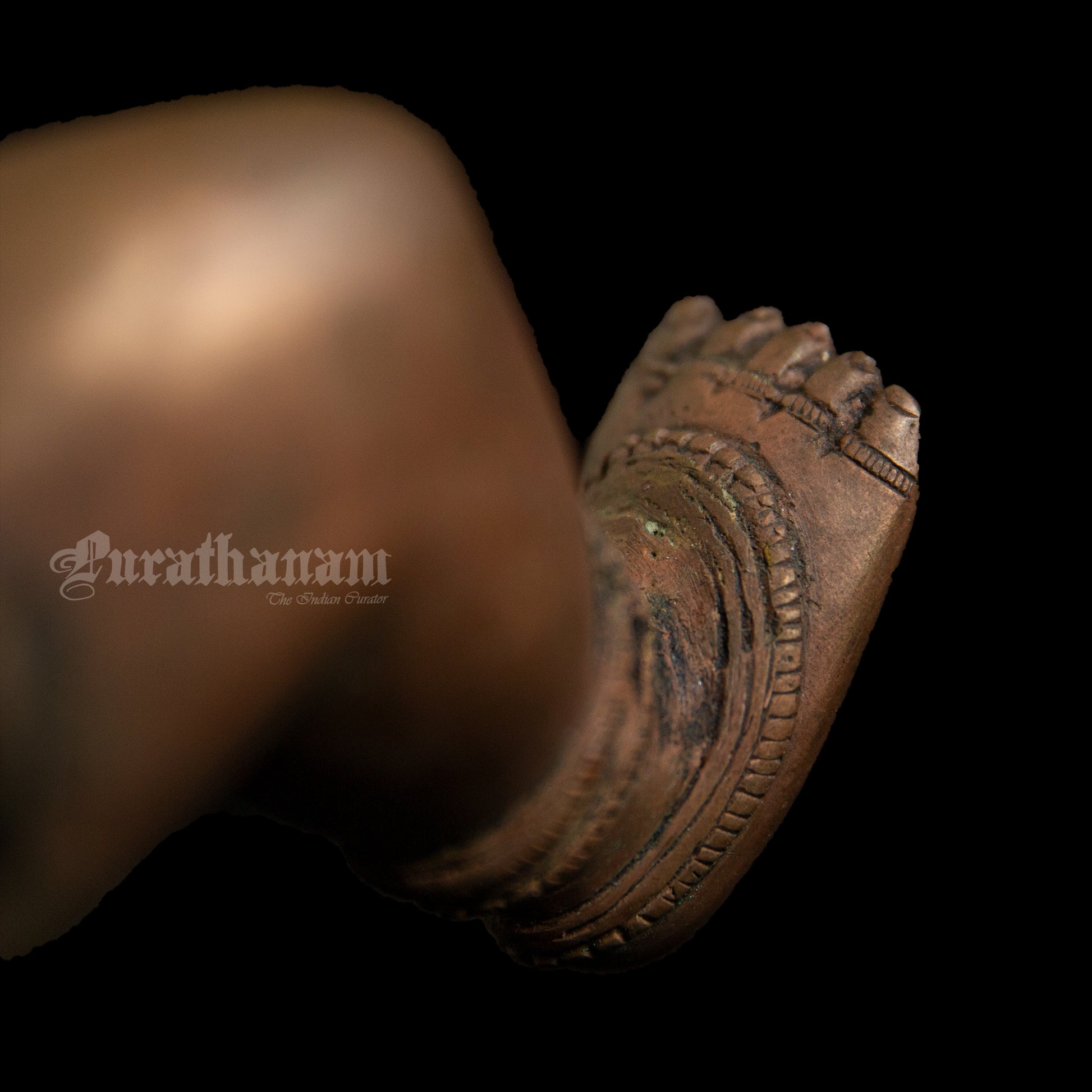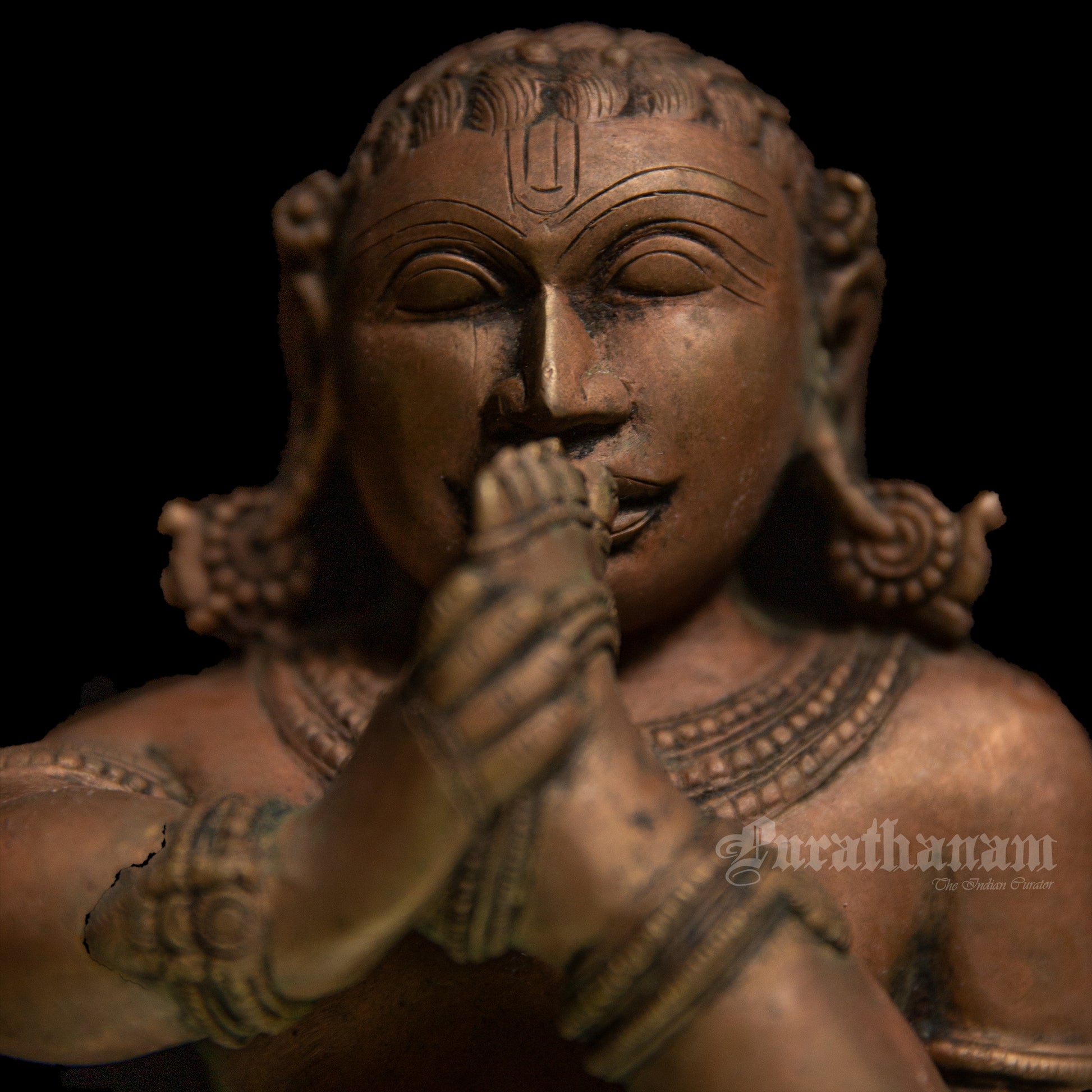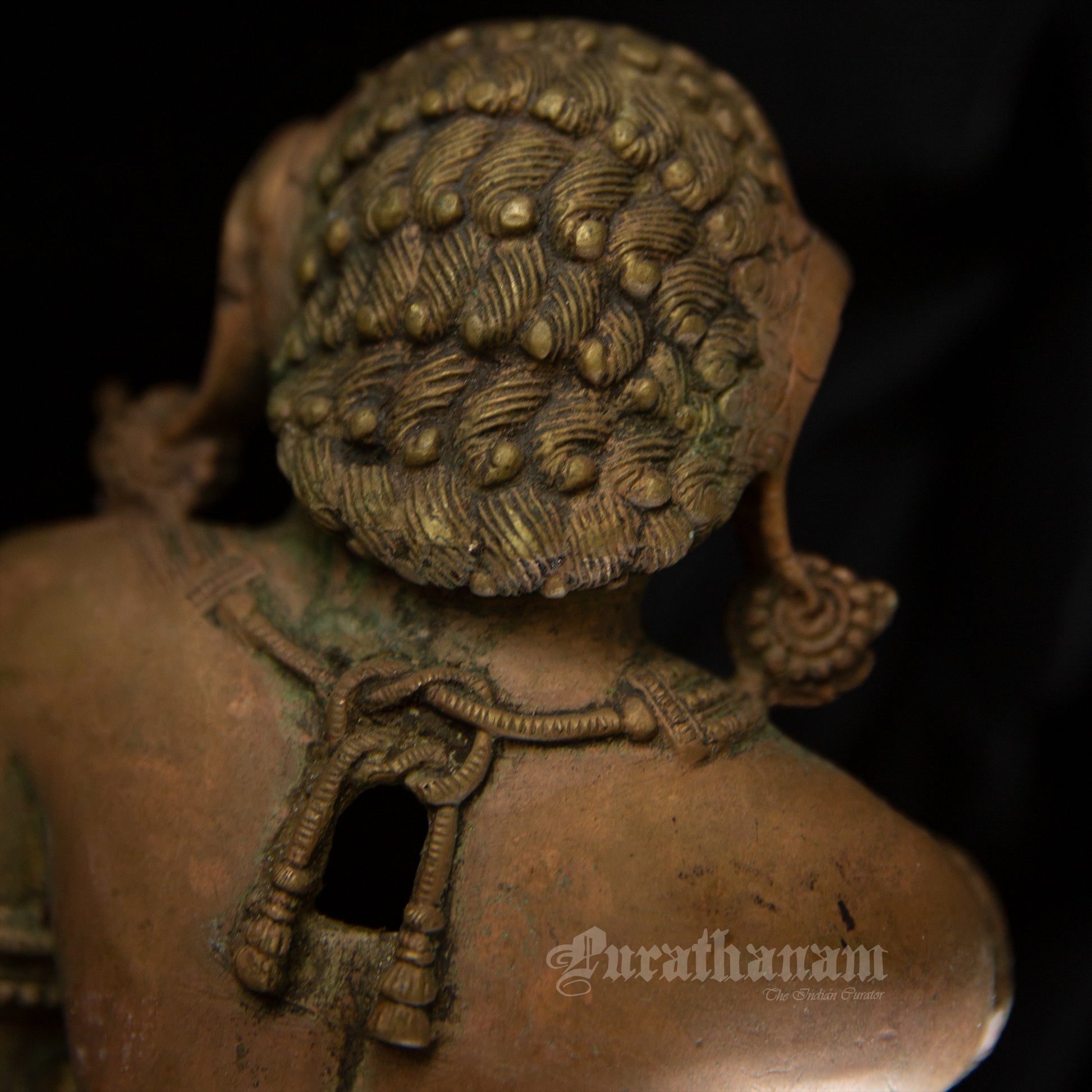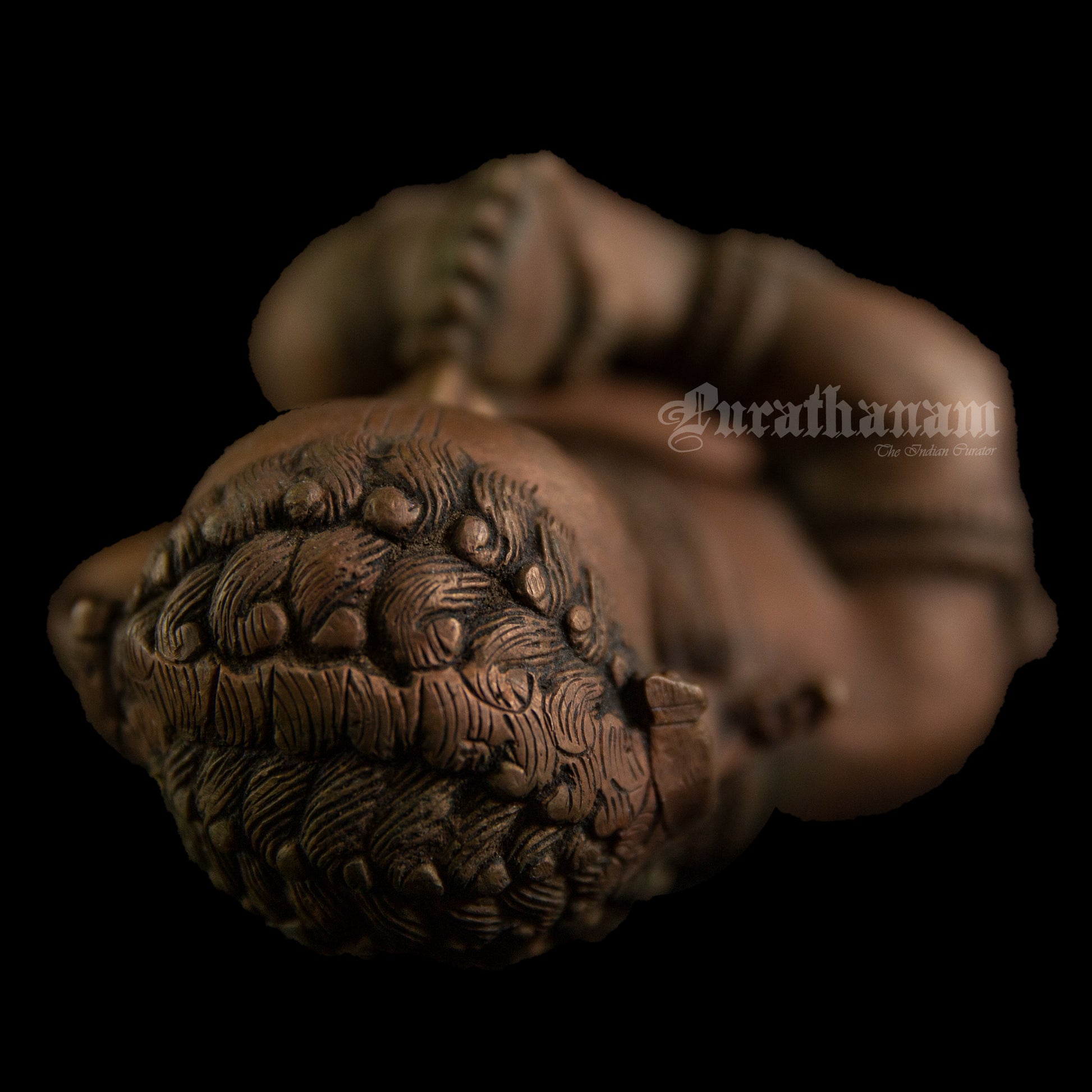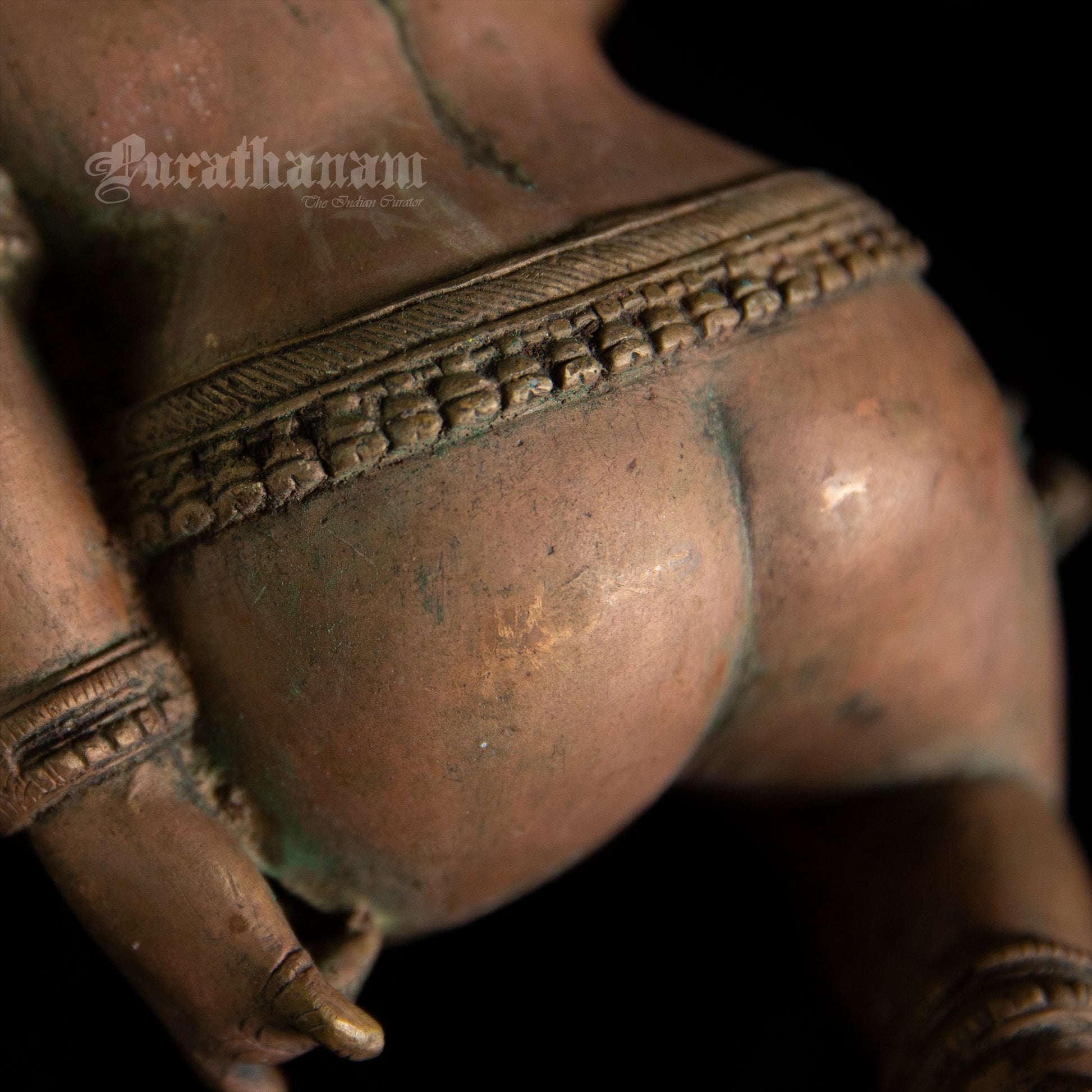 Here we have a unique vintage sculpture of Baby Krishna who is lying on his back, biting his toe just like bal Krishna on the banyan leaf. It is made of brass and perfect to decorate your beautiful space.
