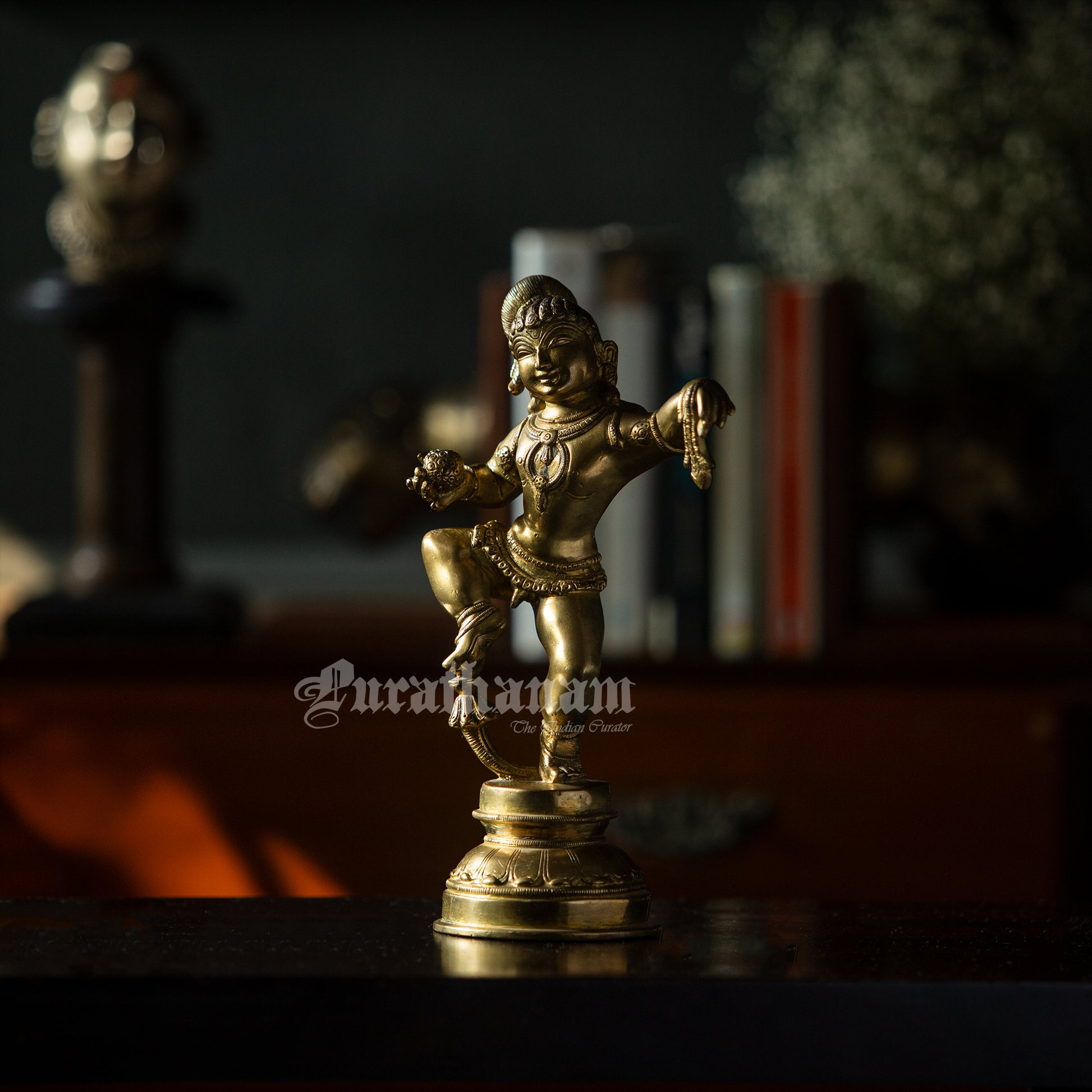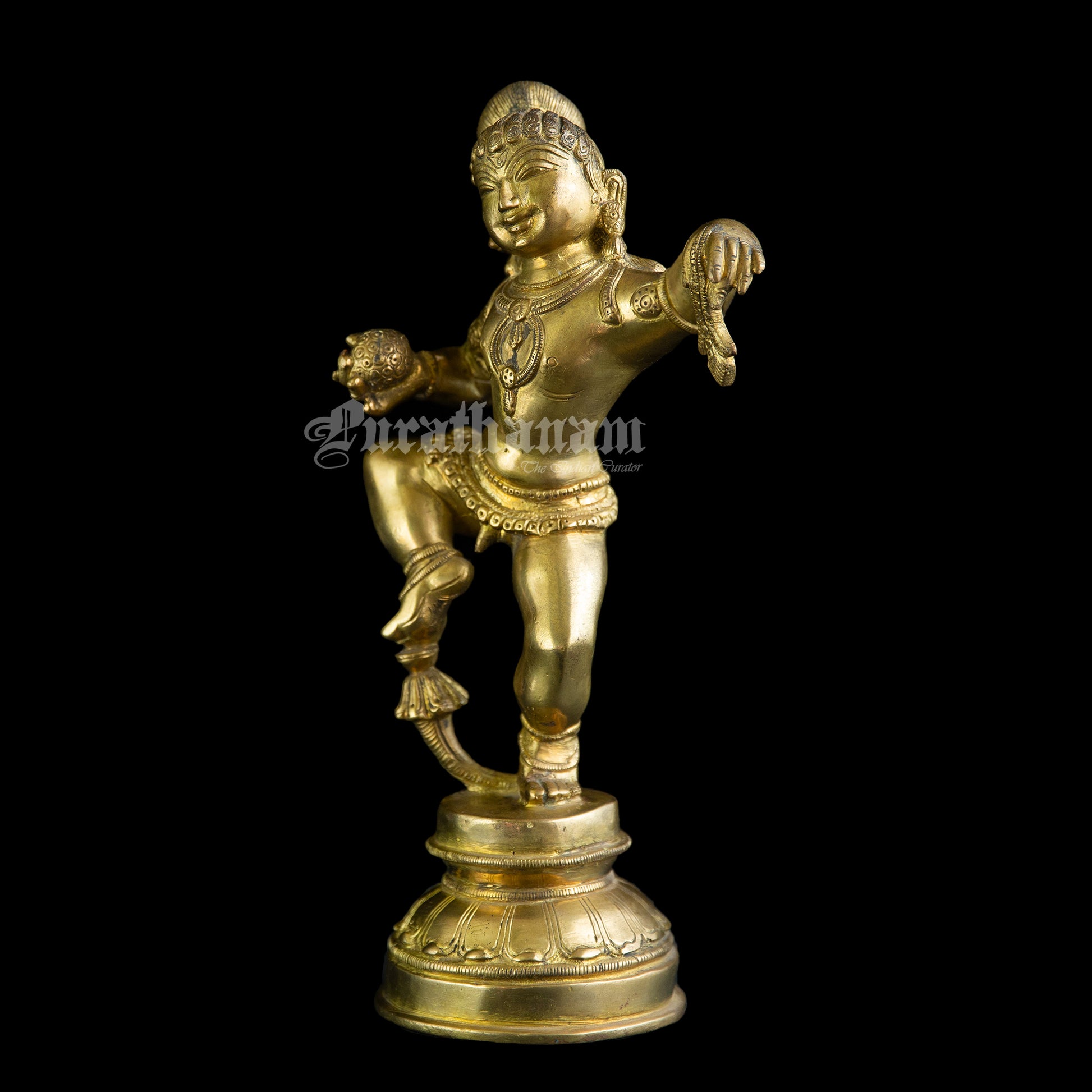 Here we present a beautiful dancing Bala Krishna made of brass from South of India.