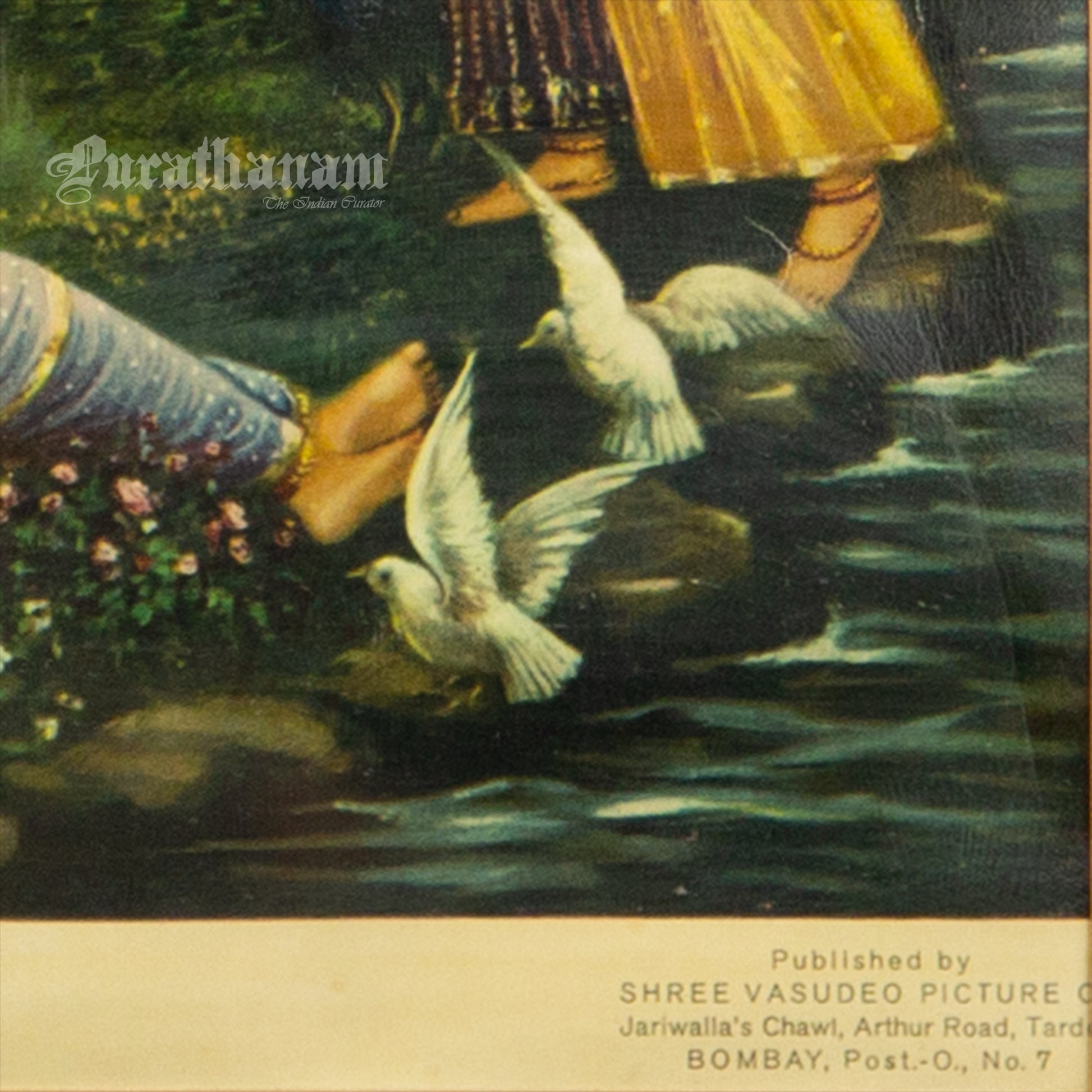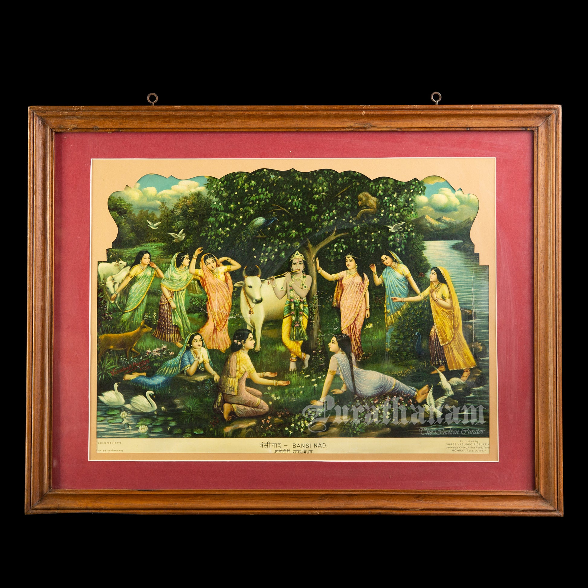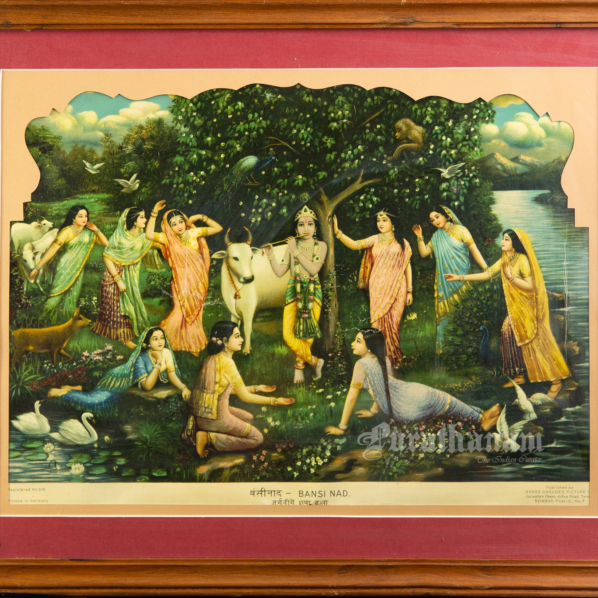 This is an oleograph print from early 1900s of Bansi Nad by Vasudeo Hiralal Pandya an Indian painter.