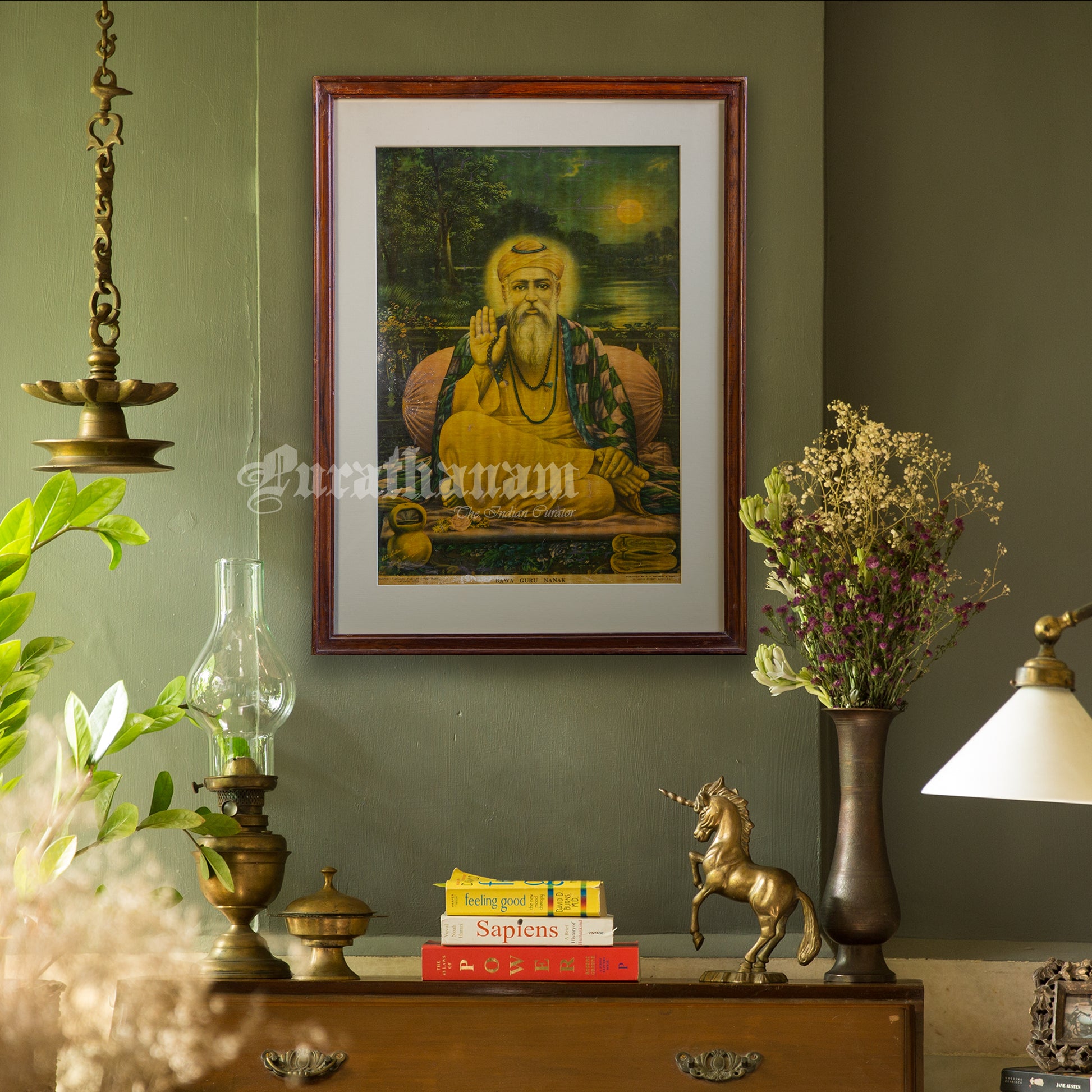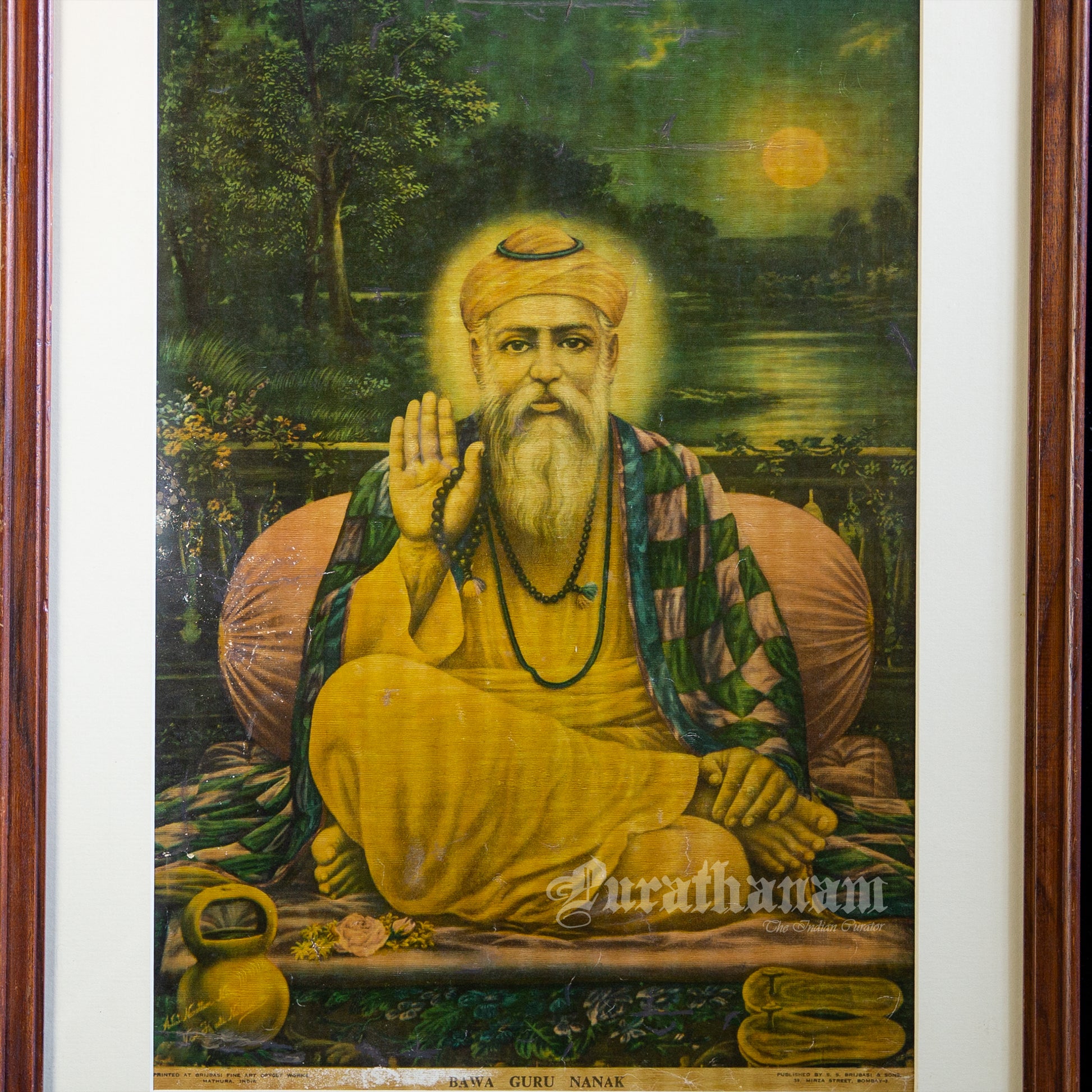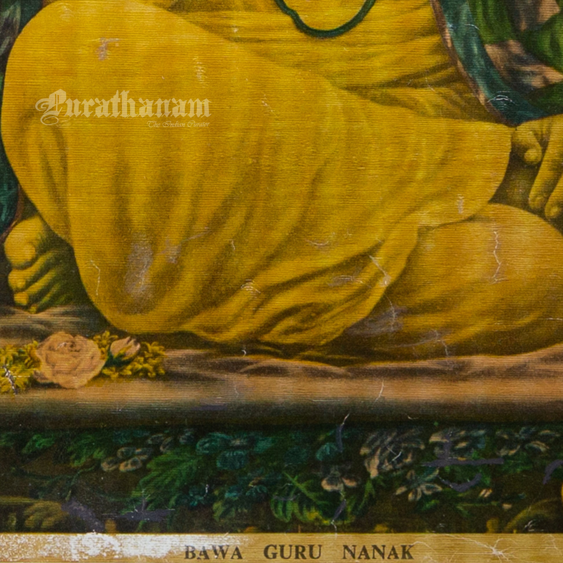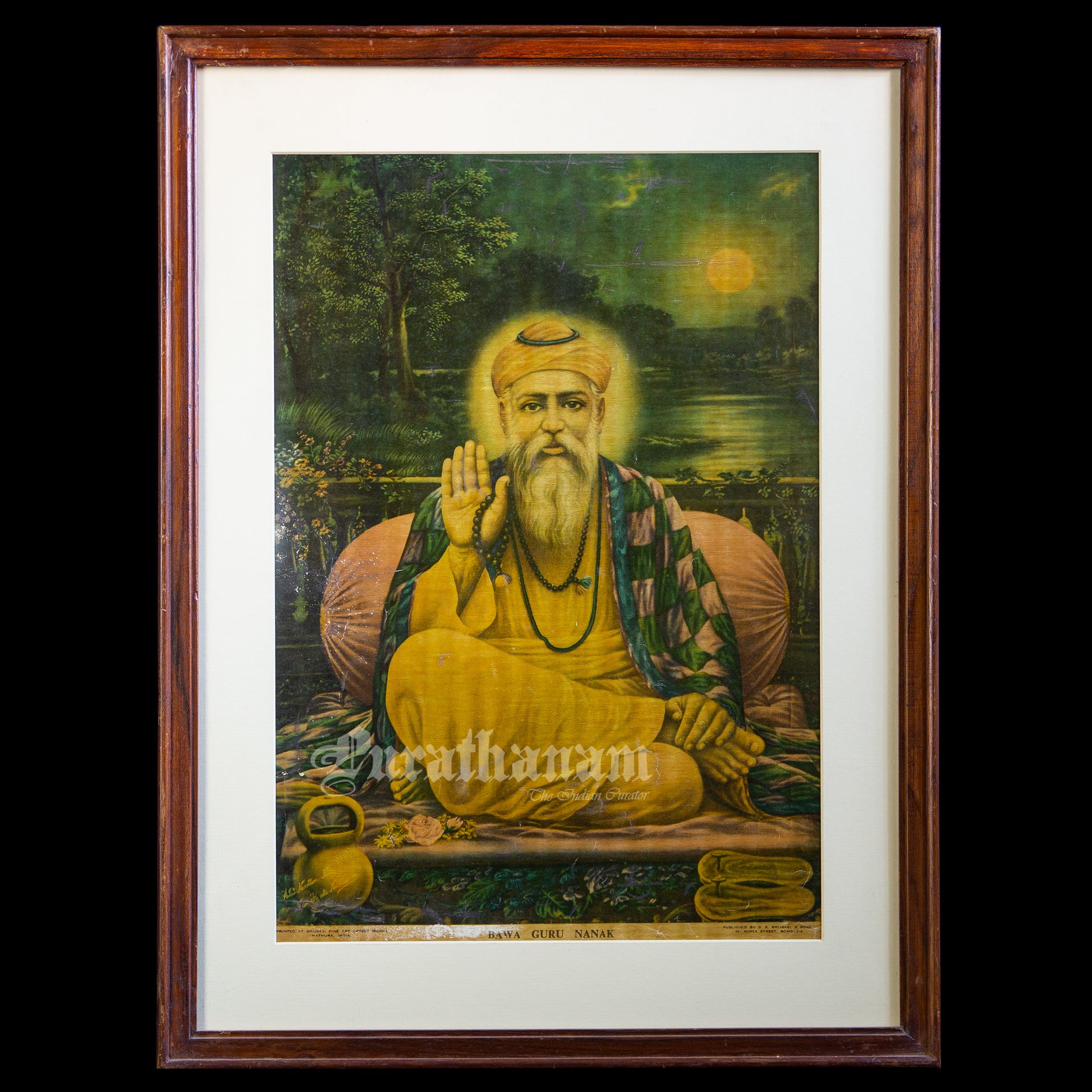 Here is an Oleograph print of Guru Nanek by an Indian artist Narottam Narayan. He was especially famous for his images of Krishna, which were popular throughout North India and were even more influential than the works of Ravi Varma.