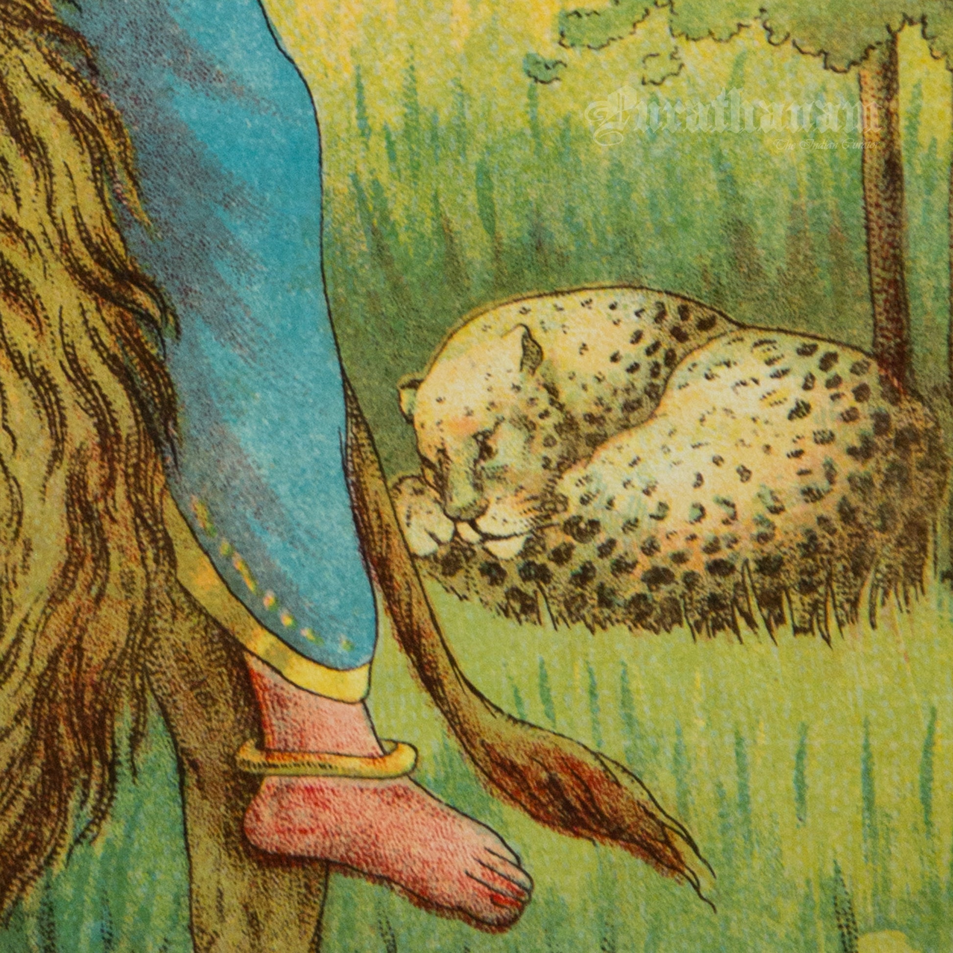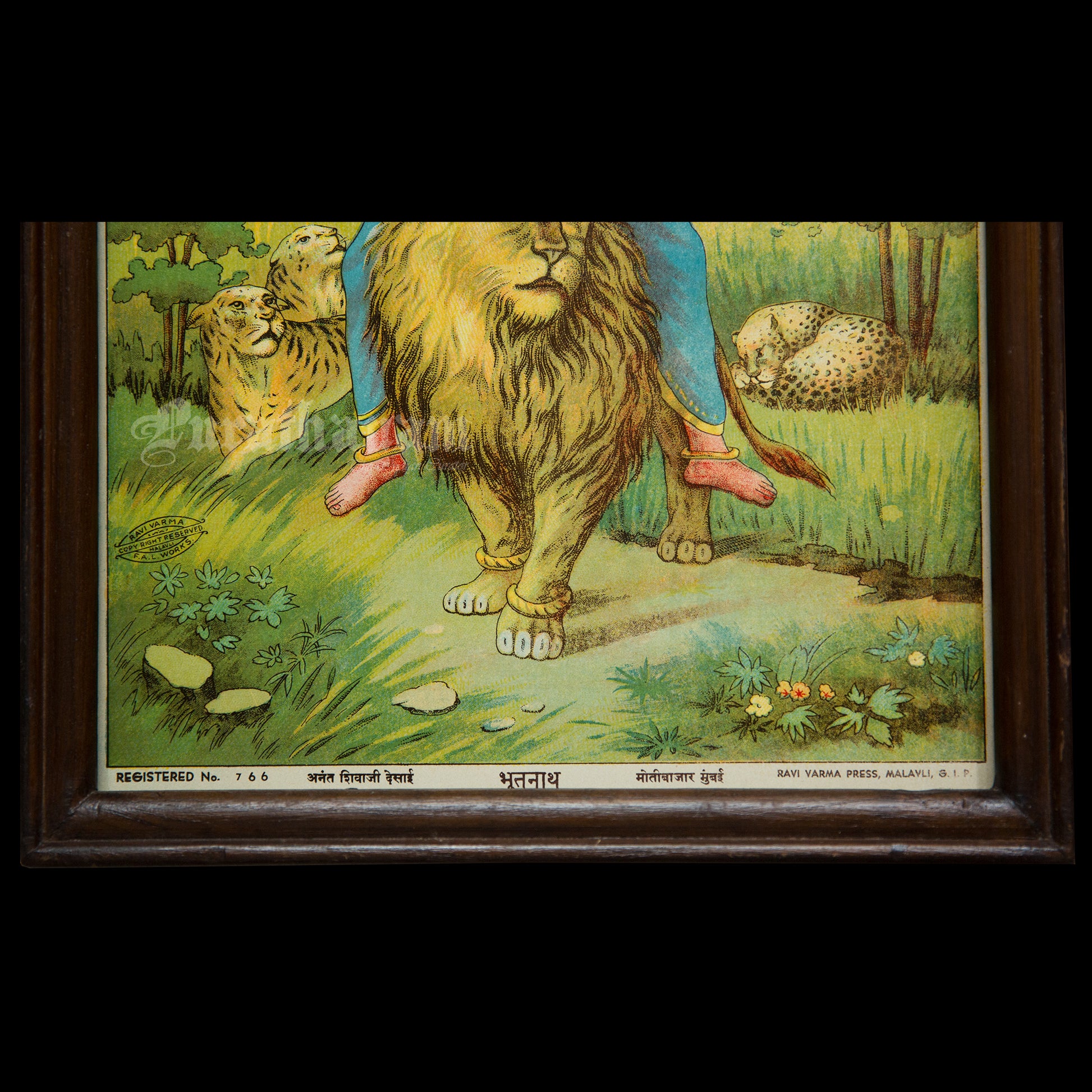 This is an oleograph print from 1920s- 1930s of Bhoodhnaya by Ravi Varma an Indian who achieved recognition for his depiction of scenes from the epics of the Mahabharata and Ramayana.