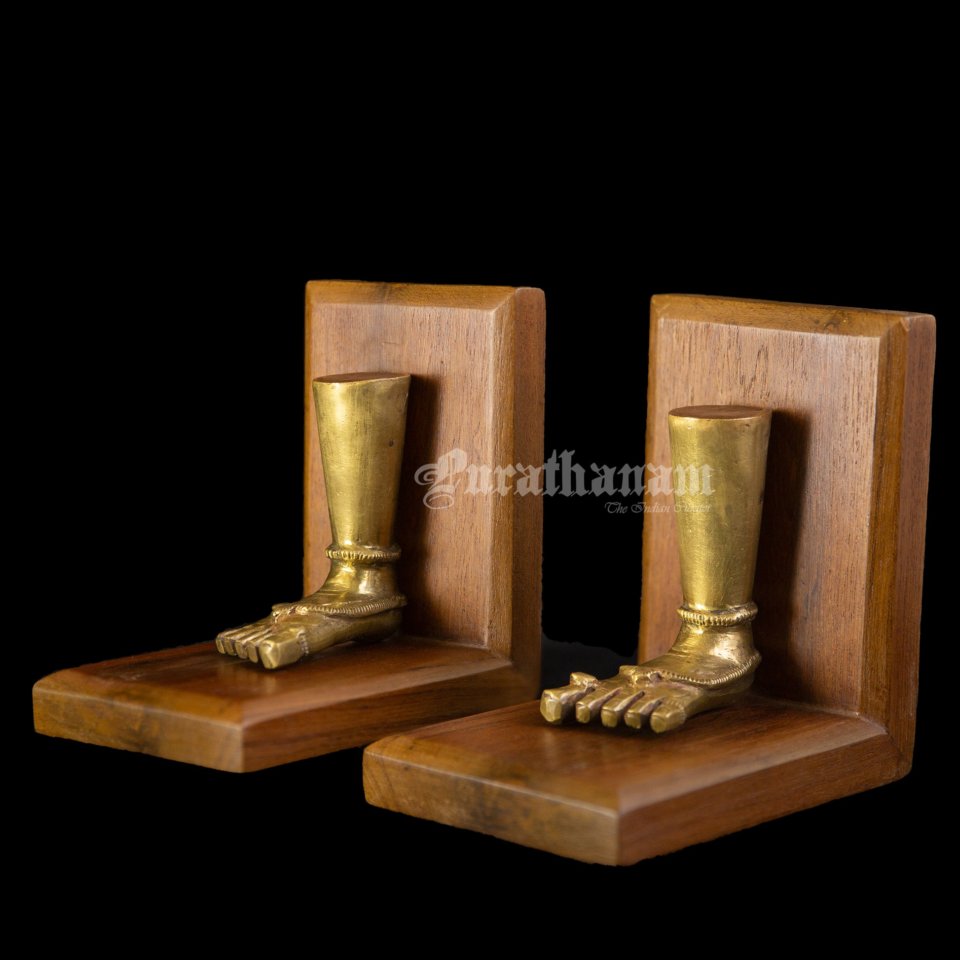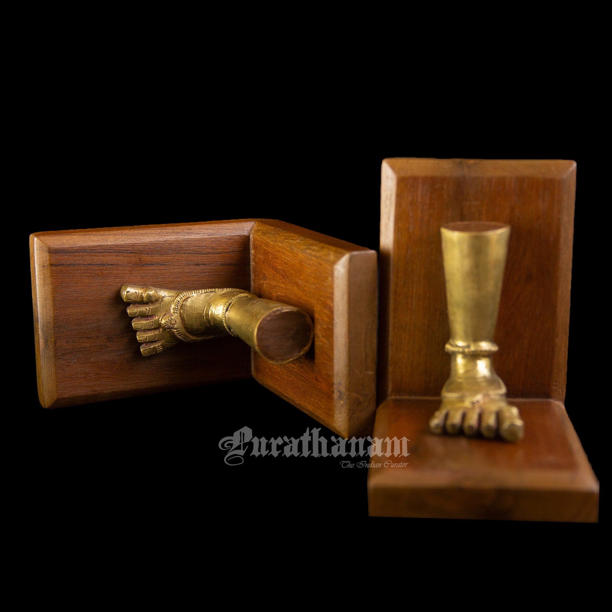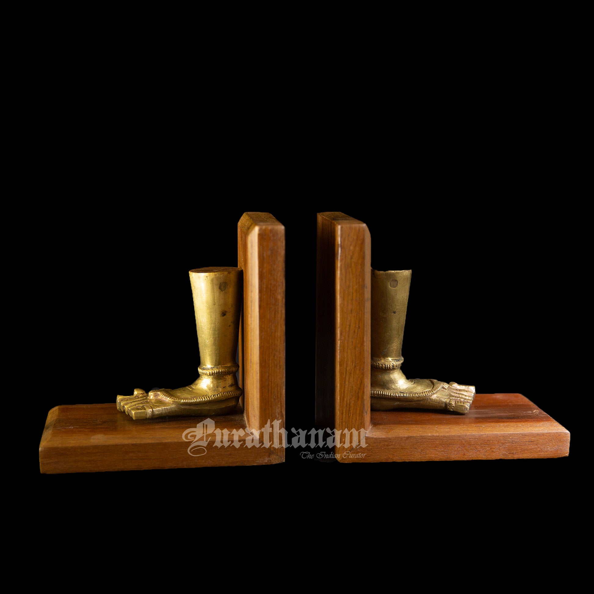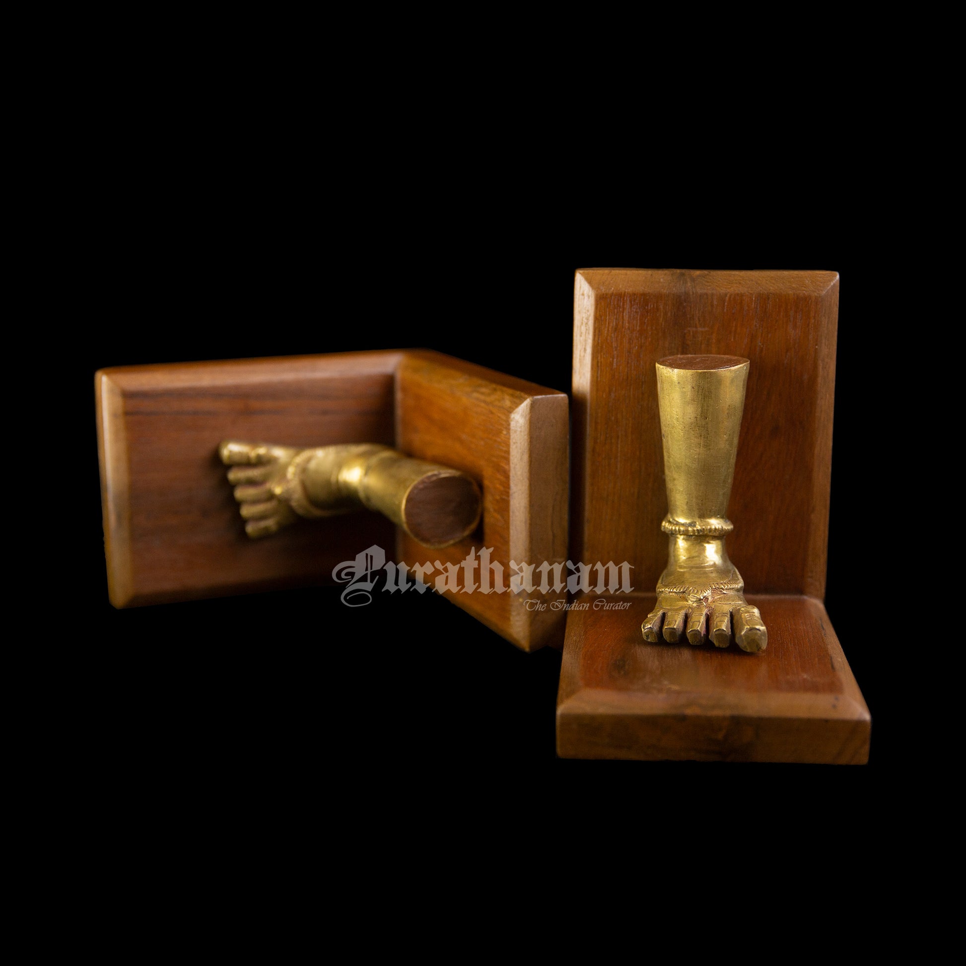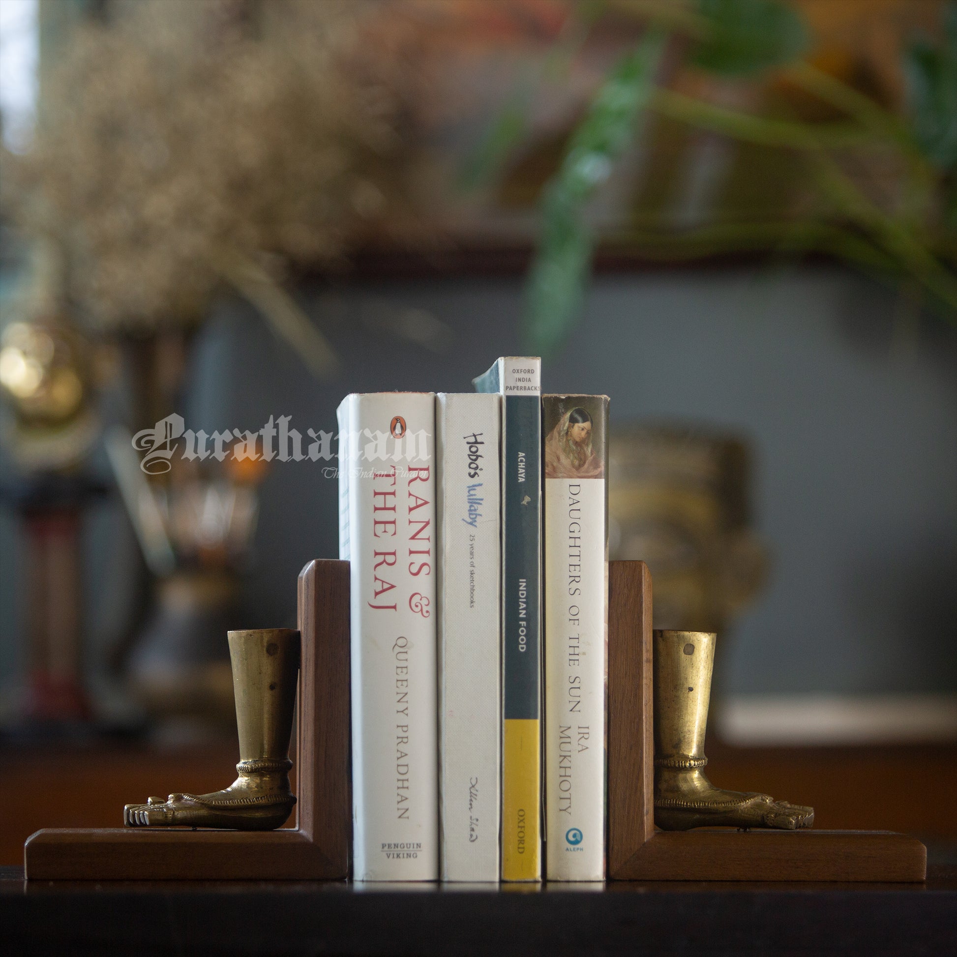 Presenting a lovely set of bookends made from vintage brass ‘Paatham.’ Paatham means ‘foot’ in Tamil. These kind of brass feet and hands are typically used to decorate deities, especially during Varalakshmi poojas for the Hindu goddess Lakshmi, also in some places they become substitute for the Vigraham (statues) during the festivals in Tamil Nadu.
