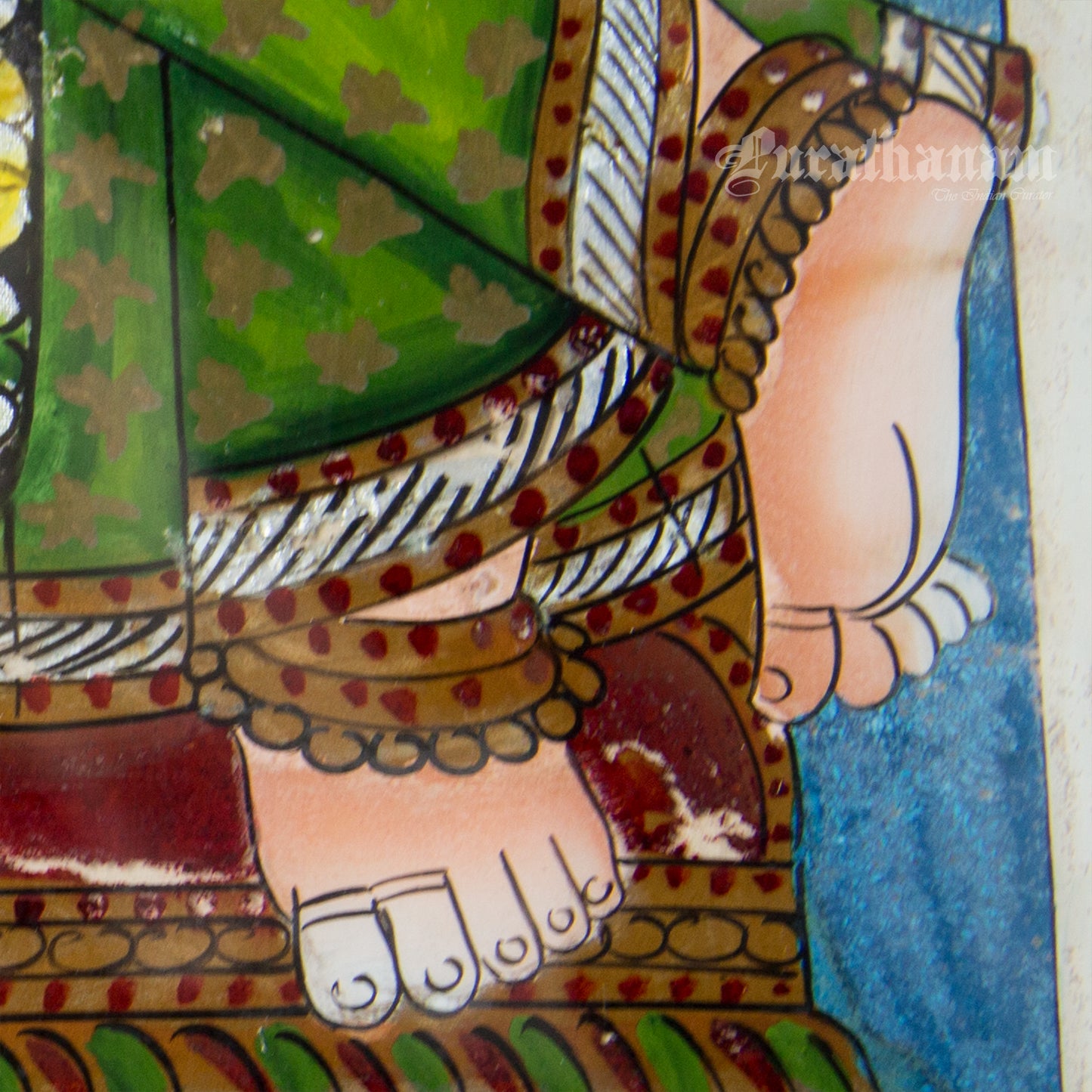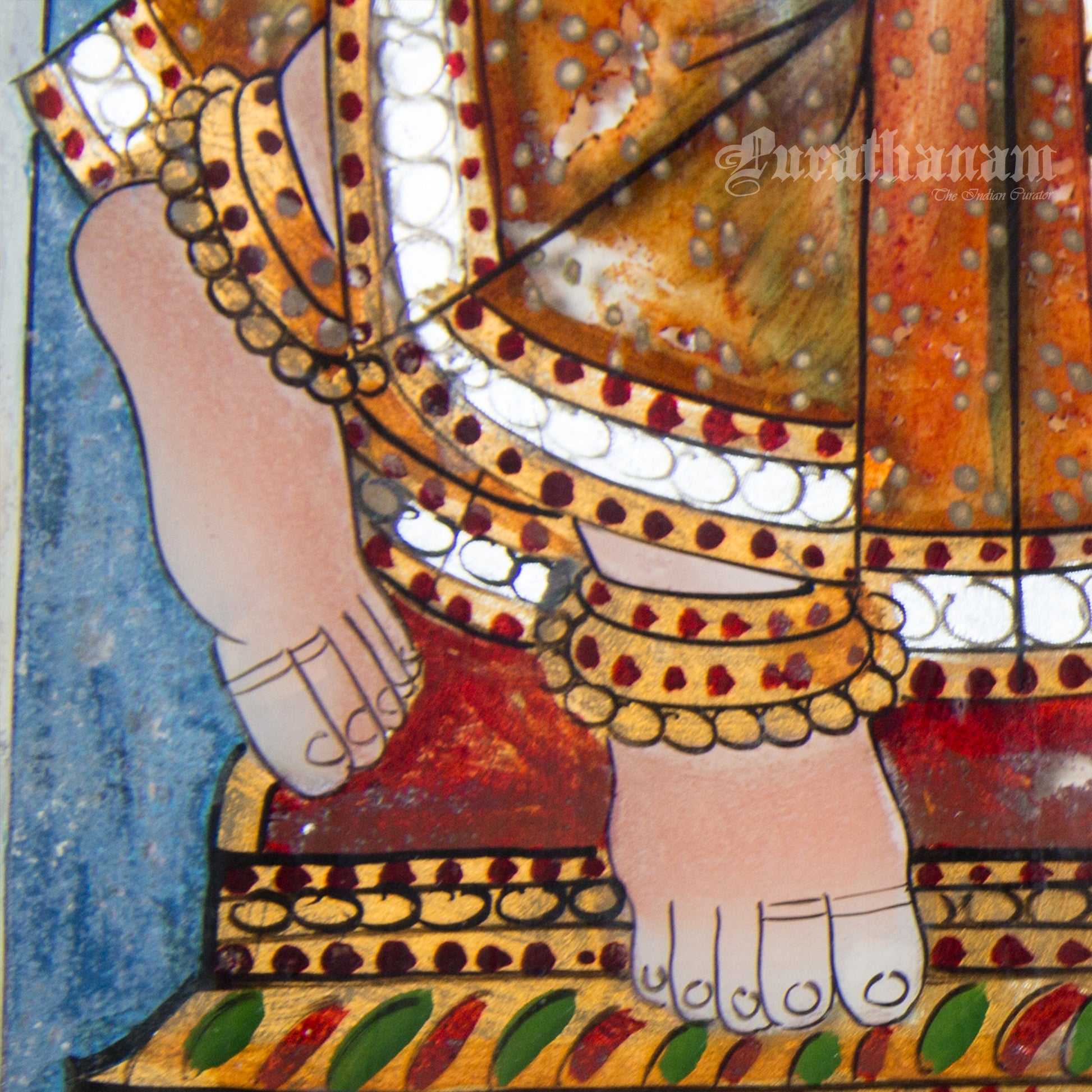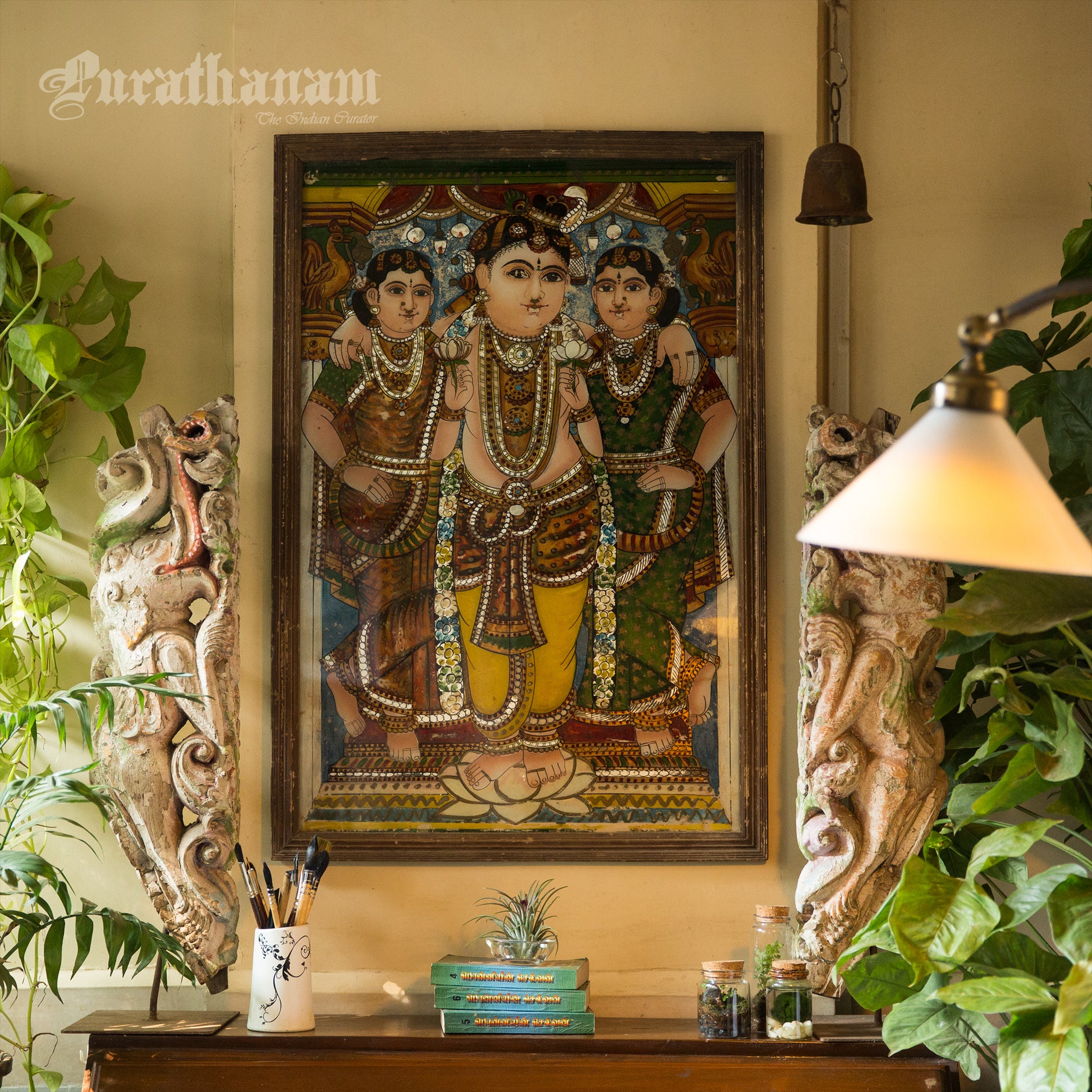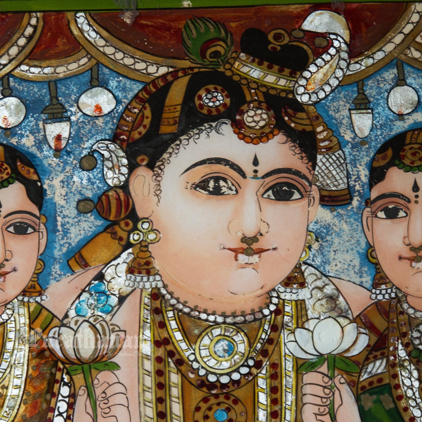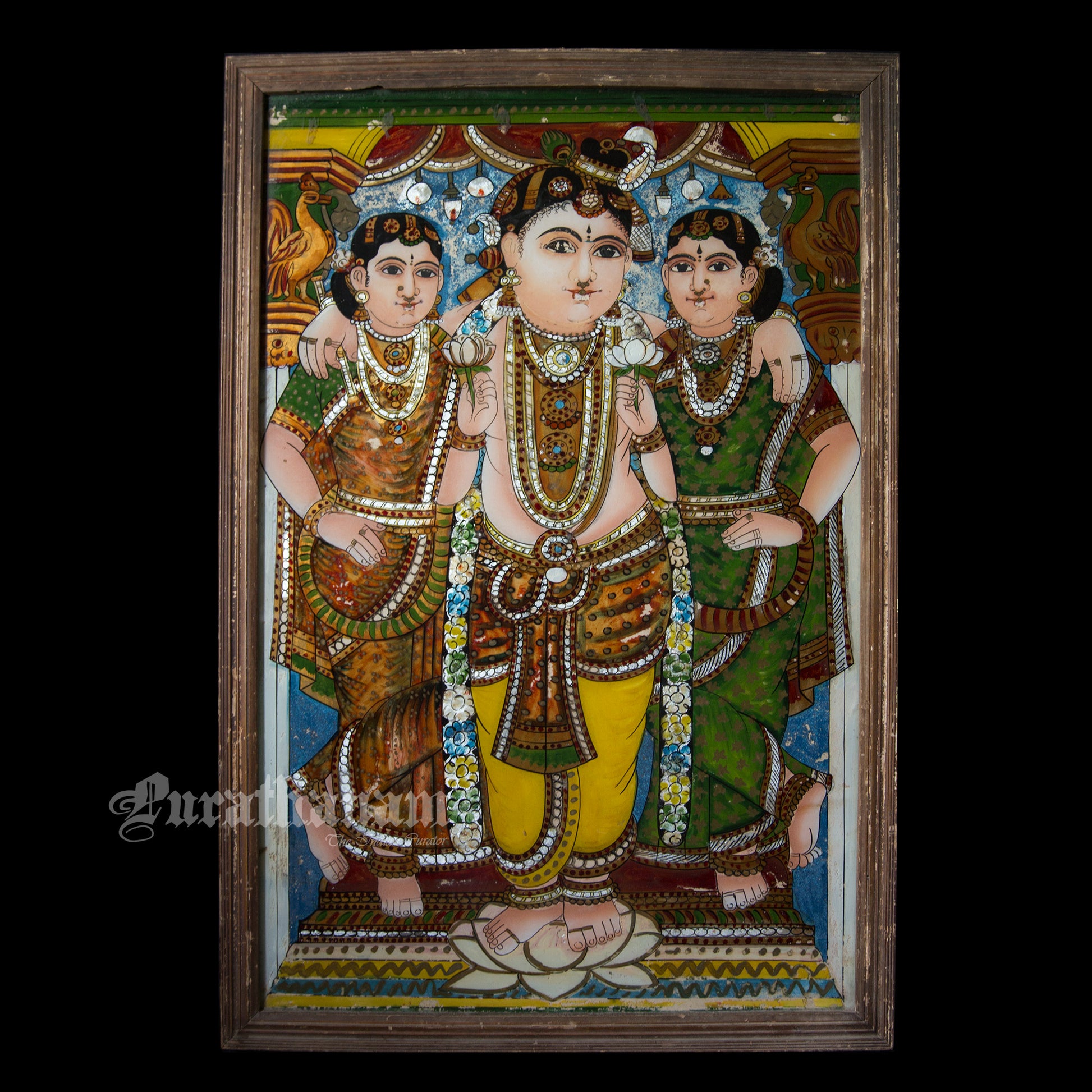 Here is an 70-80 year old glass painting of Butter Krishna from Tamil Nadu. This lovely antique piece could be shipped only within Mumbai.