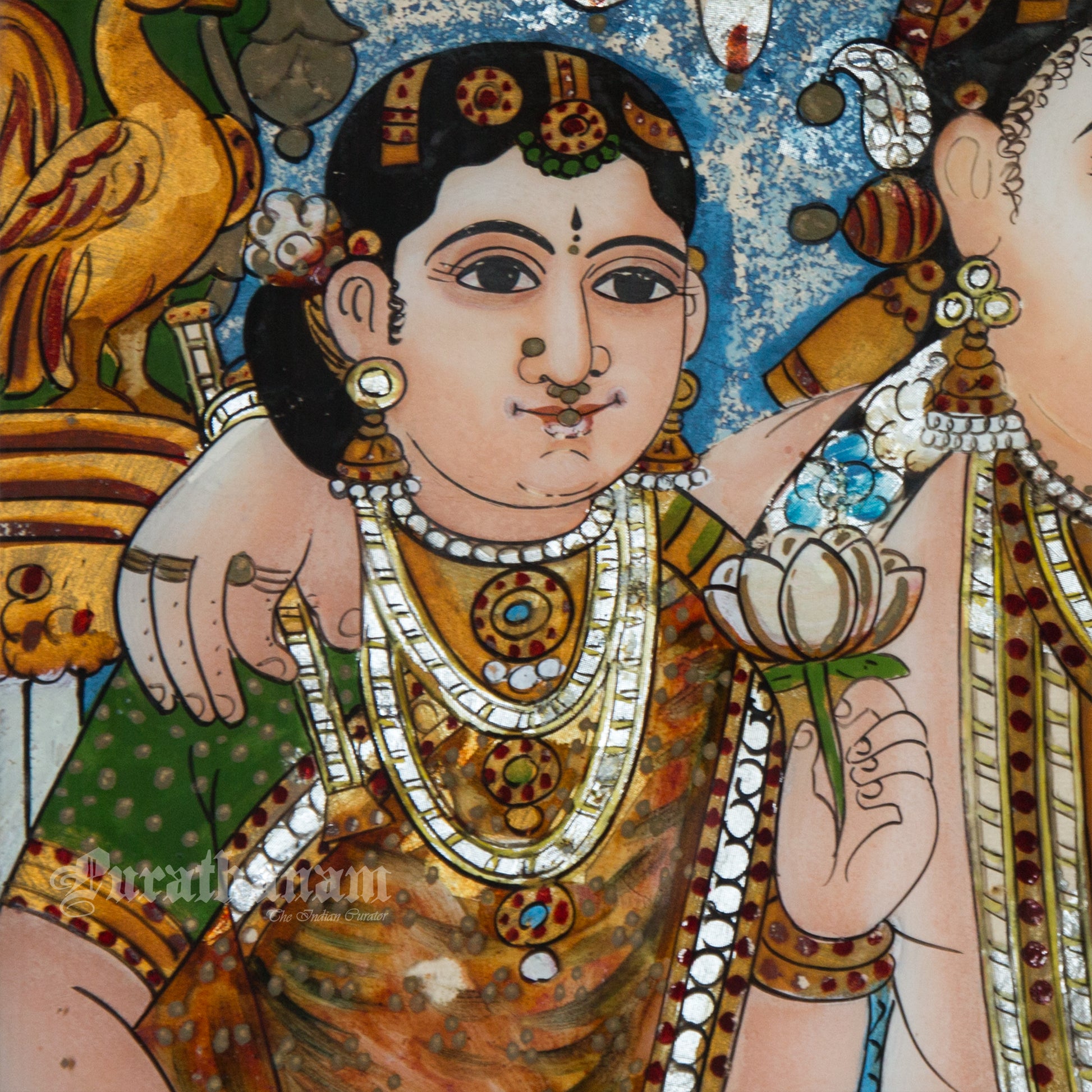 Indian style of glass painting was noted for their sheer brilliance, stunning clarity and use of rich bright colors. This art in India developed the local painters who focused on ornamental nature, portraits of God, figures narrating mythology, famous epic themes, icons and etc that were depicted.. The rich usage of bold and vibrant colors and semi-precious stones that are also used convey the creative splendor of the skillful artisans.
