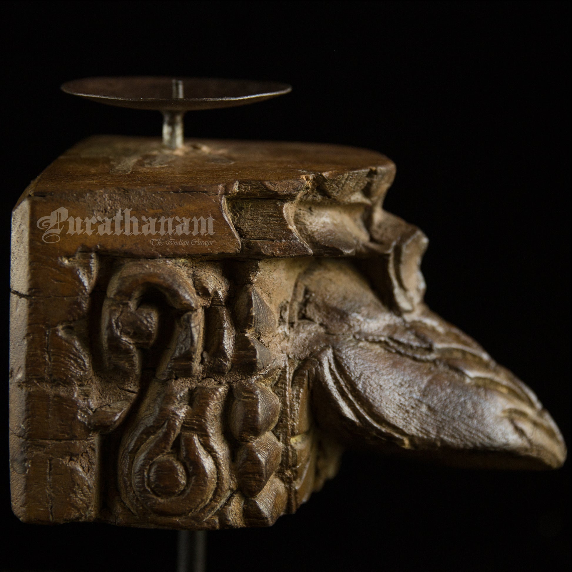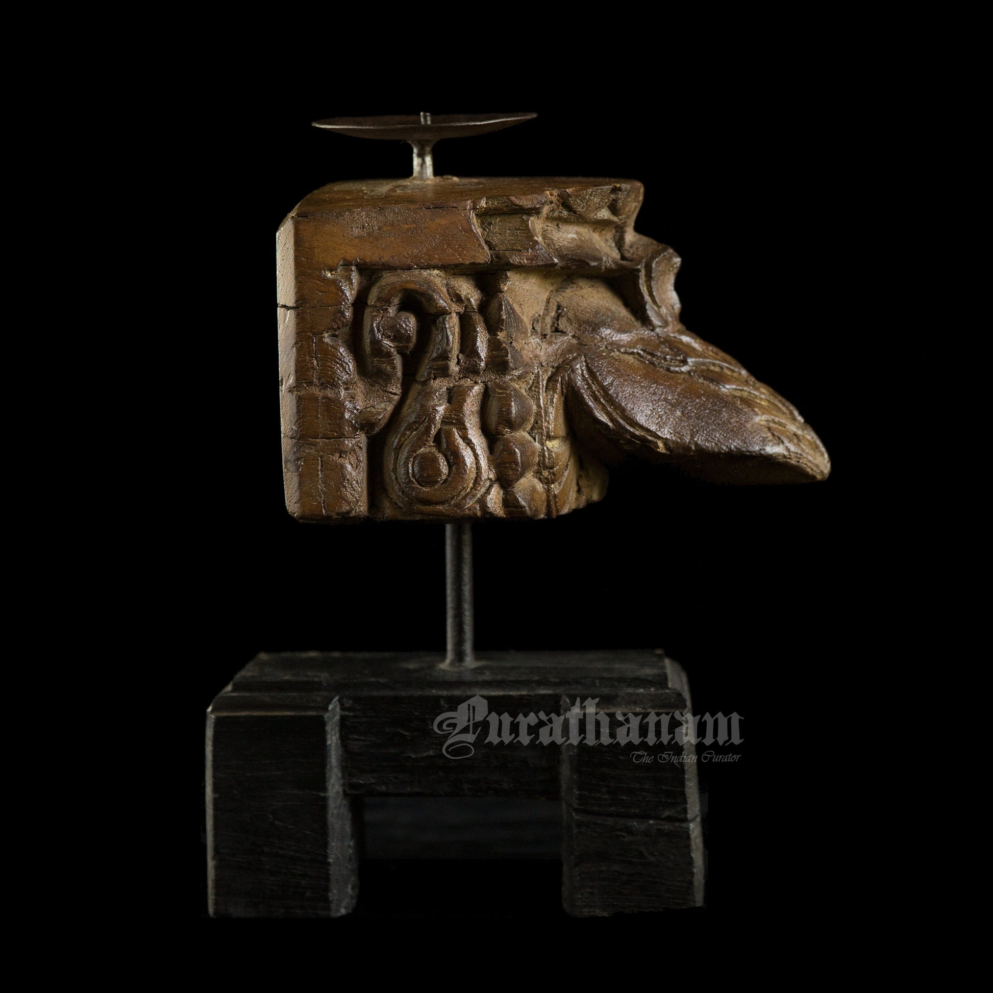 Here is a wall bracket from Gujarat, made of Teak wood. Once part of wooden ceiling has been converted to a decorative candle Holder.