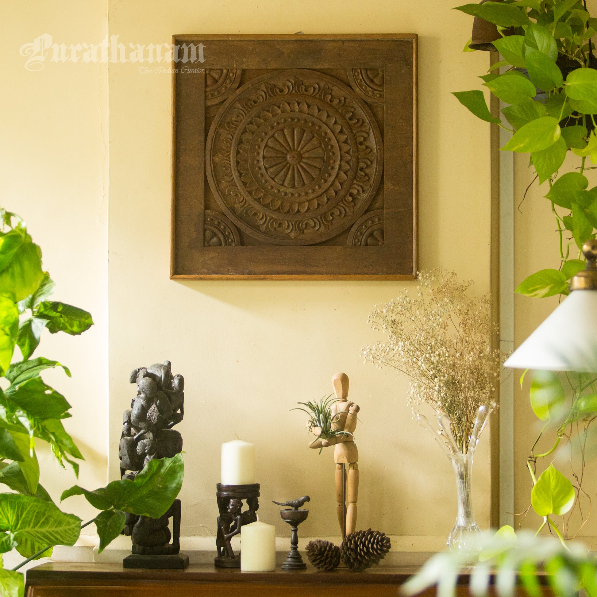 Here is a beautiful antique ceiling panel made in to a wall hanging. It is from south India and it’s 90 yrs old. It is made from country wood.