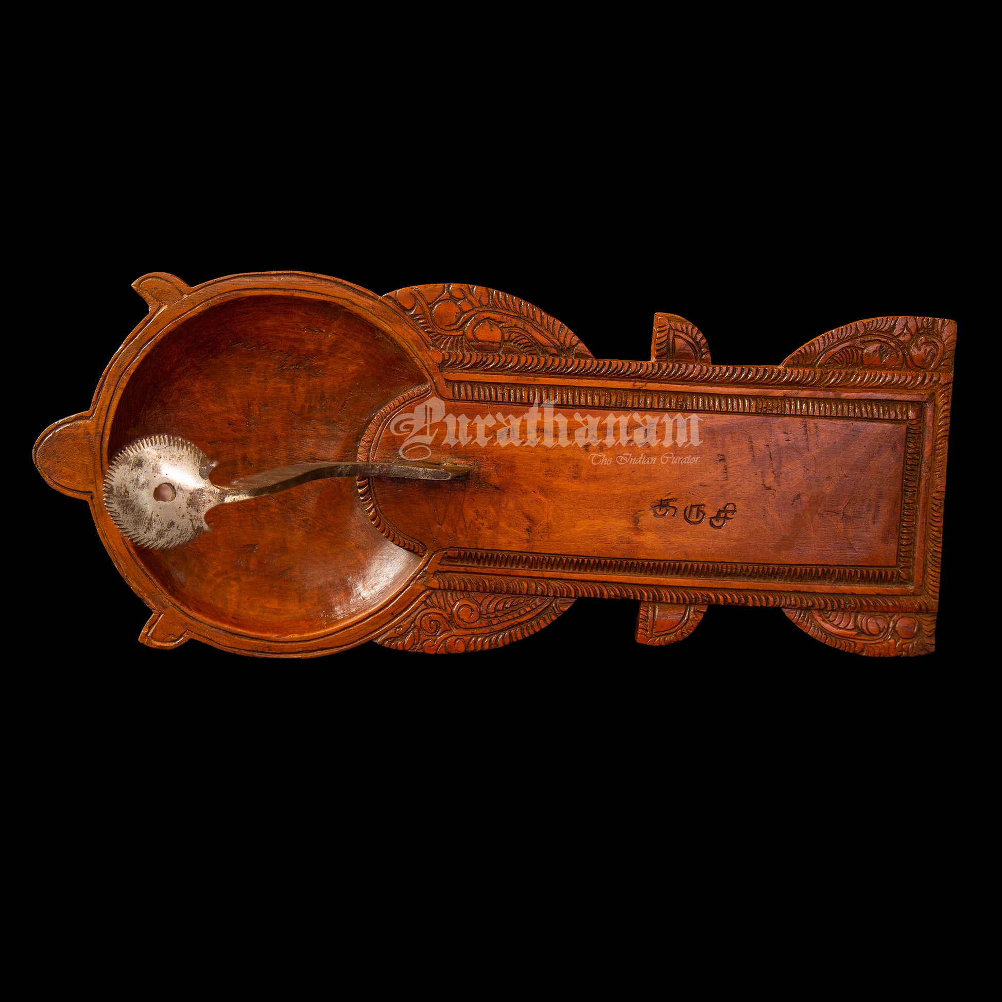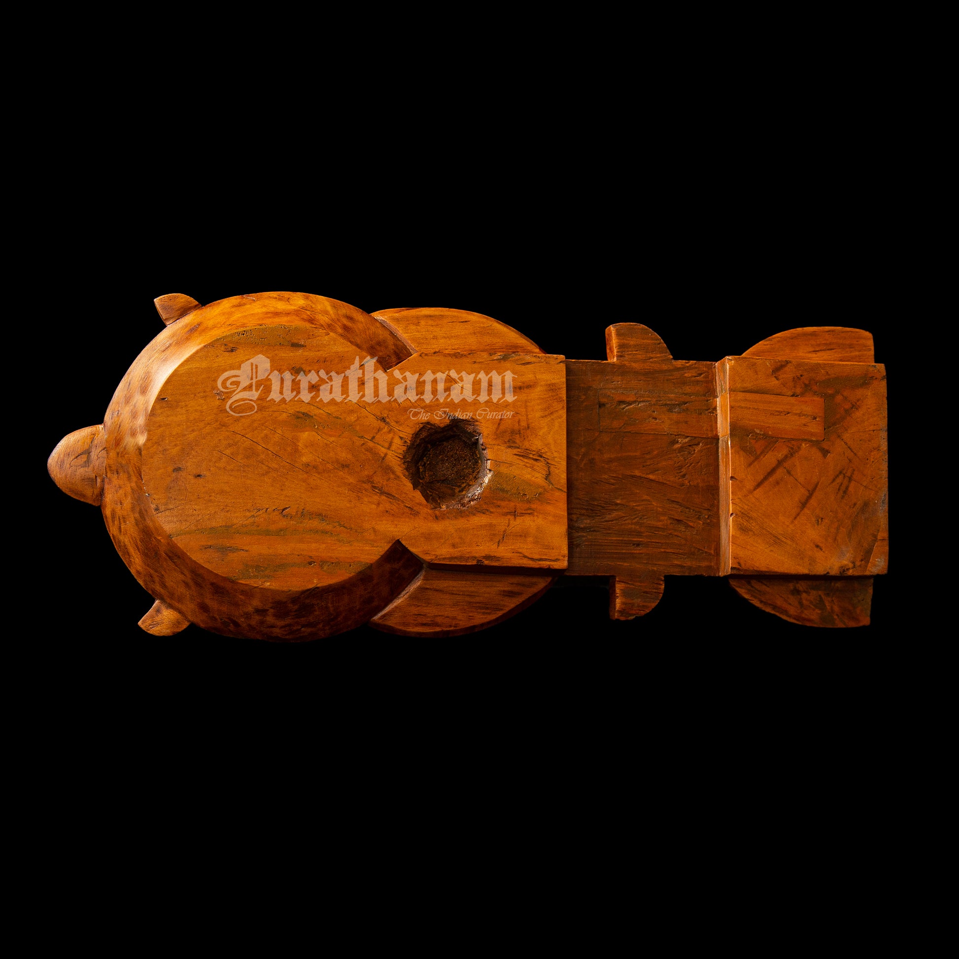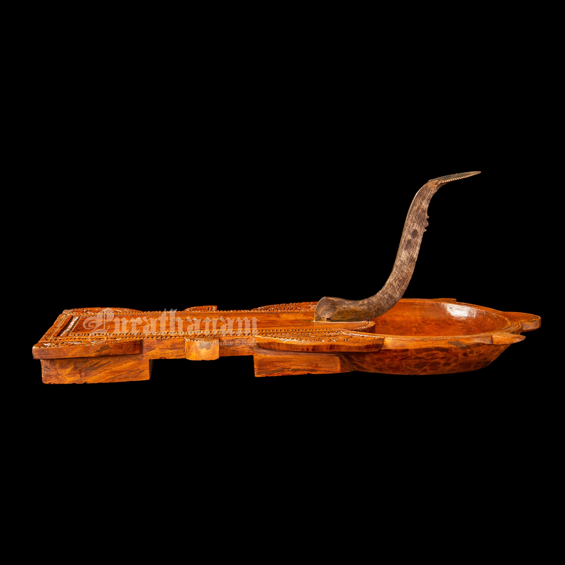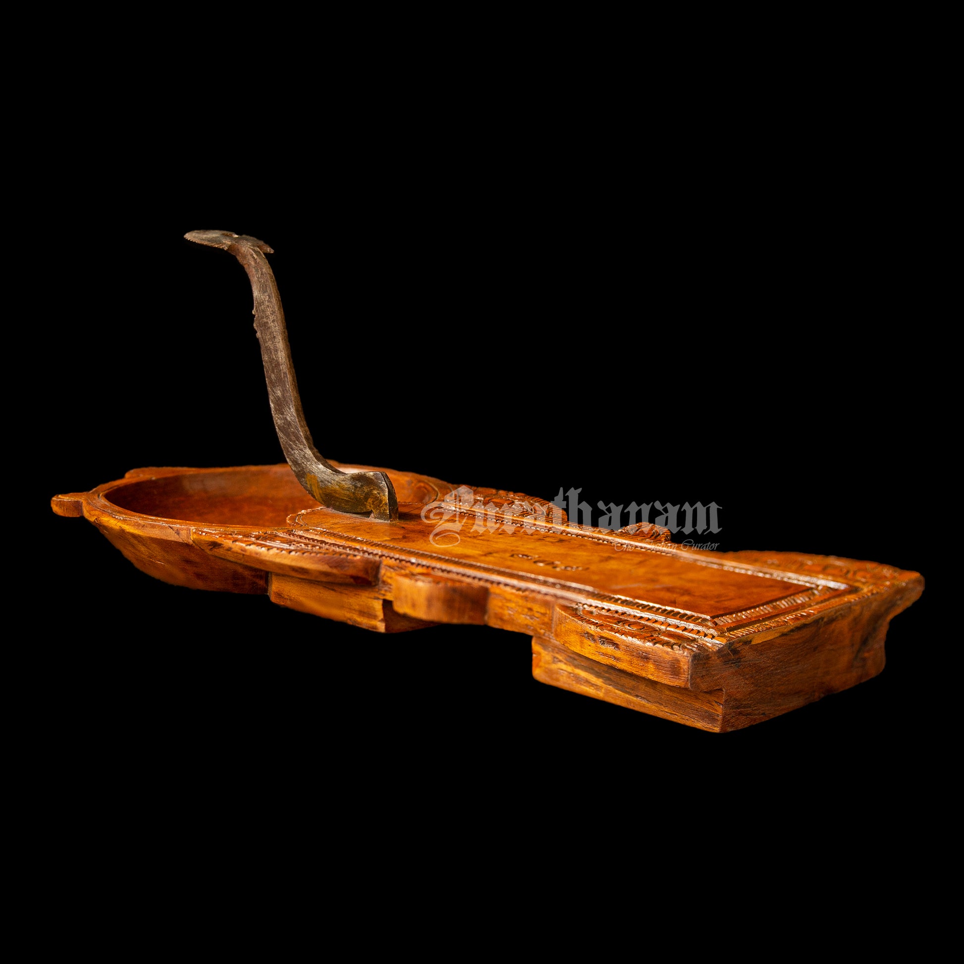 Here we have a decorative coconut scraper made of Satin wood all the way from Chettinad, Tamilnadu. Coconut scraper have been essential tools in South Indian households for centuries, enabling the extraction of coconut meat and milk for various culinary and religious purposes. The Chettinad coconut scraper, however, stands out due to its distinctive craftsmanship and ornate design.