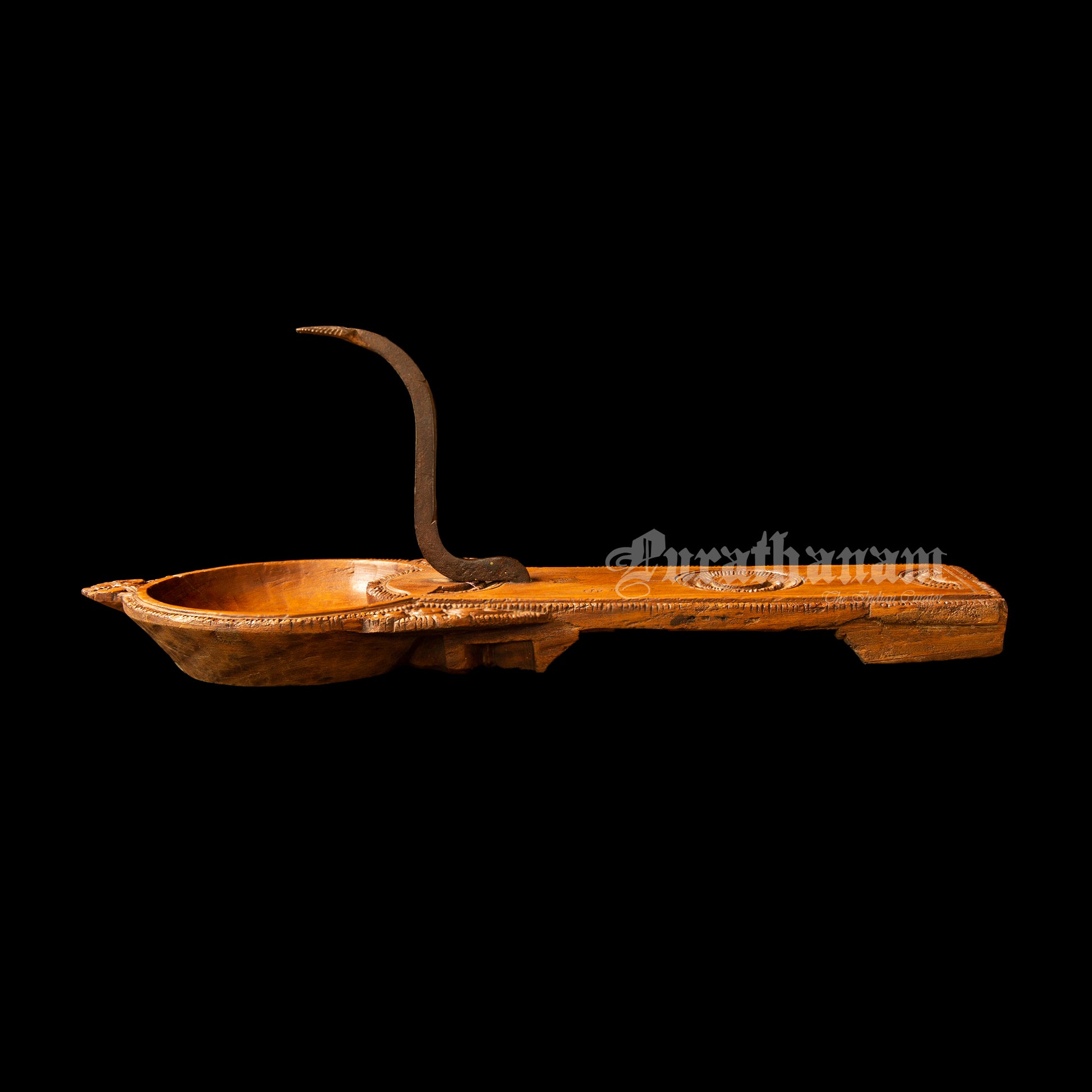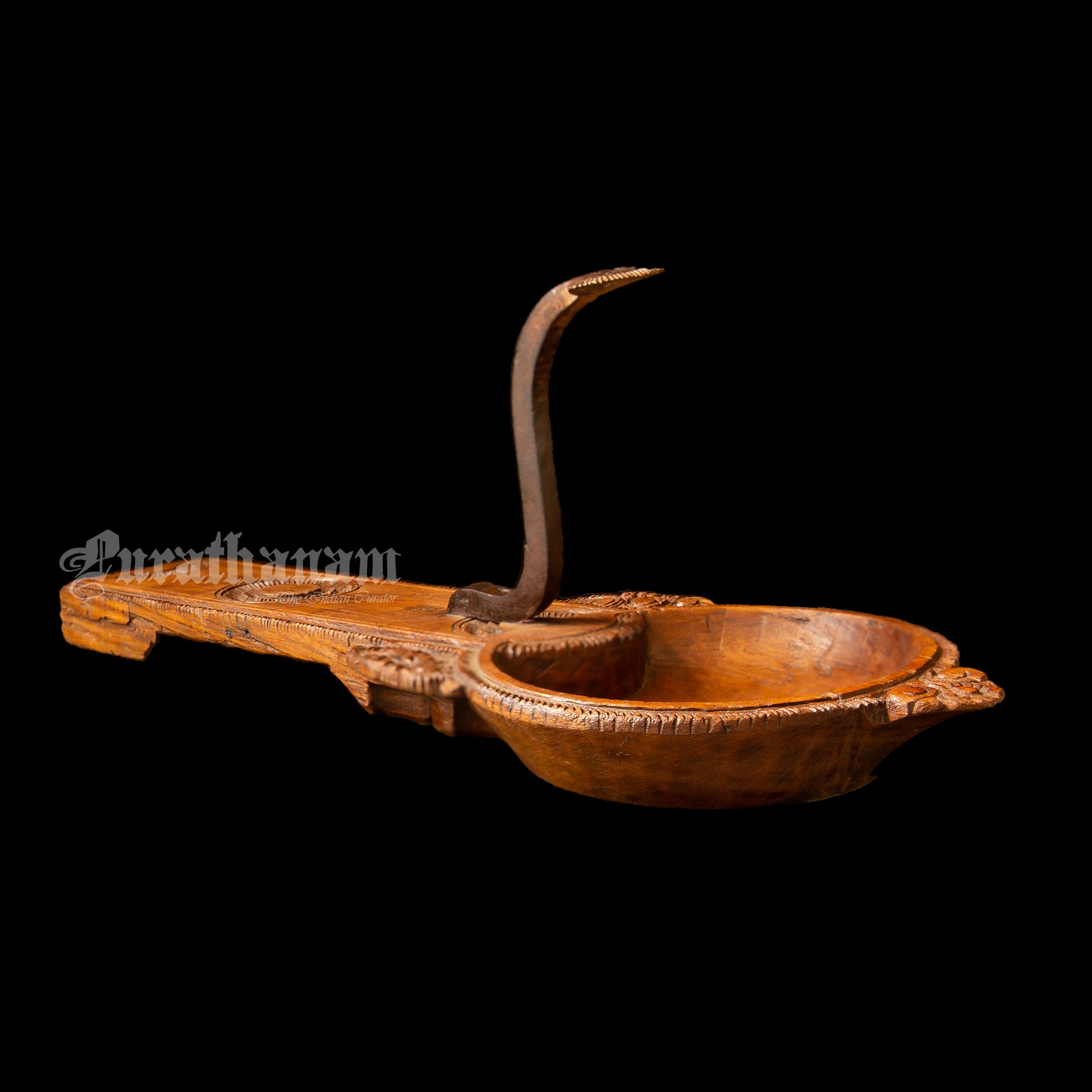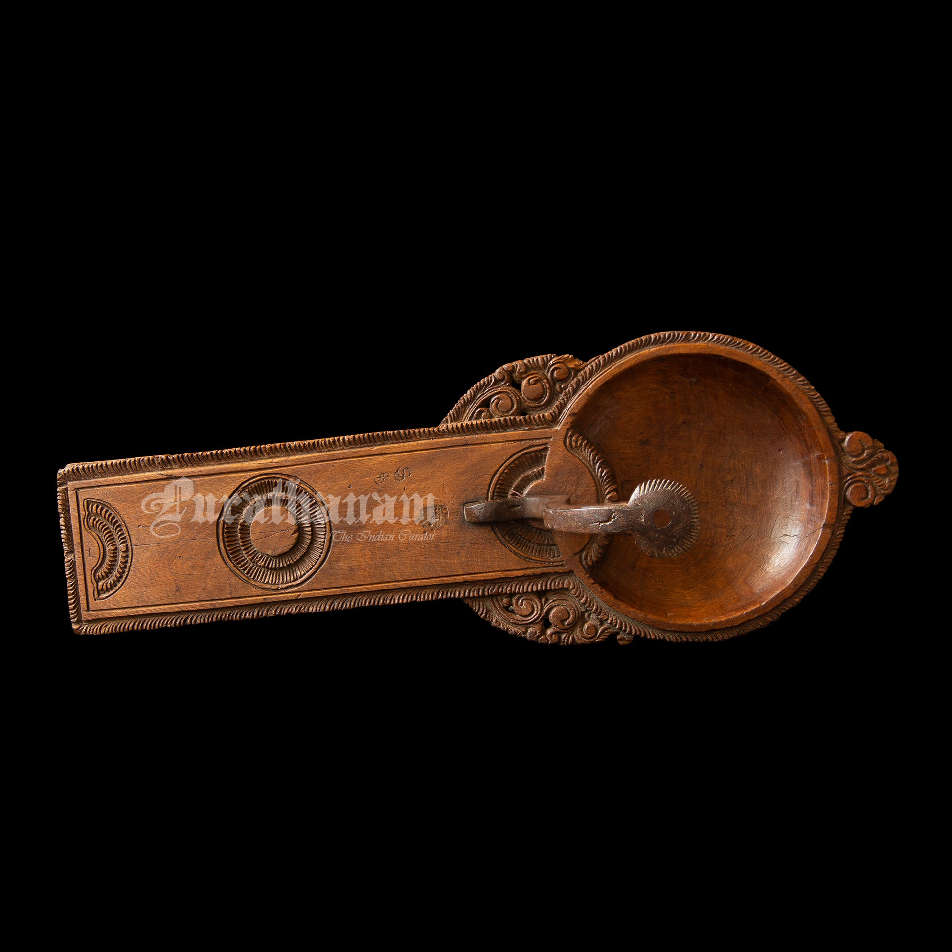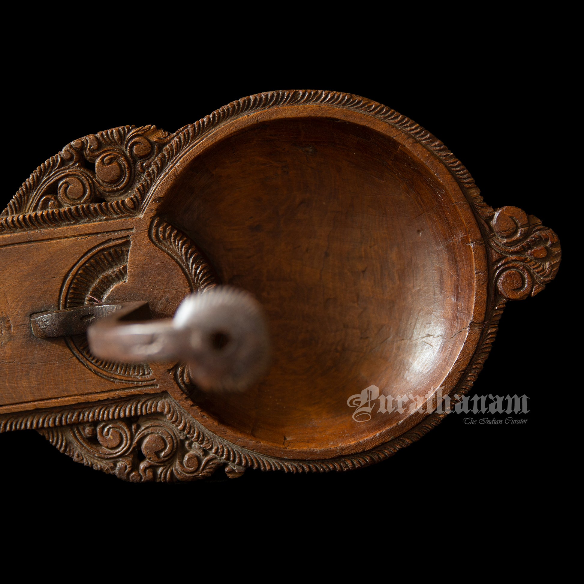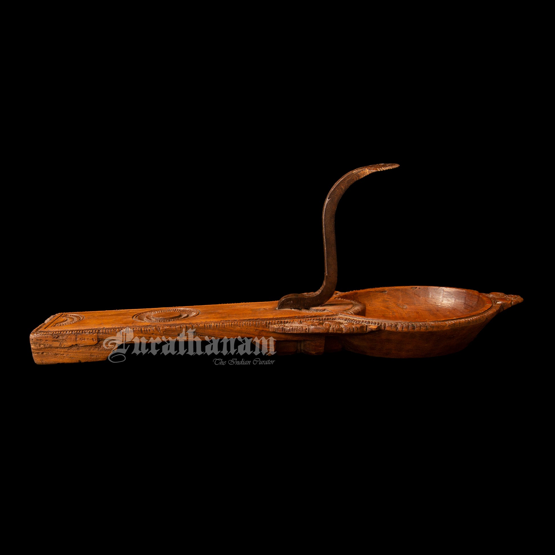 Here we have a decorative coconut scraper made of Satin wood all the way from Chettinad, Tamilnadu. Coconut scraper have been essential tools in South Indian households for centuries, enabling the extraction of coconut meat and milk for various culinary and religious purposes. The Chettinad coconut scraper, however, stands out due to its distinctive craftsmanship and ornate design.