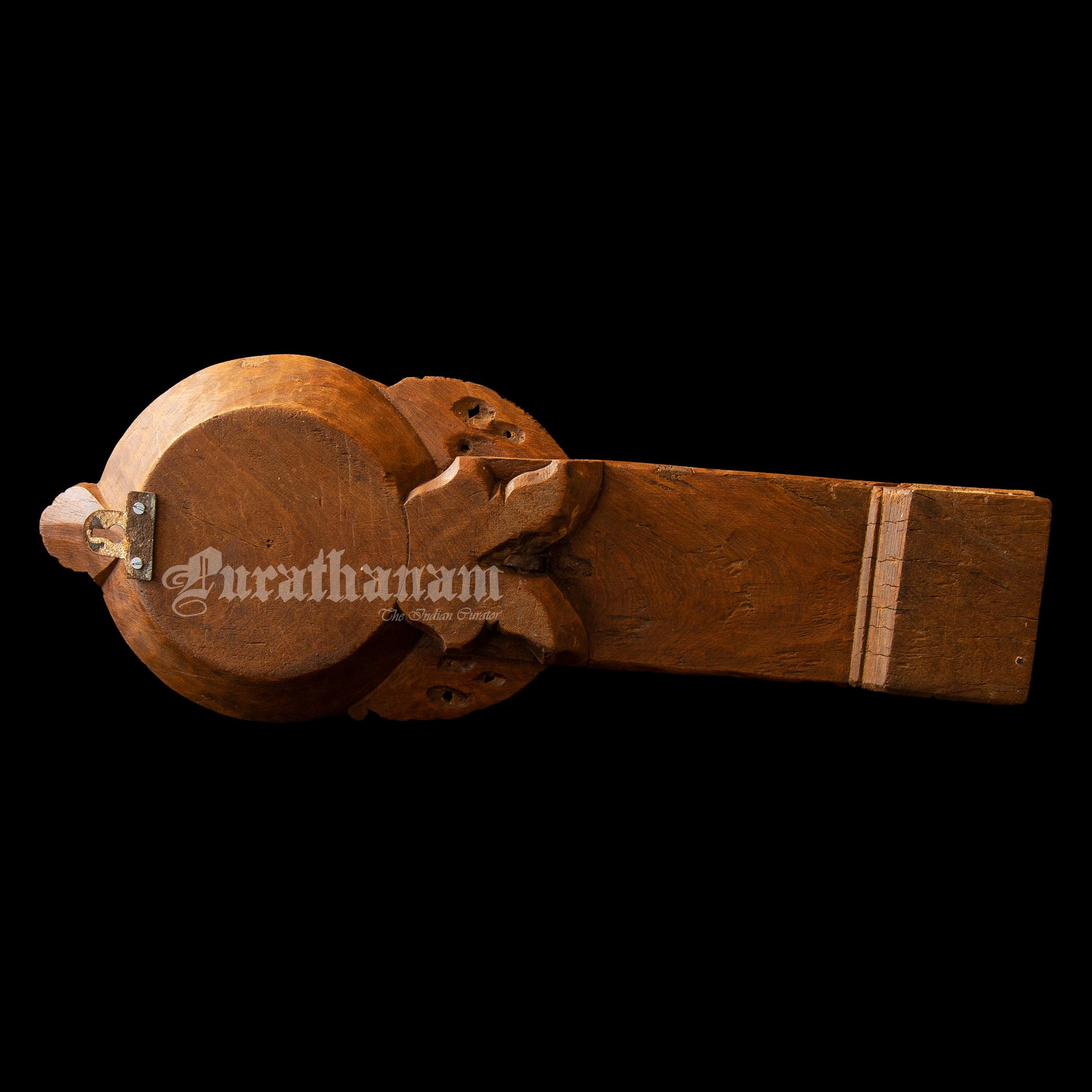 The coconut scraper were typically crafted from reclaimed seasoned teak wood and Satin wood from Srilanka. Both these woods are known for their durability and strength. The sharp-edged metal scraper was attached to the wooden base, allowing users to easily scrape coconut flesh while admiring the beautifully carved designs.