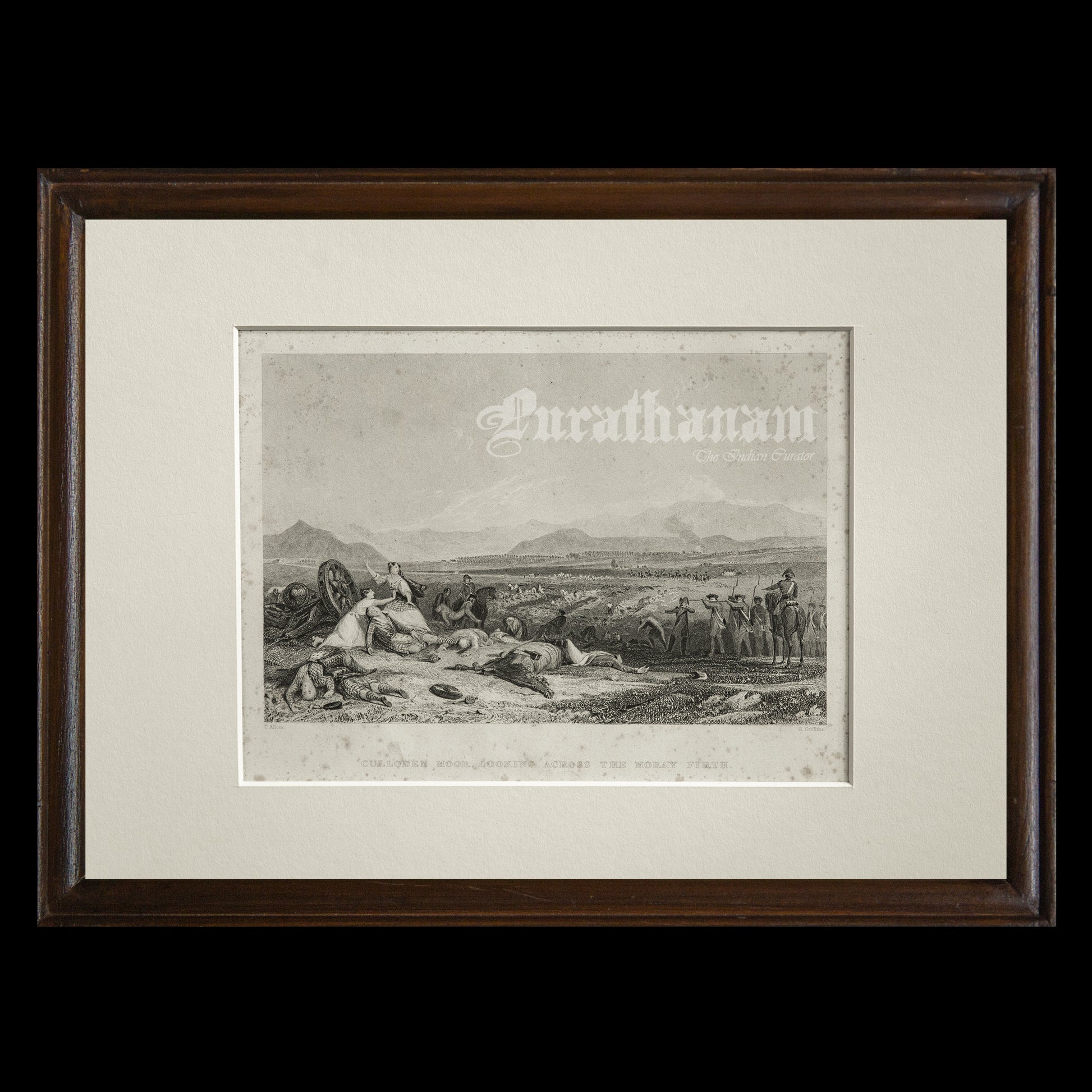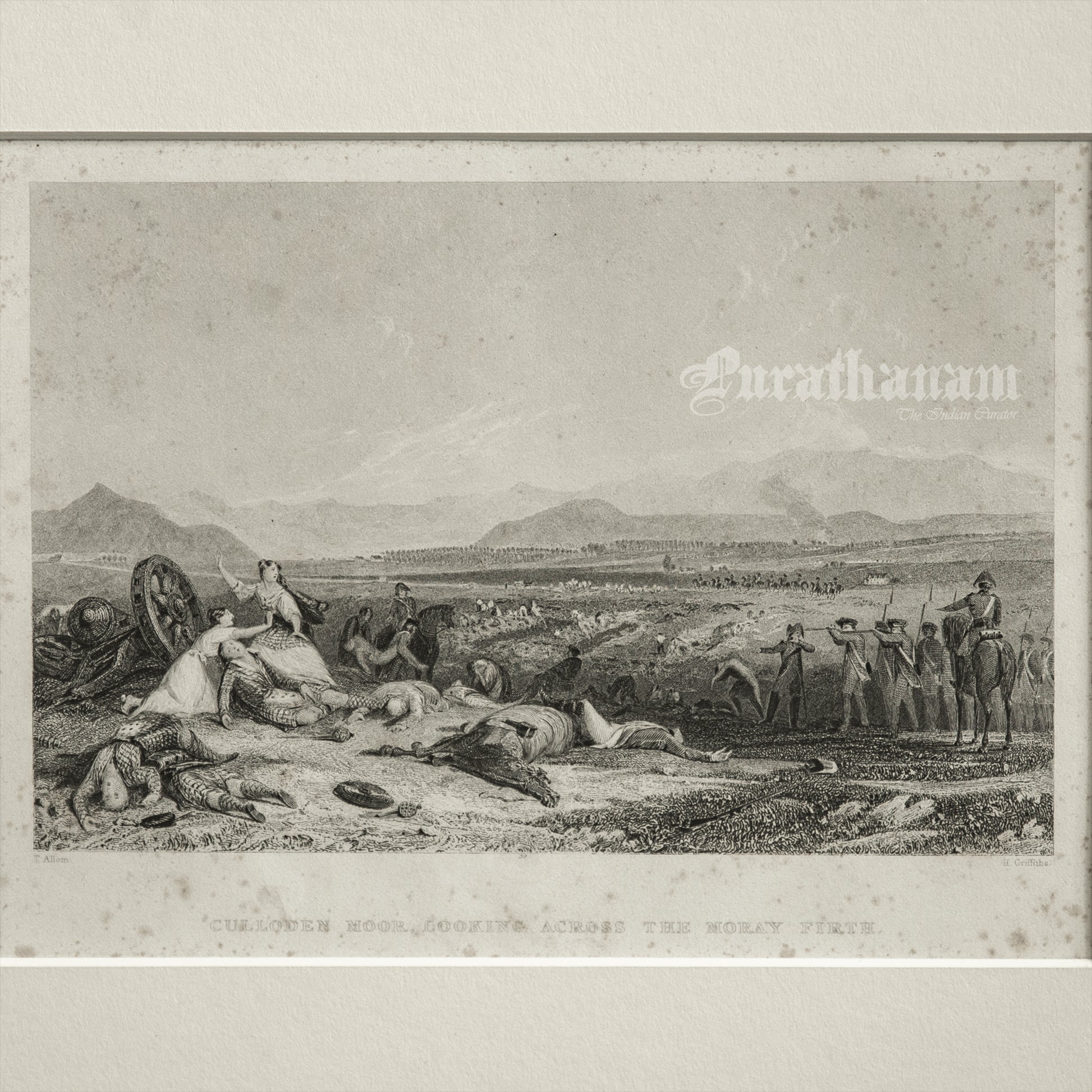Here we present a genuine antique steel engraving print of "Culloden Moor, Looking across the Moray Firth" by Thomas Allom from the late 1800s, engraved by Henry Griffiths.