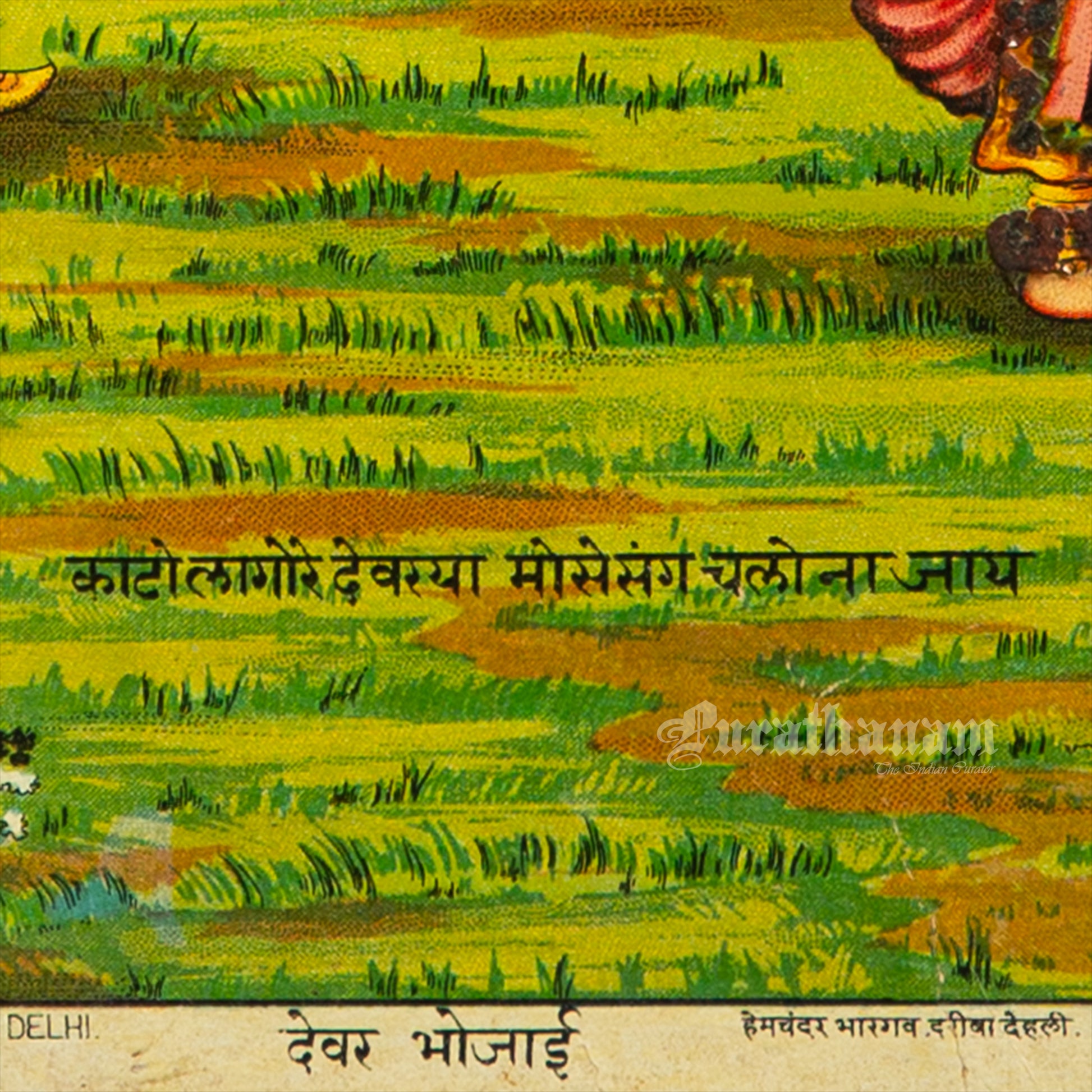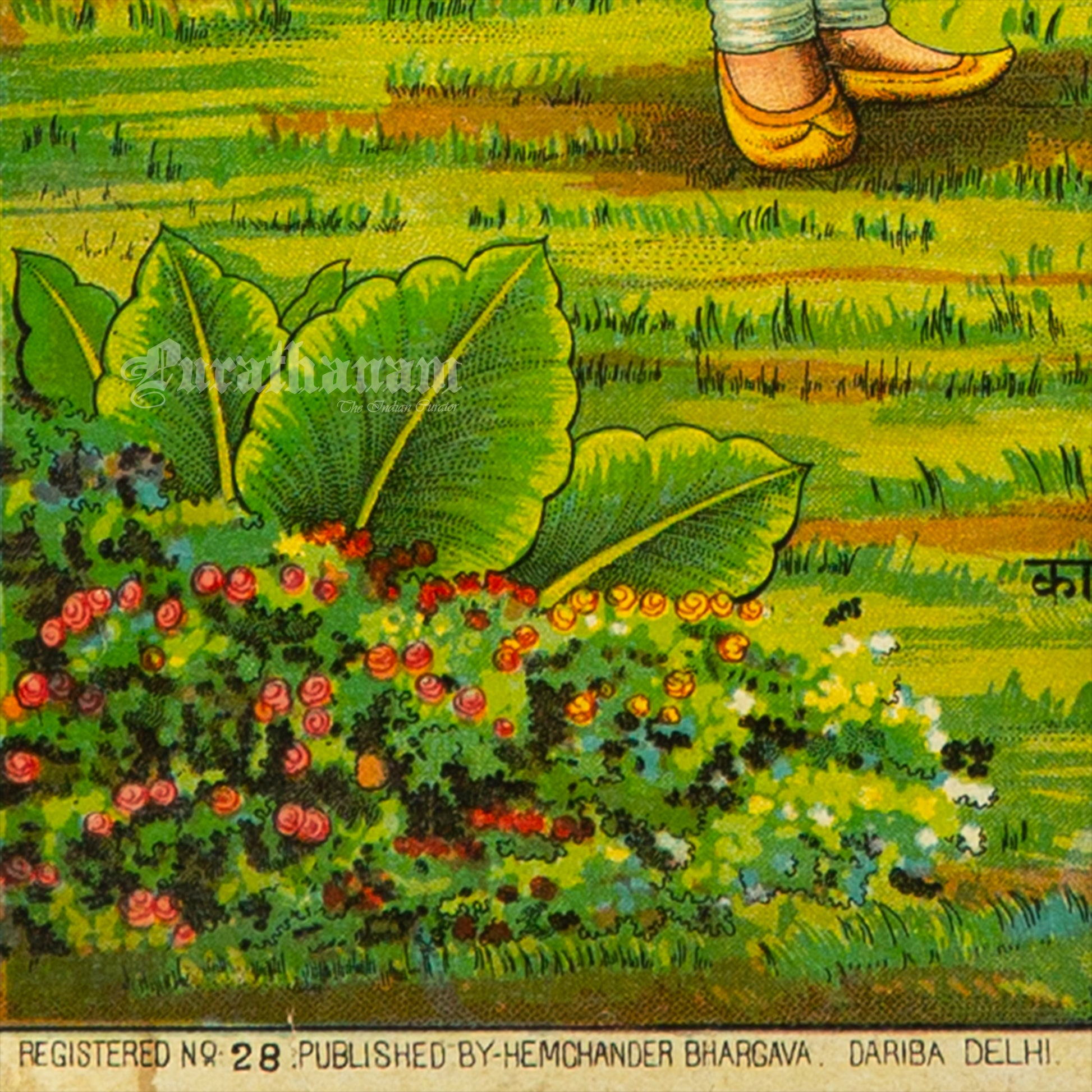 The Greek word litho means 'stone' and graphein means 'to write' so Lithography can be defined as 'stone printing'. The printing plate originally used were porous stones. The priting portion of the stone plate was treated to absorb ink and the nonprinting area was treated to repel ink. Depending on the number of colours present, an oleograph could take months to produce by very skilled workers.