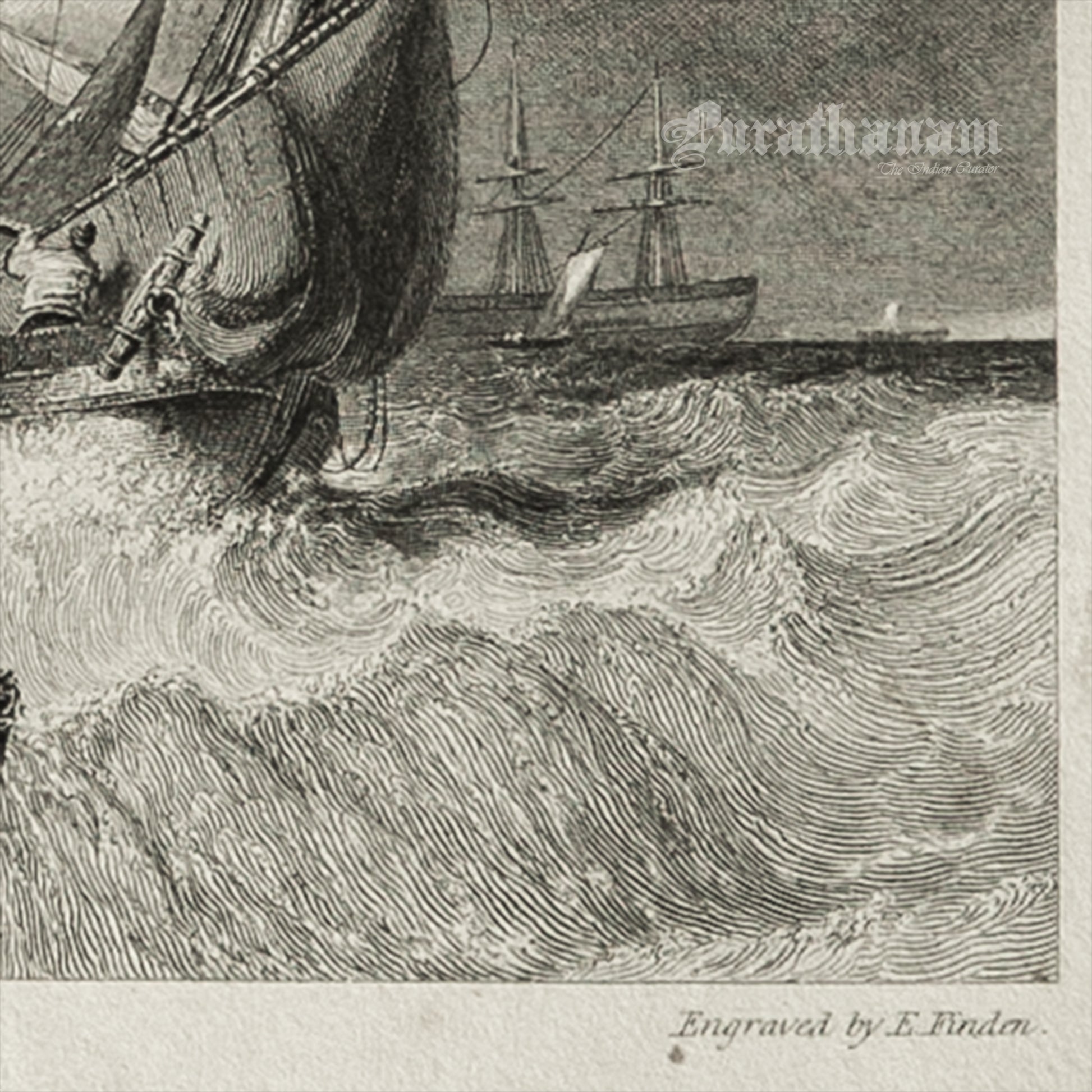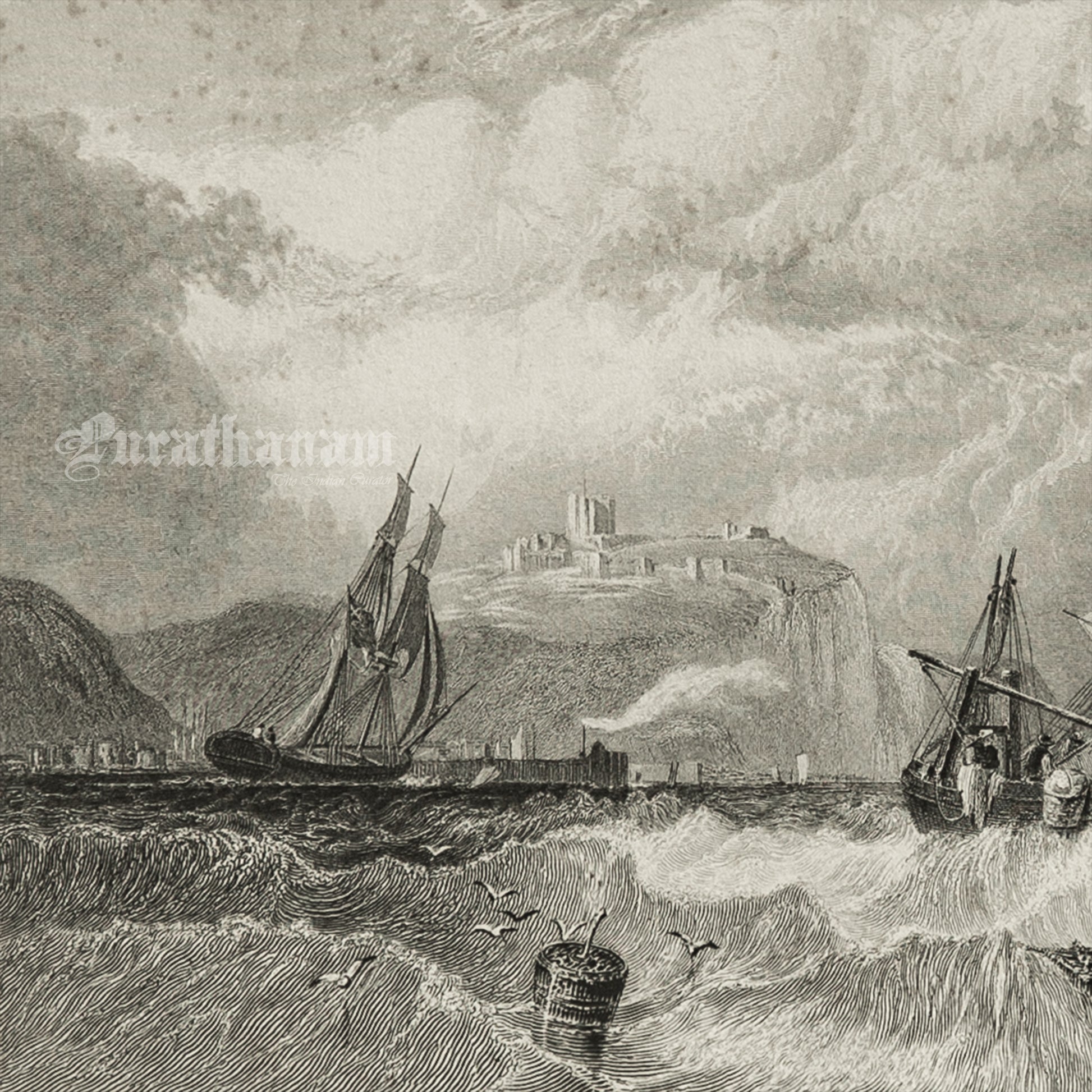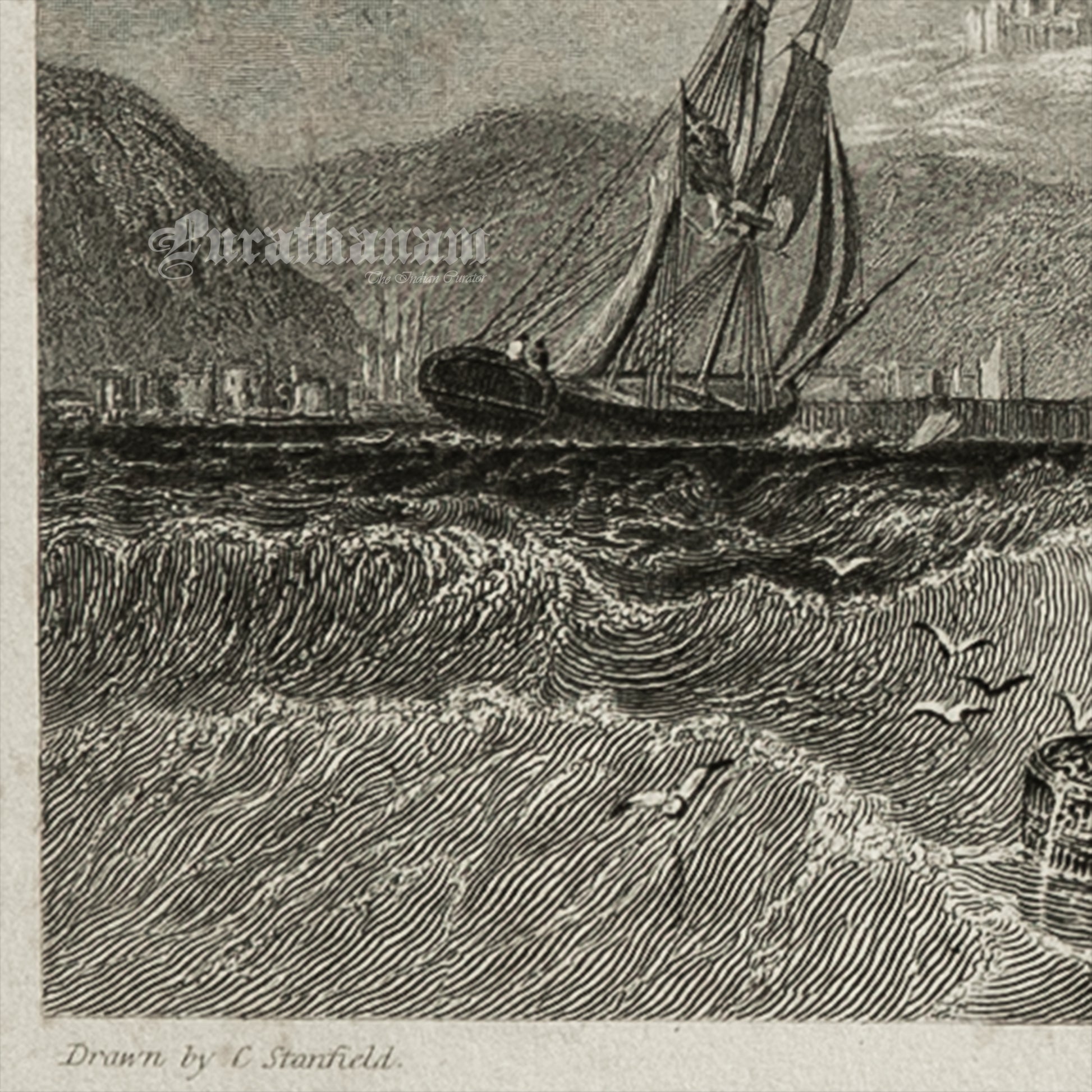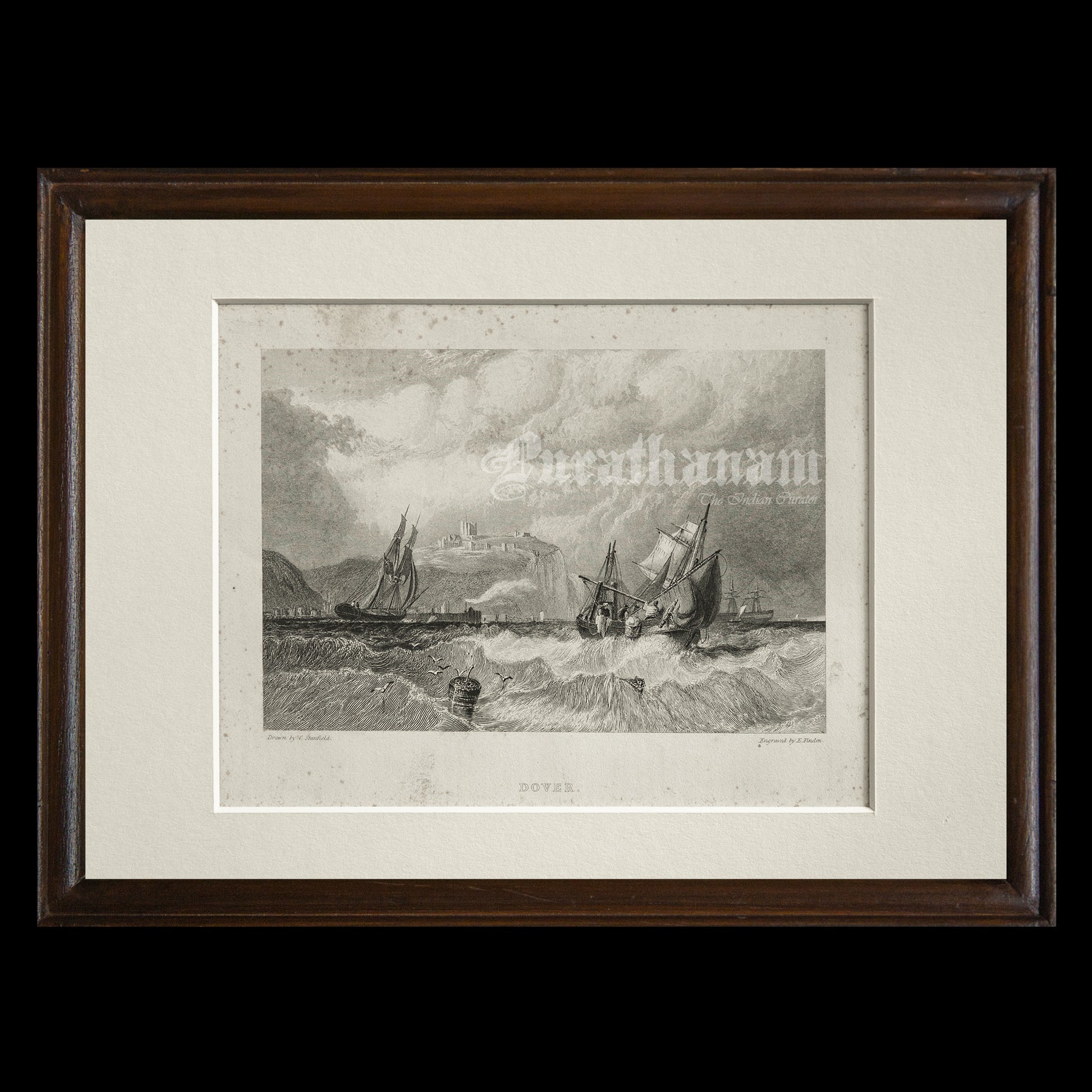 Here we have the real antique steel engraving print of Dover painted by Clarkson Frederick Stanfield in late 1800s and was engraved by Edward Francis Finden, who was a line engraver. He worked mostly with his elder brother, William Finden and their works were extremely popular in the middle of the nineteenth century.