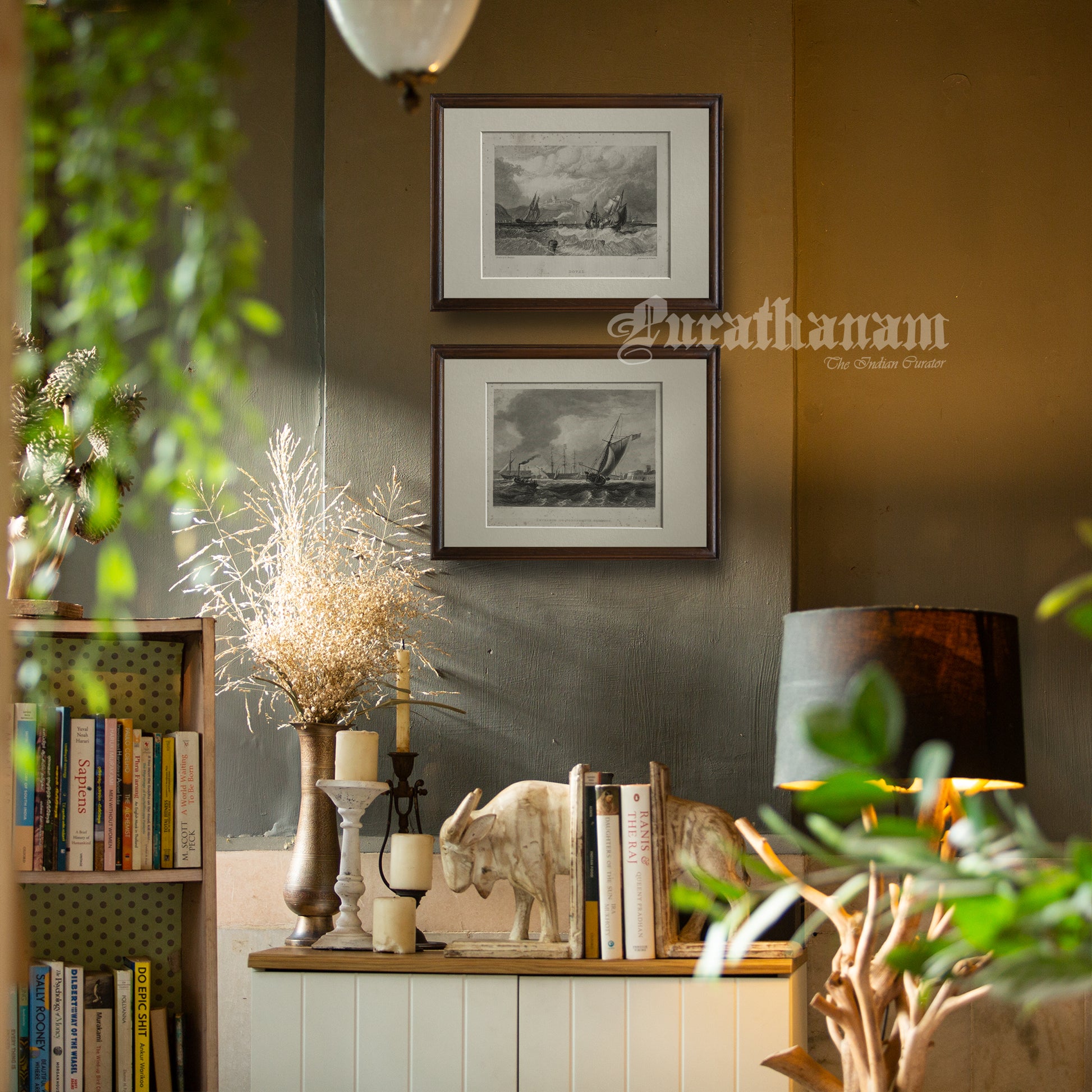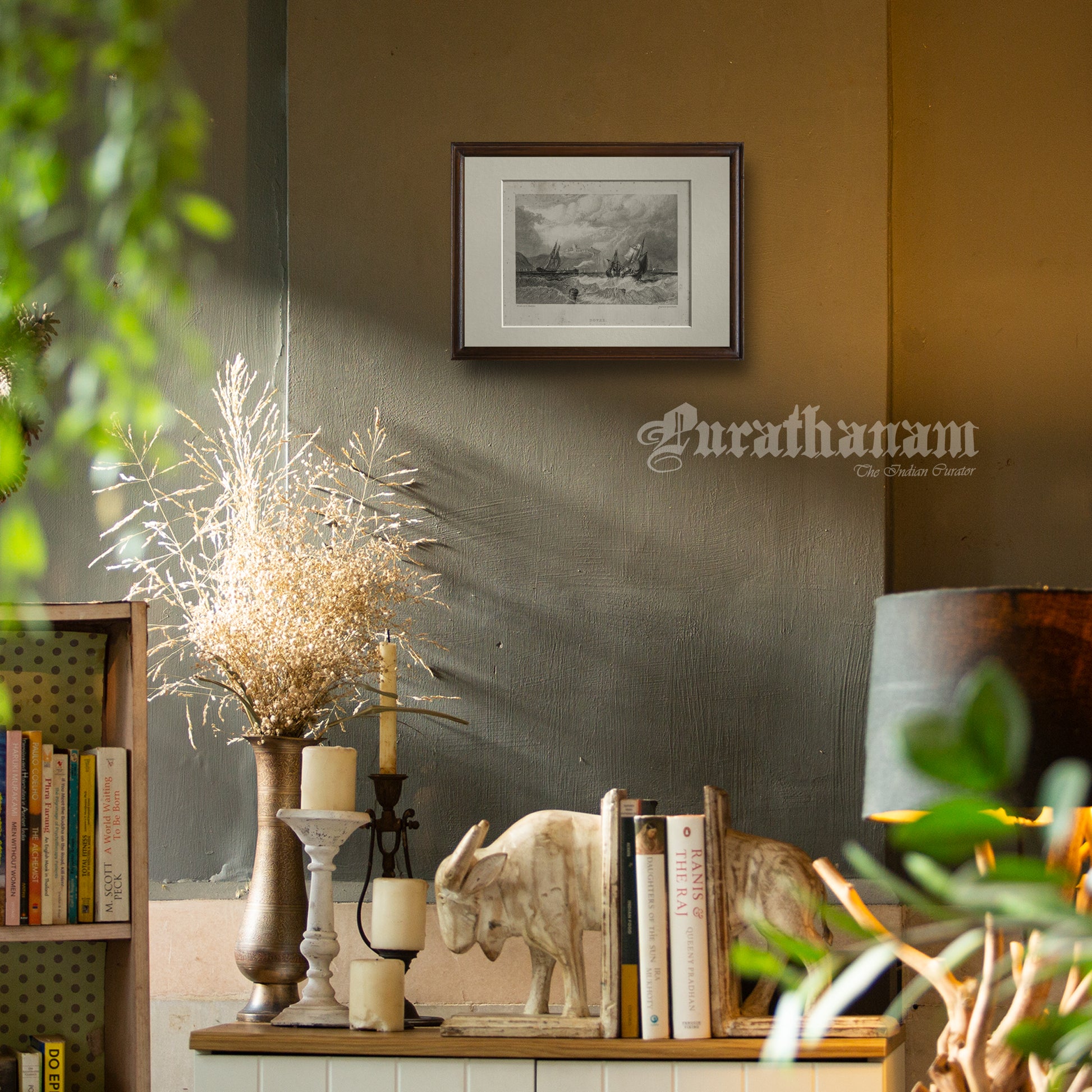 Frame: The frame may vary. It is single-matted, mounted with a backing board. The frame is made of teakwood and has acrylic protection in place of glass.