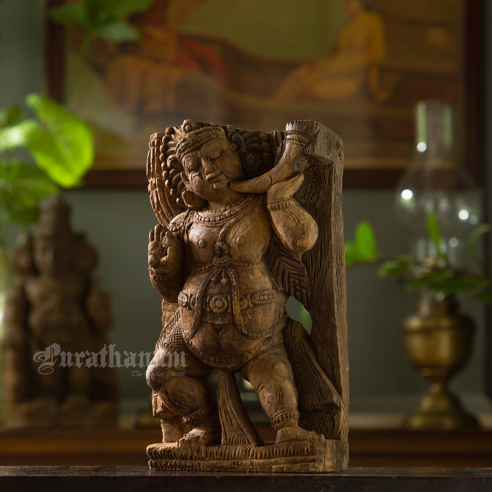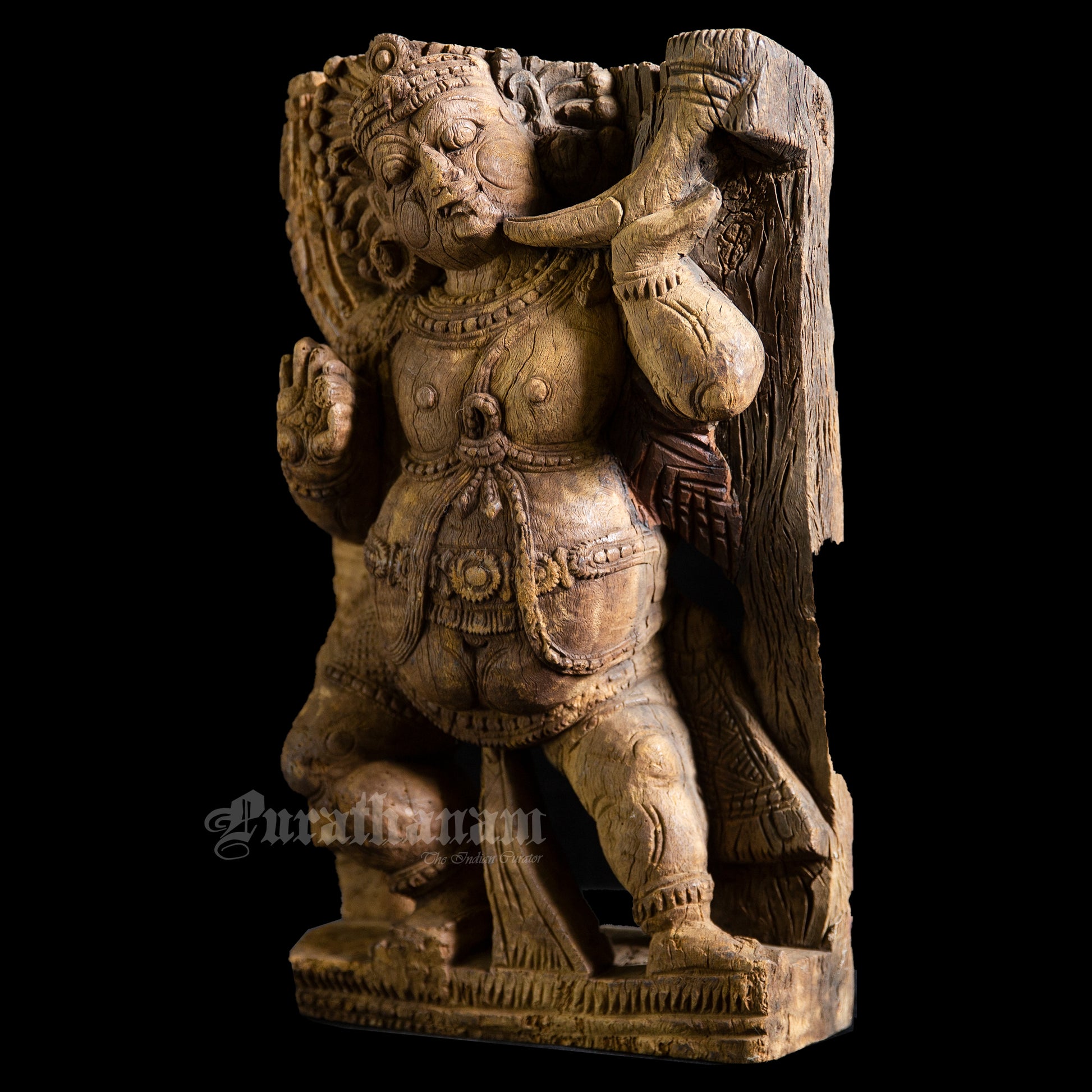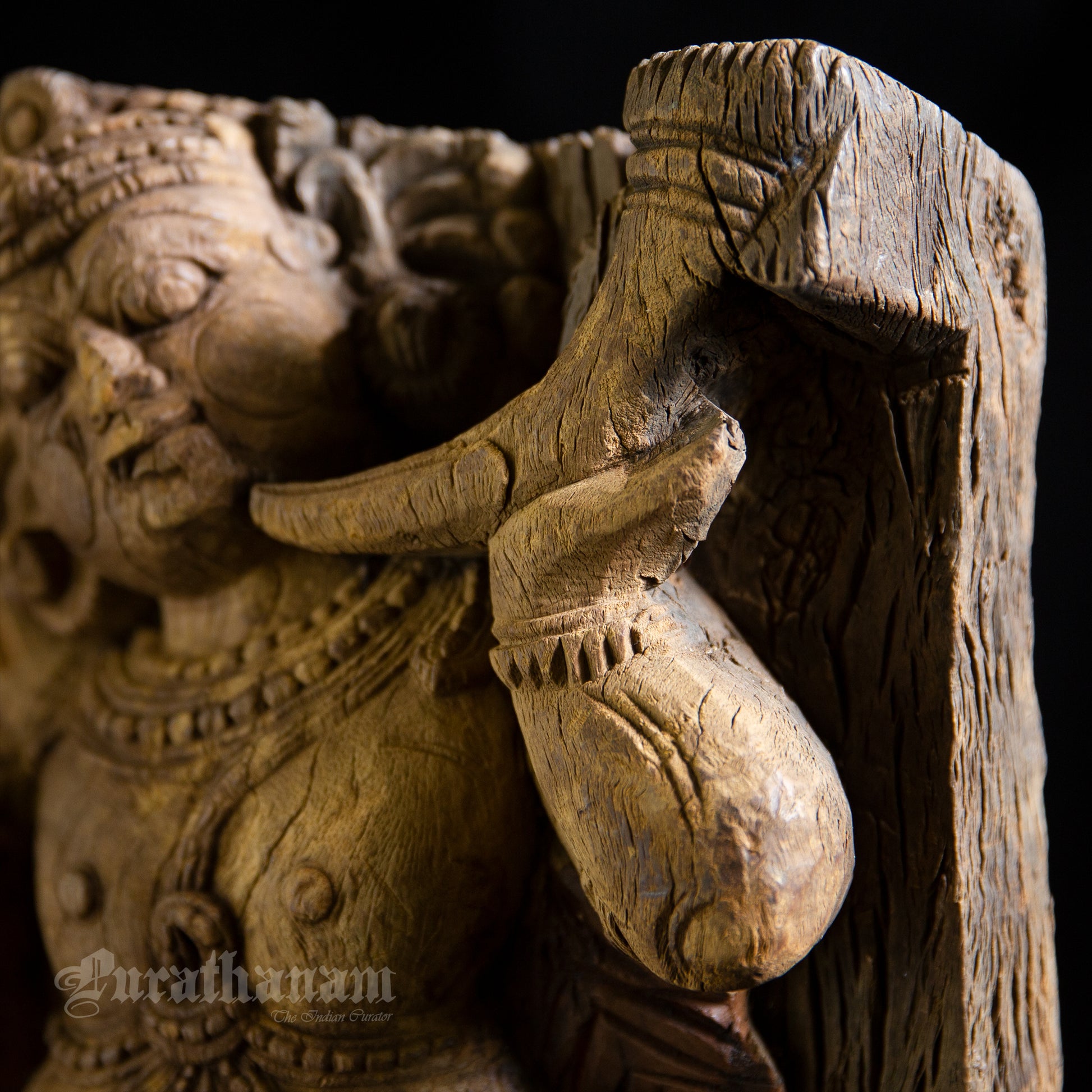Here is a beautiful hand carved Dwarapalak wooden sculpture which is more than 100 years old. It has come all the way from Tamizh Nadu, South of India.