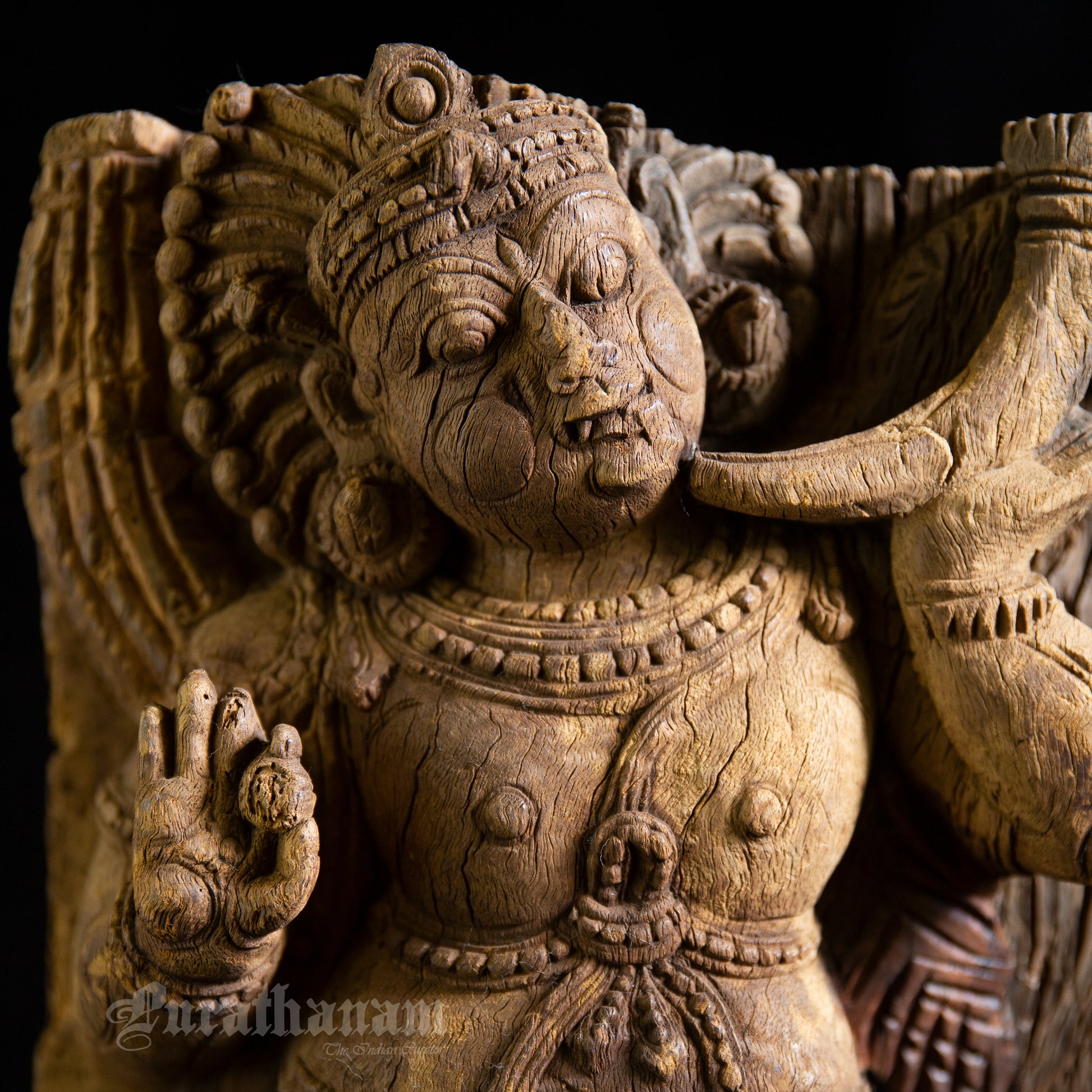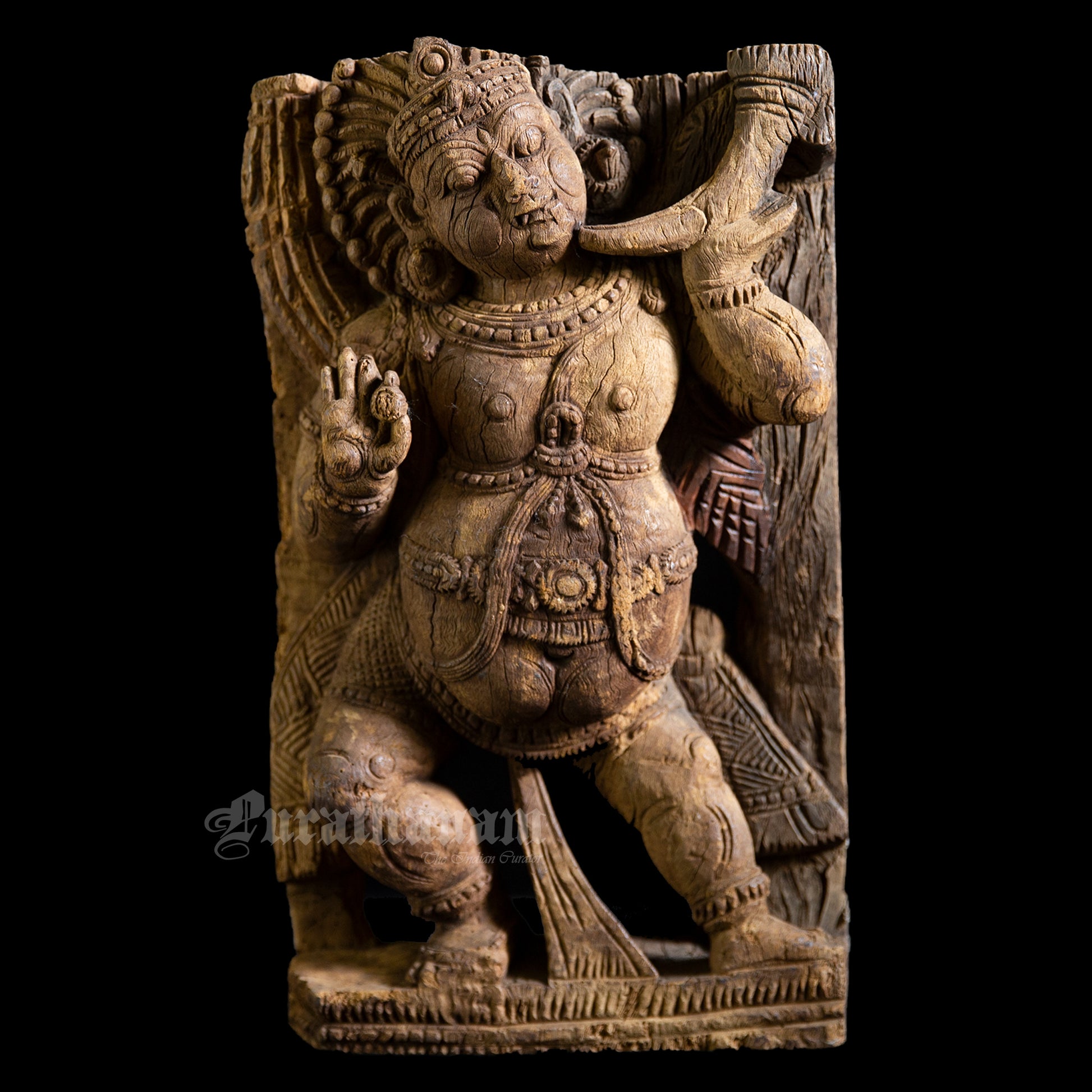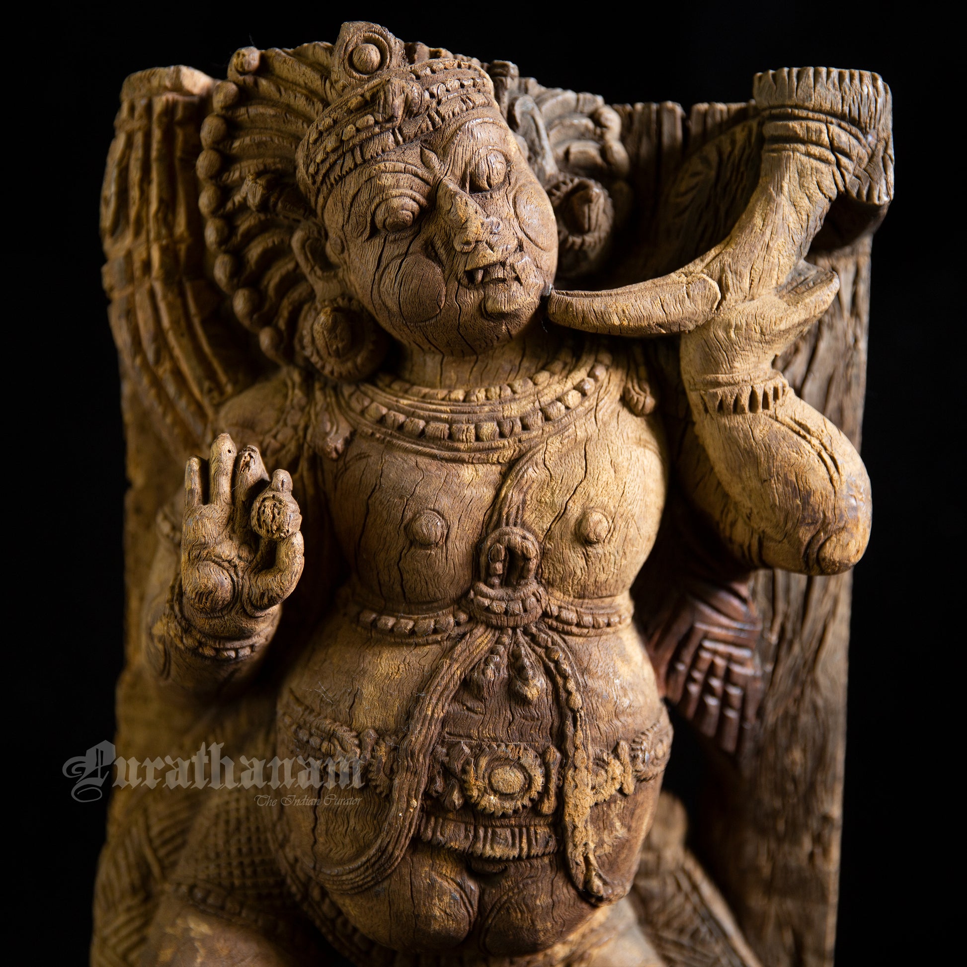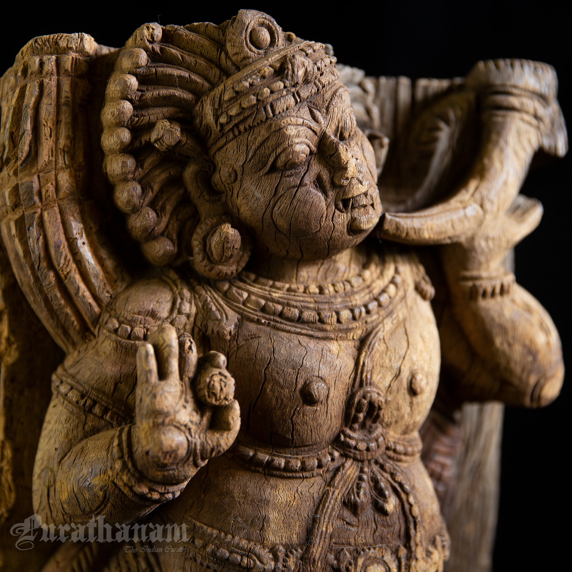 Here is a beautiful hand carved Dwarapalak wooden sculpture which is more than 100 years old. It has come all the way from Tamizh Nadu, South of India.