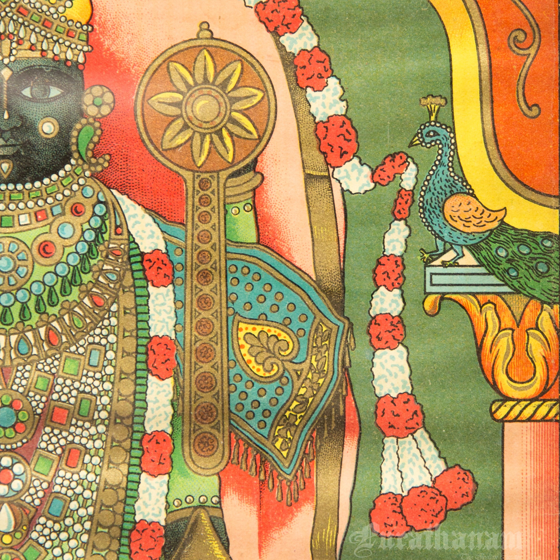 This is an oleograph print from 1920s- 1930s of Dwarikanath by Ravi Varma an Indian painter who achieved recognition for his depiction of scenes from the epics of the Mahabharata and Ramayana.