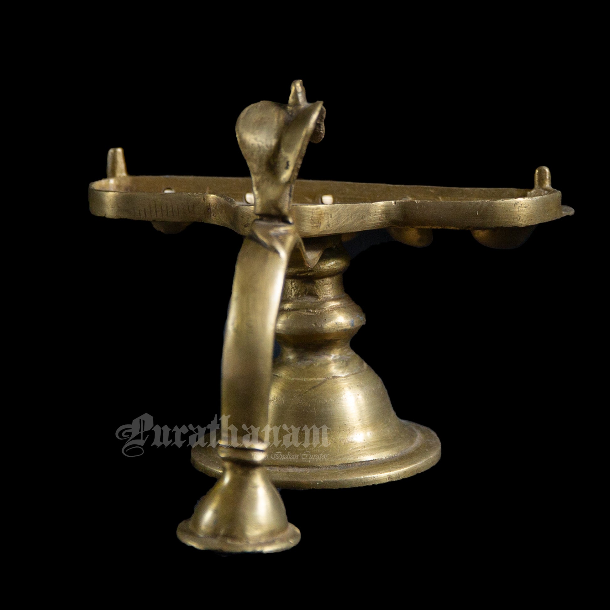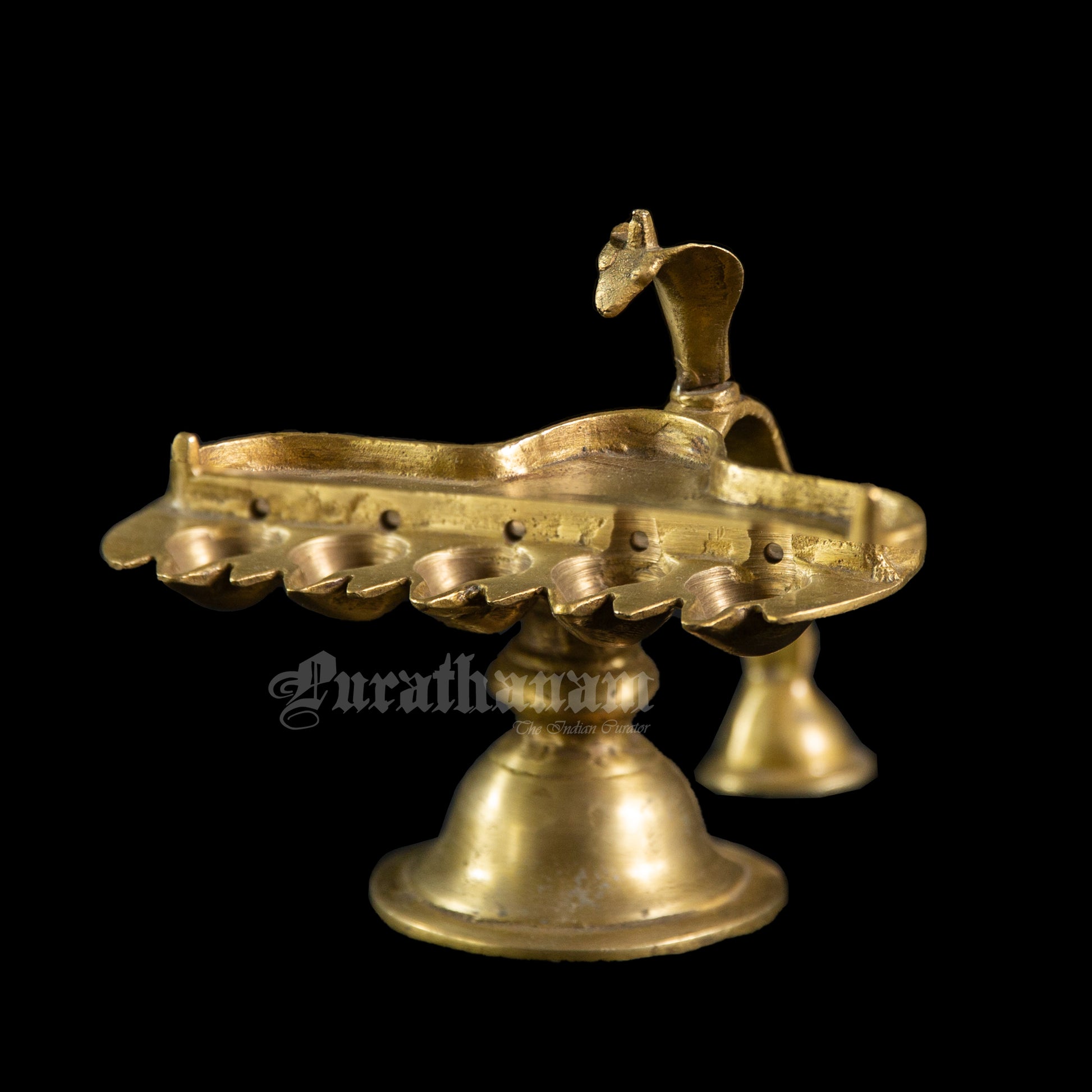 A beautiful vintage five wick hand held Naga Aarti made in brass. It is more than eighty years old.