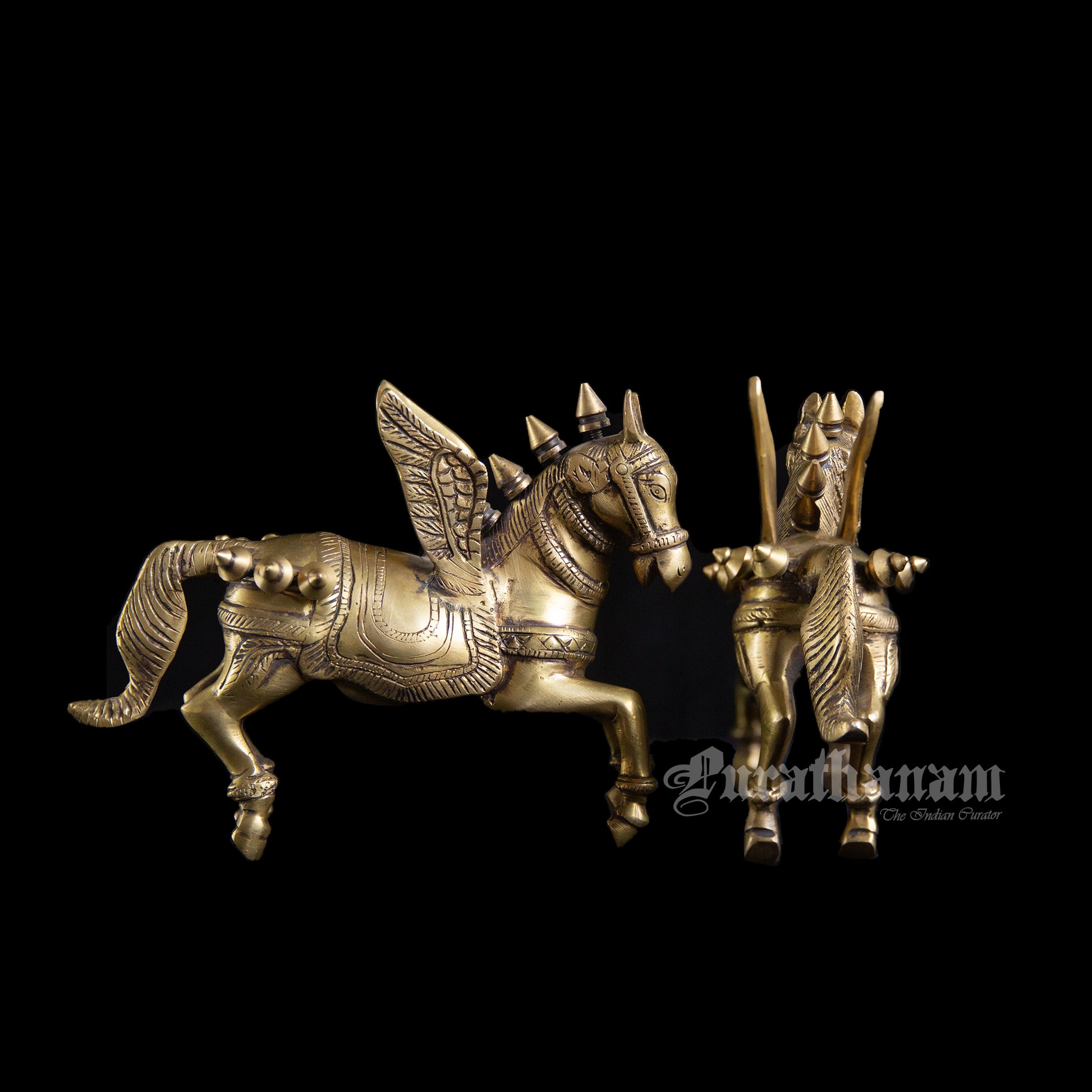 This stunning Flying Horse Pair, made of brass and inspired by South Indian folk traditions, draws on the horse as a symbol of movement, protection, and vital energy.