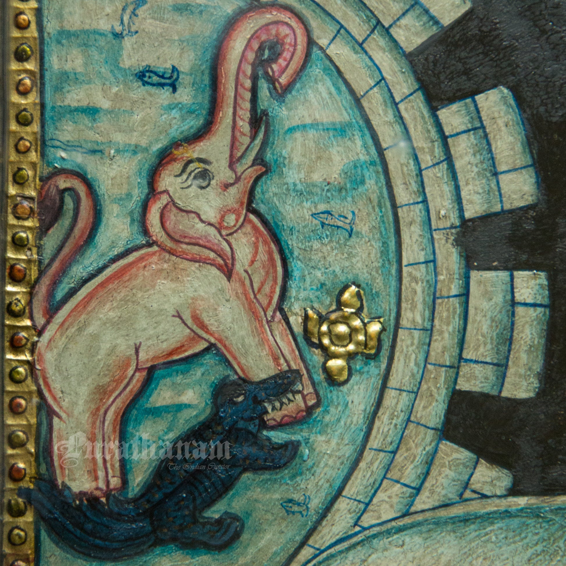 - Nose Rings Came Later: The nose rings on deities seen in Tanjore paintings are relatively new. Tanjore painting artisans say the earliest paintings had no nose rings on deities, and this is one way to judge the age of a painting. Nose rings are not seen in Chola bronzes or in early Pandya stone idols. It’s understood that there were no nose rings on Devis until the Chozha period. Later, we can see the influence of the Mughal period in Tanjore paintings.