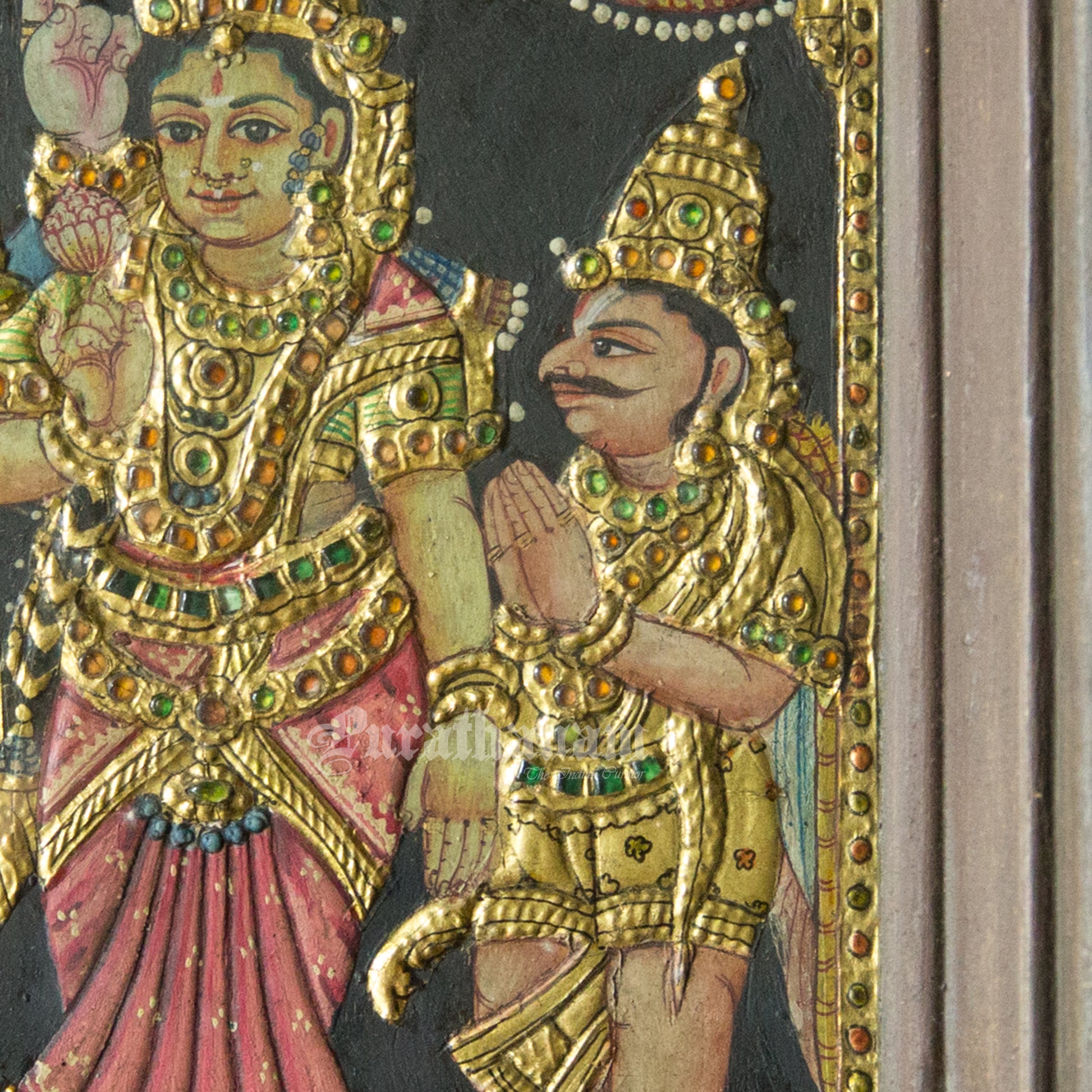 - No Glass Protection: Back in the day, Tanjore paintings were framed using teak wood and did not have protective glass covers, they were displayed openly. Due to less pollution they were safe even without a glass cover.