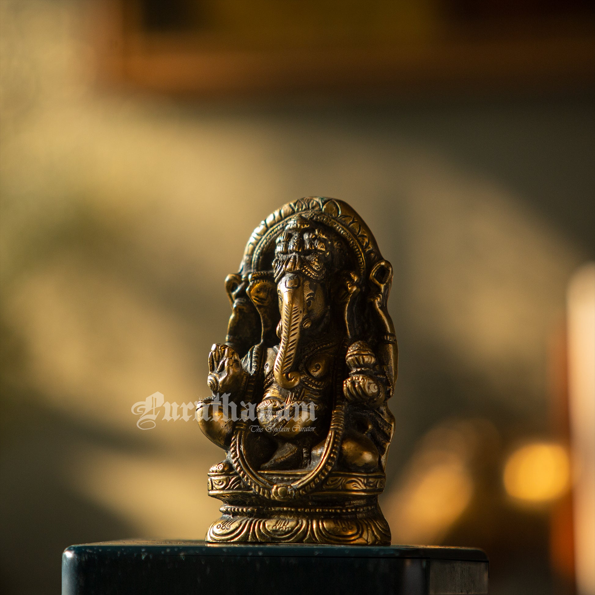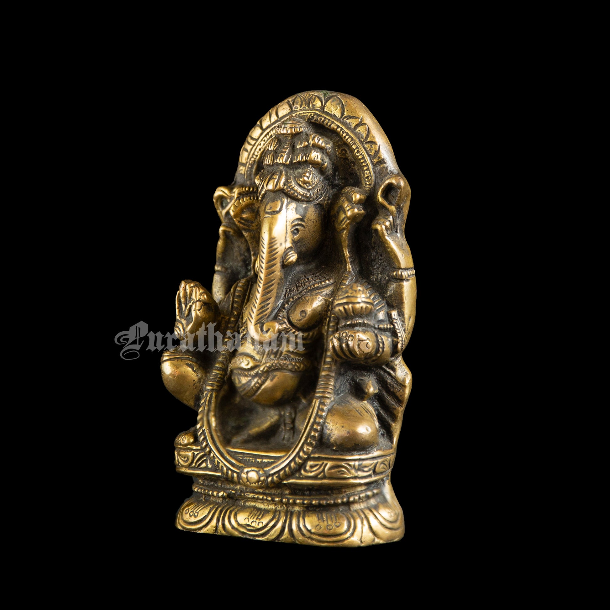 Presenting a seated Ganapati figurine made of brass which is about 40-50 years old from North India.
