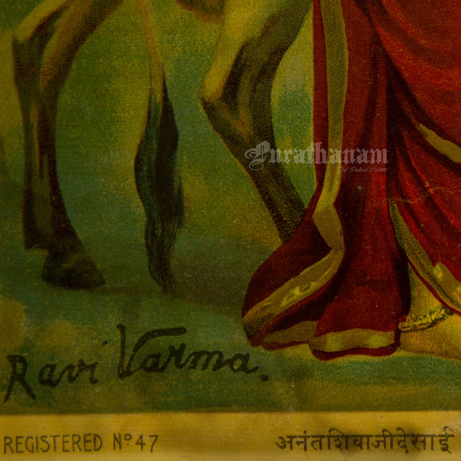 Raja Ravi Varma (29 April 1848–2 October 1906) was a celebrated Indian artist, famous for his realistic portrayal of Indian gods, goddesses and mythological characters. Raja Ravi Varma was the first to make prints (or lithographs) of his artworks affordable and easily available, bringing fine art to the masses.