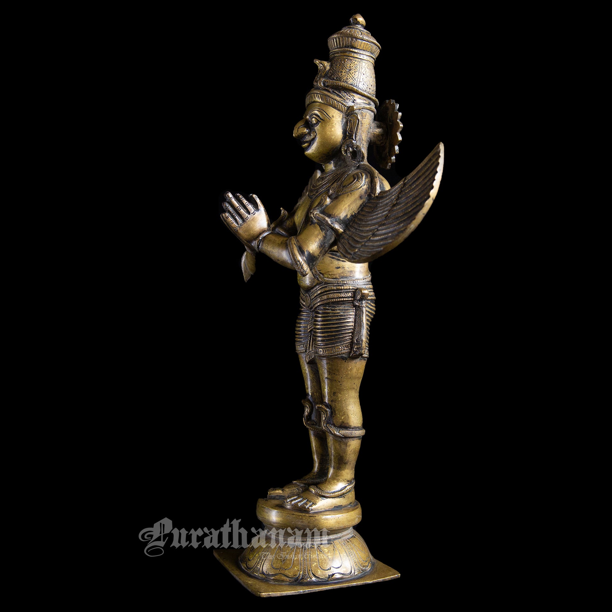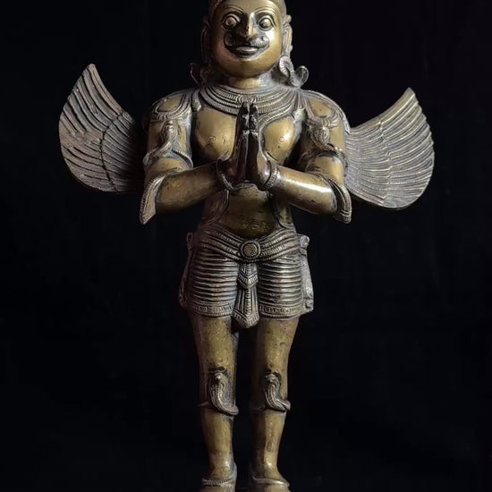 Garuda stands in anjali mudra (hands in prayer), with stylised wings spread wide symbolising devotion, protection, and inner strength. The calm expression and balanced posture give this piece a quiet yet powerful presence.