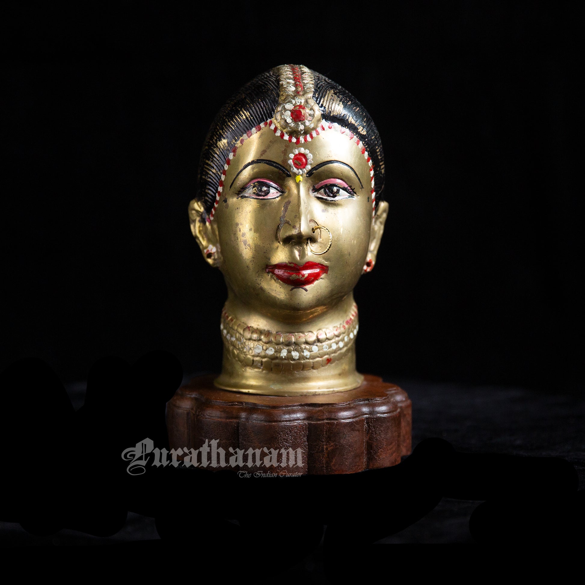 Presenting this gorgeous vintage Gauri Head, exquisitely crafted from solid brass. This beautiful piece, around 40 years old, originates from the Maharashtra–Karnataka border in India. A timeless symbol of grace and tradition, it carries the charm of vintage artistry and the serene beauty of Gauri.