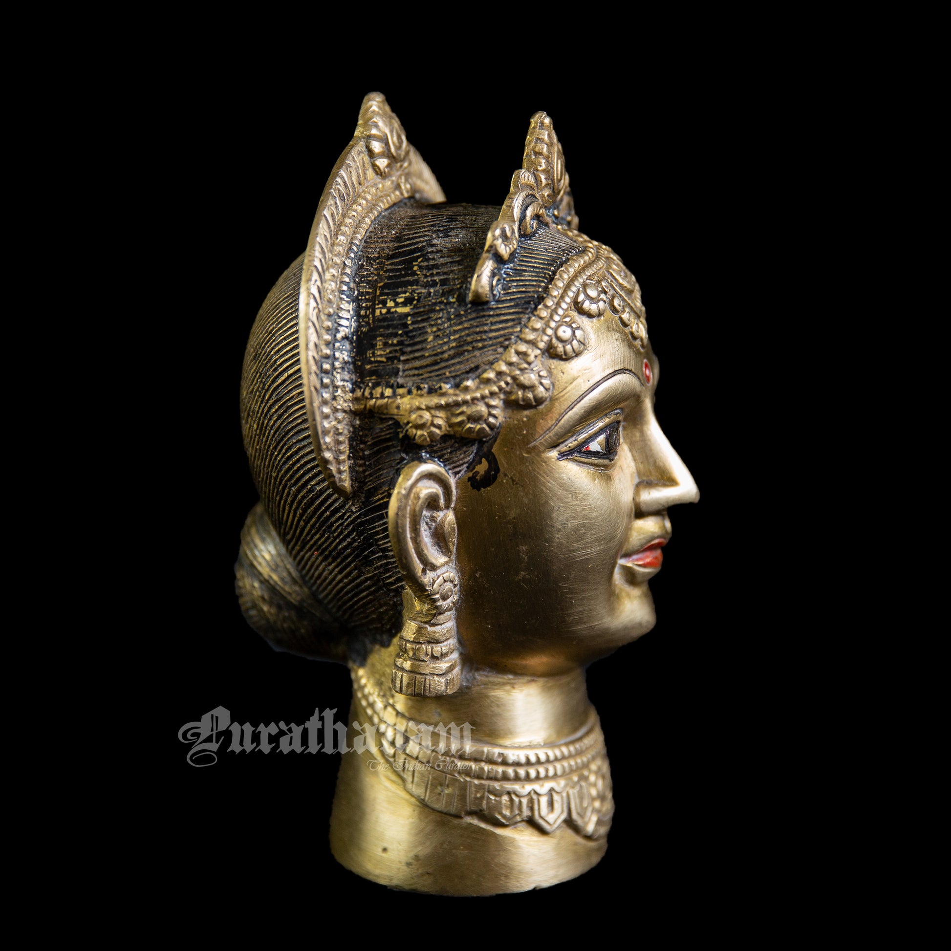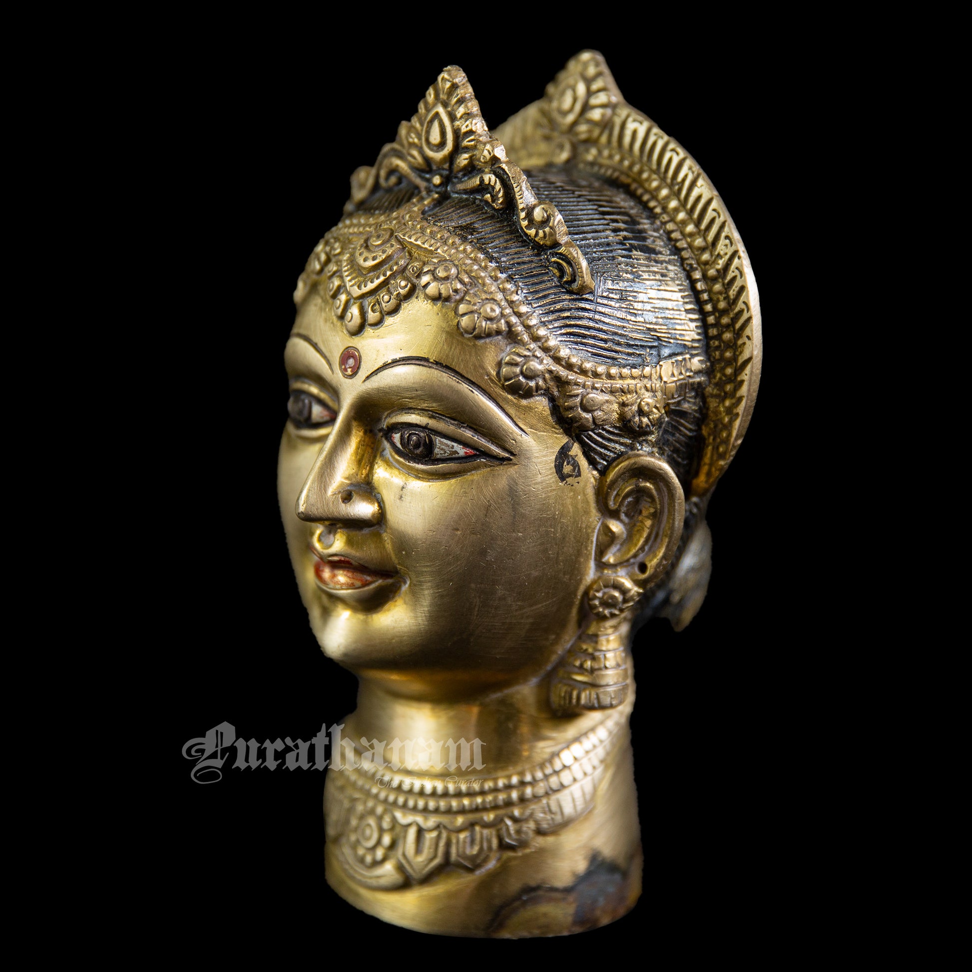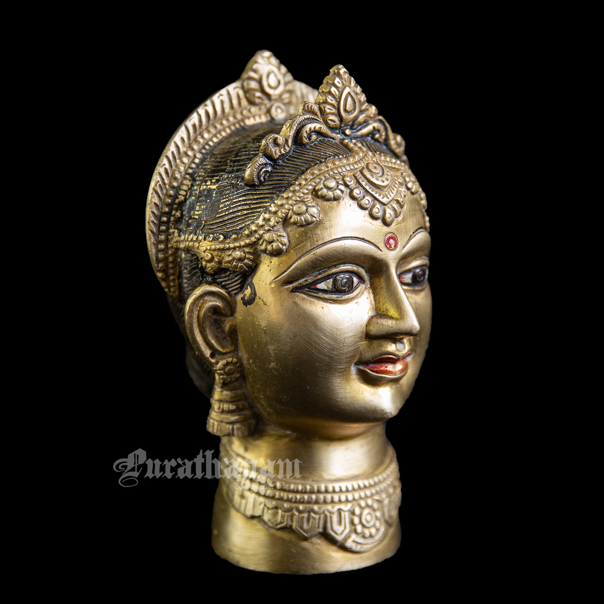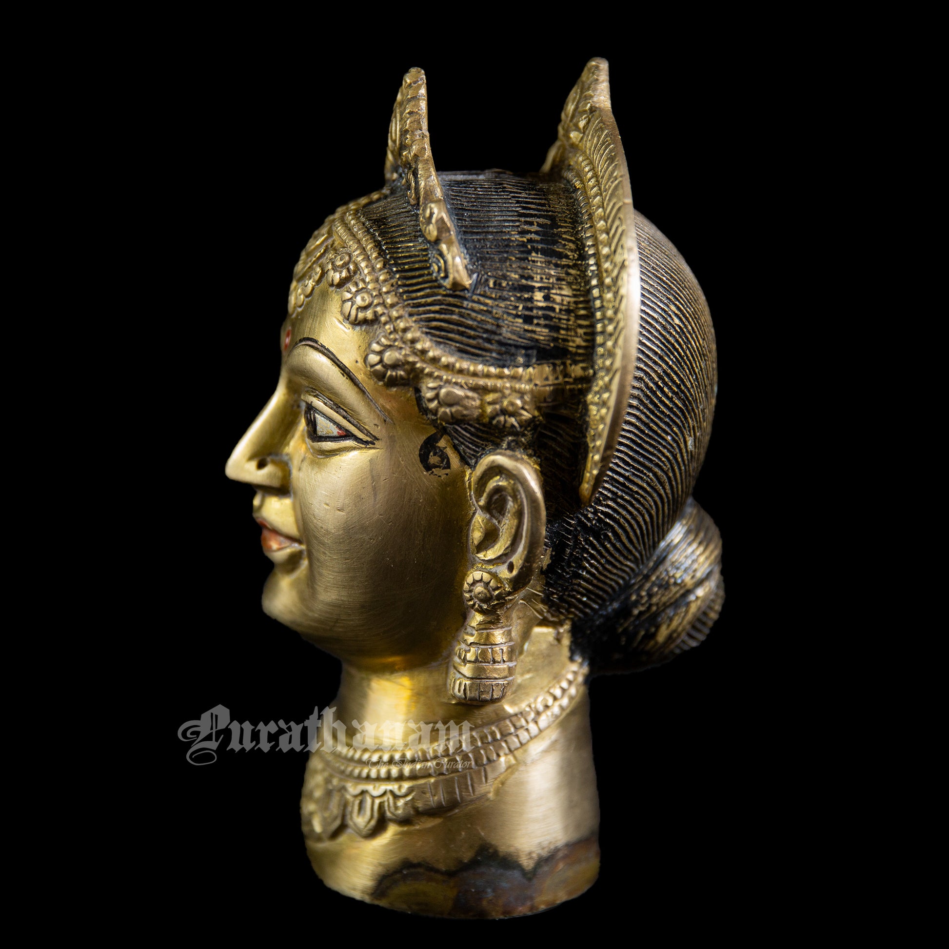 Here is a Gauri Head made of solid brass using a cast. This method was first used in the 70's but very prevalent in the 80's.