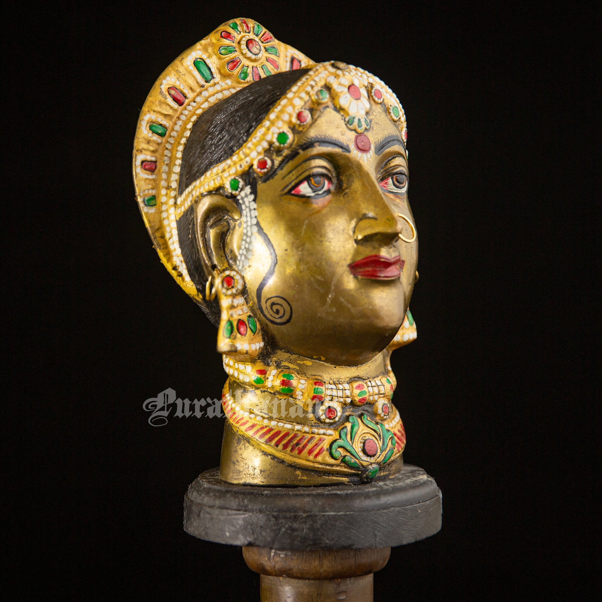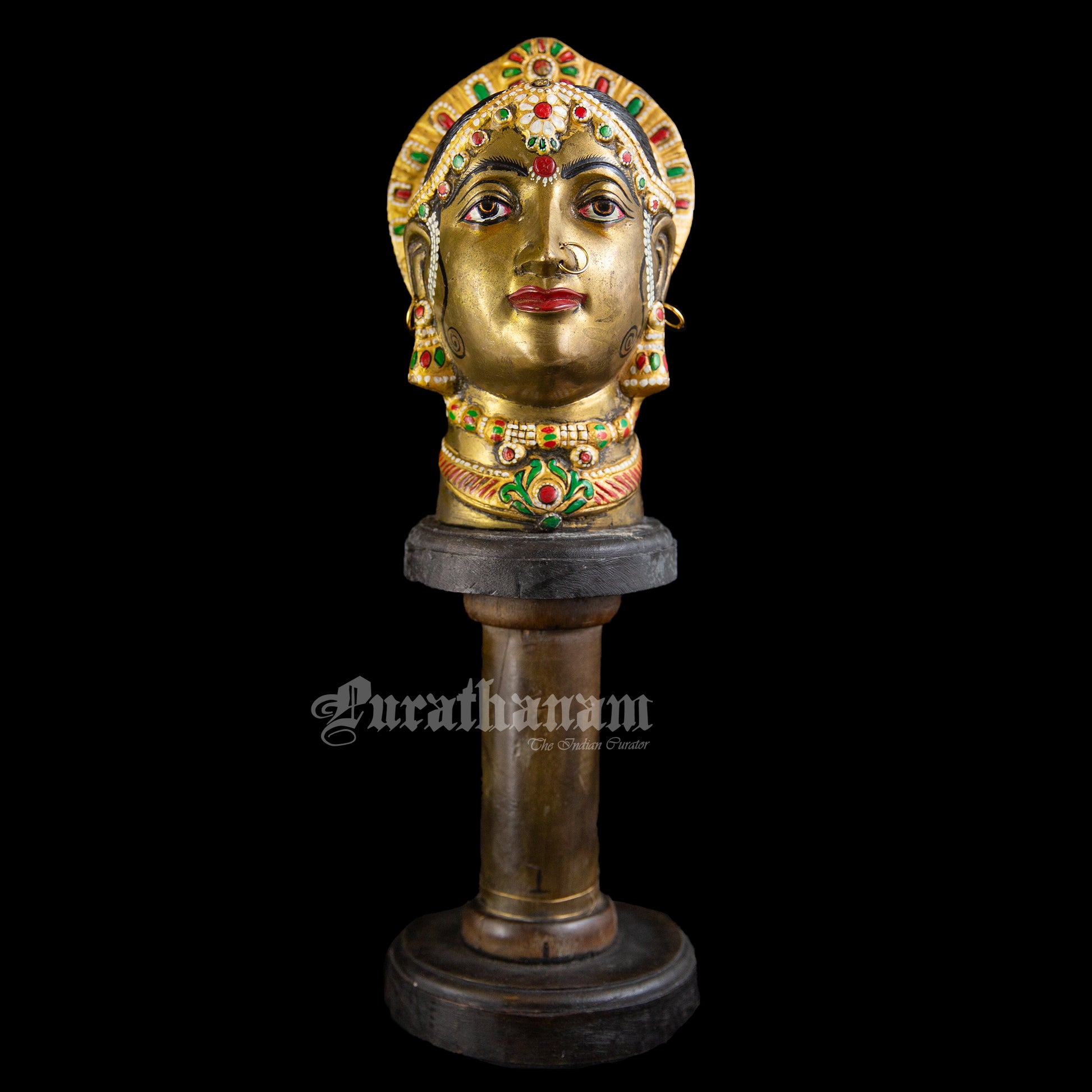 Presenting this gorgeous vintage Gauri Head crafted from solid brass. It is around 40-50 years old from Maharashtra-Karnataka border, India.