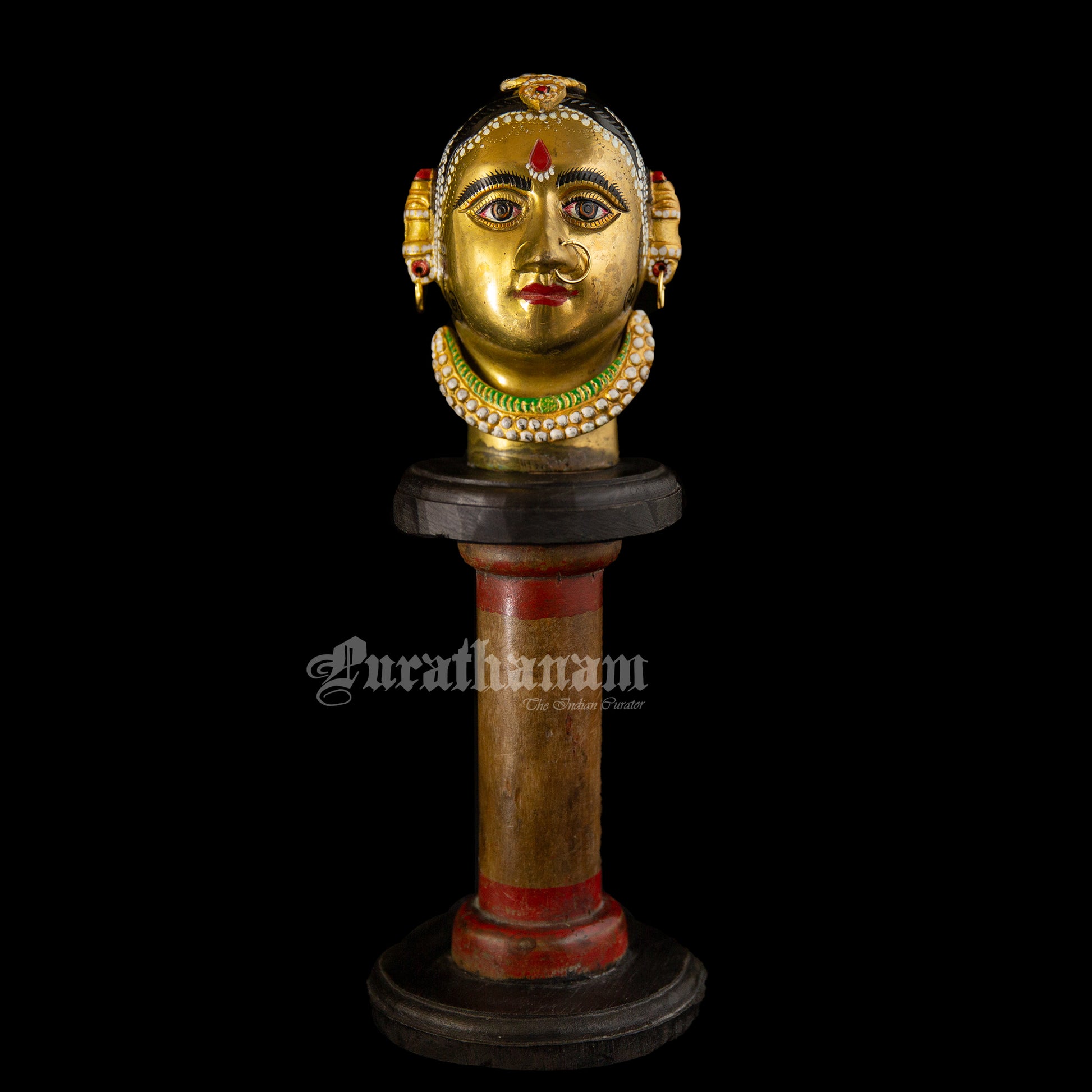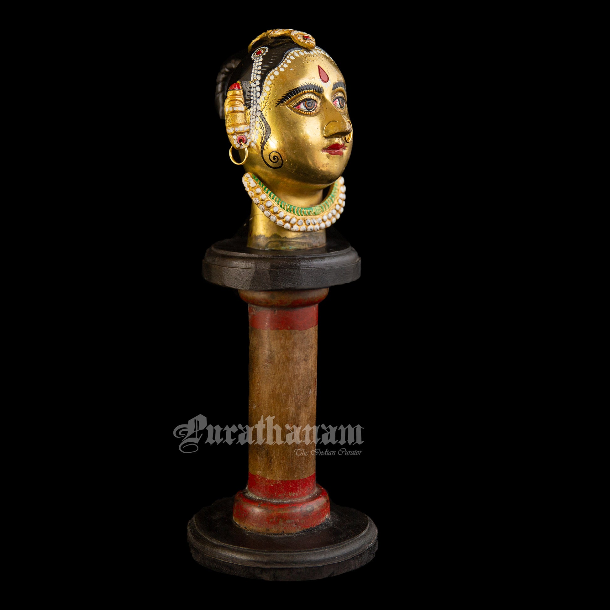 Presenting this gorgeous vintage Gauri Head crafted from solid brass. It is around 30 years old from Maharashtra-Karnataka border, India.