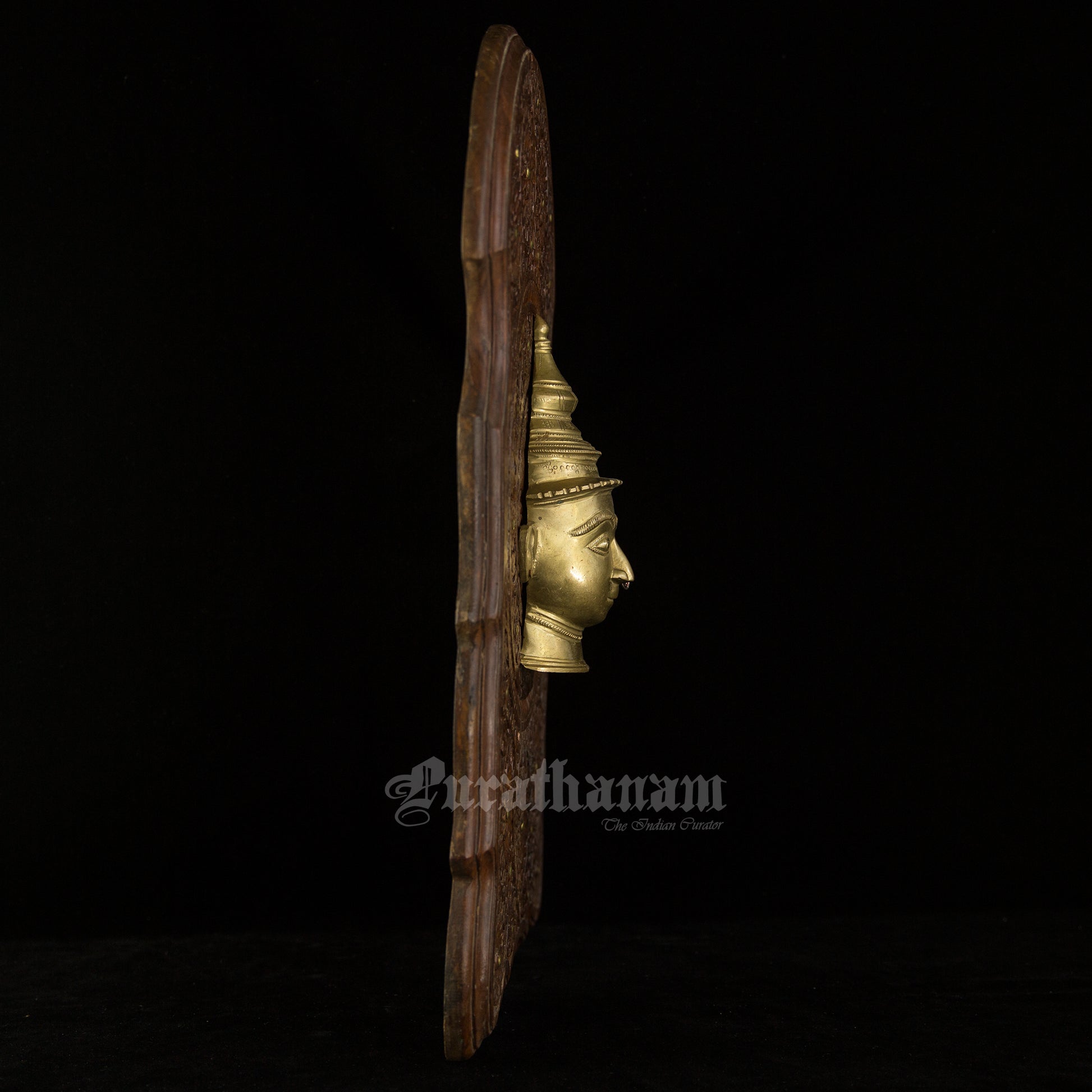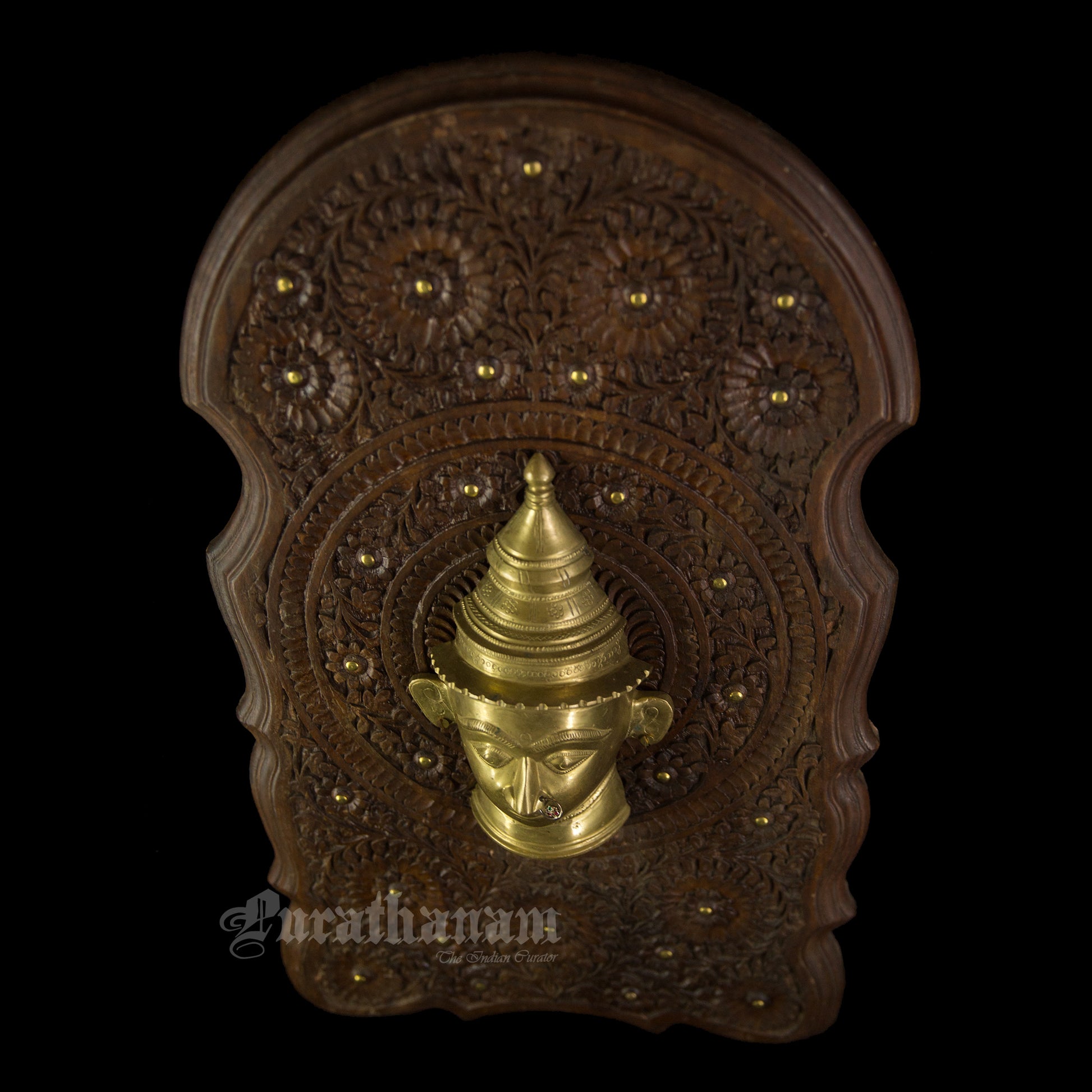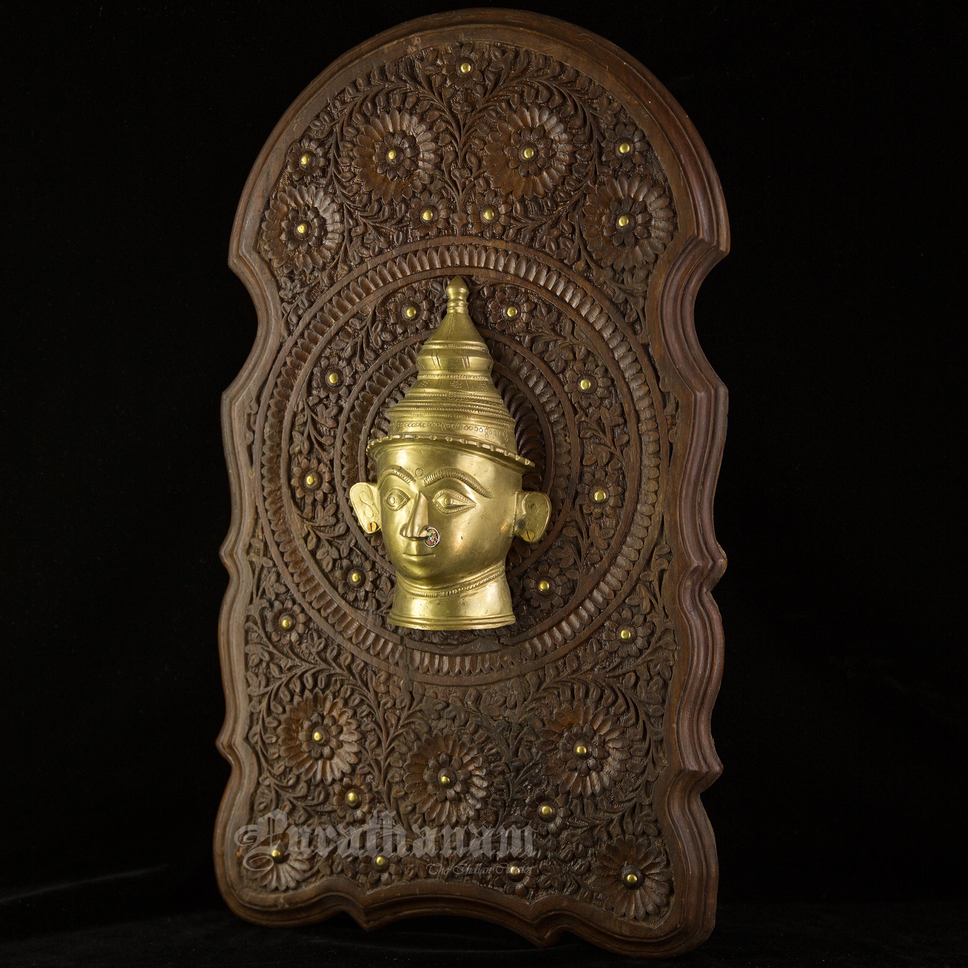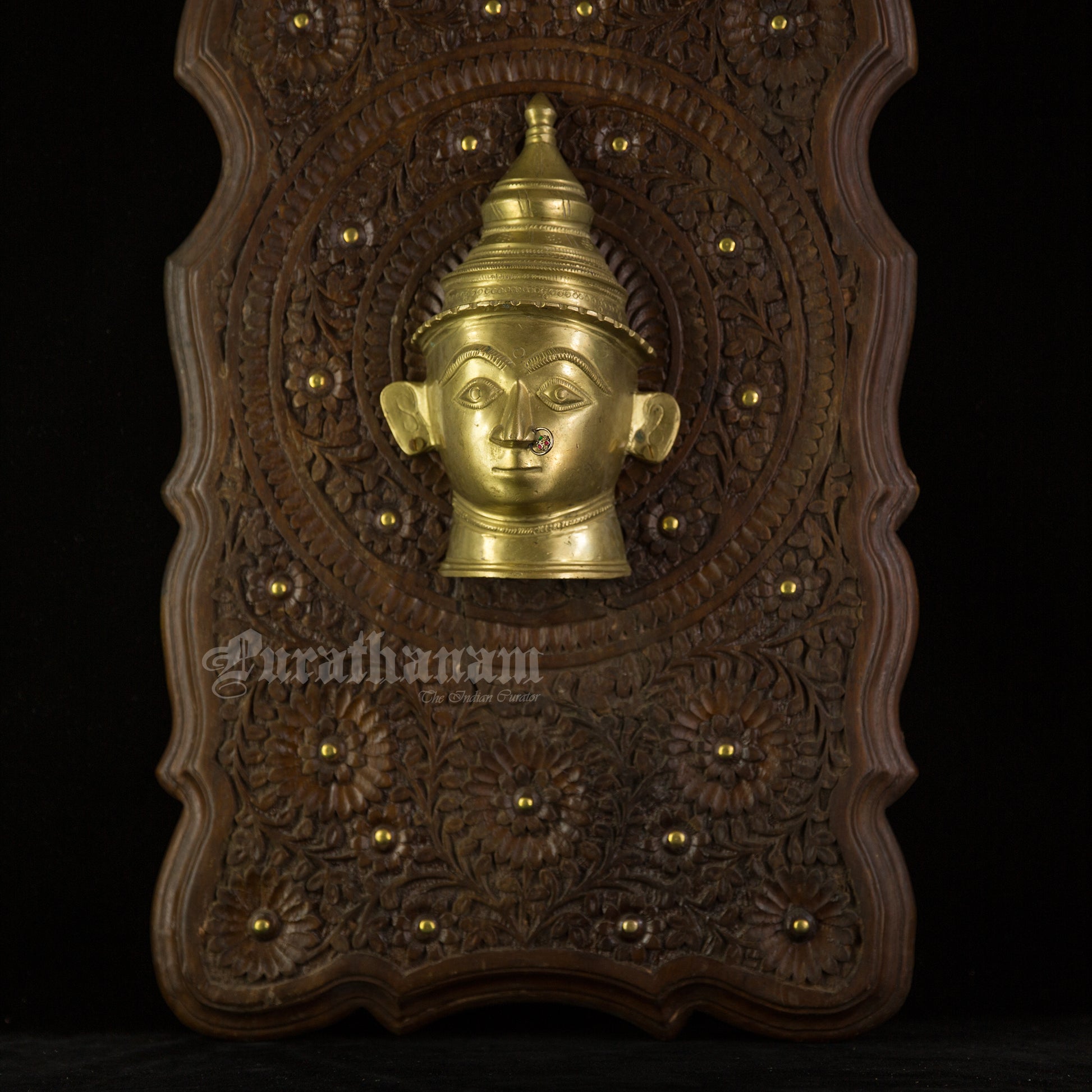 Here is a beautiful Wall hanging with a beautiful Gauri head made of Brass and mounted on Walnut wood.