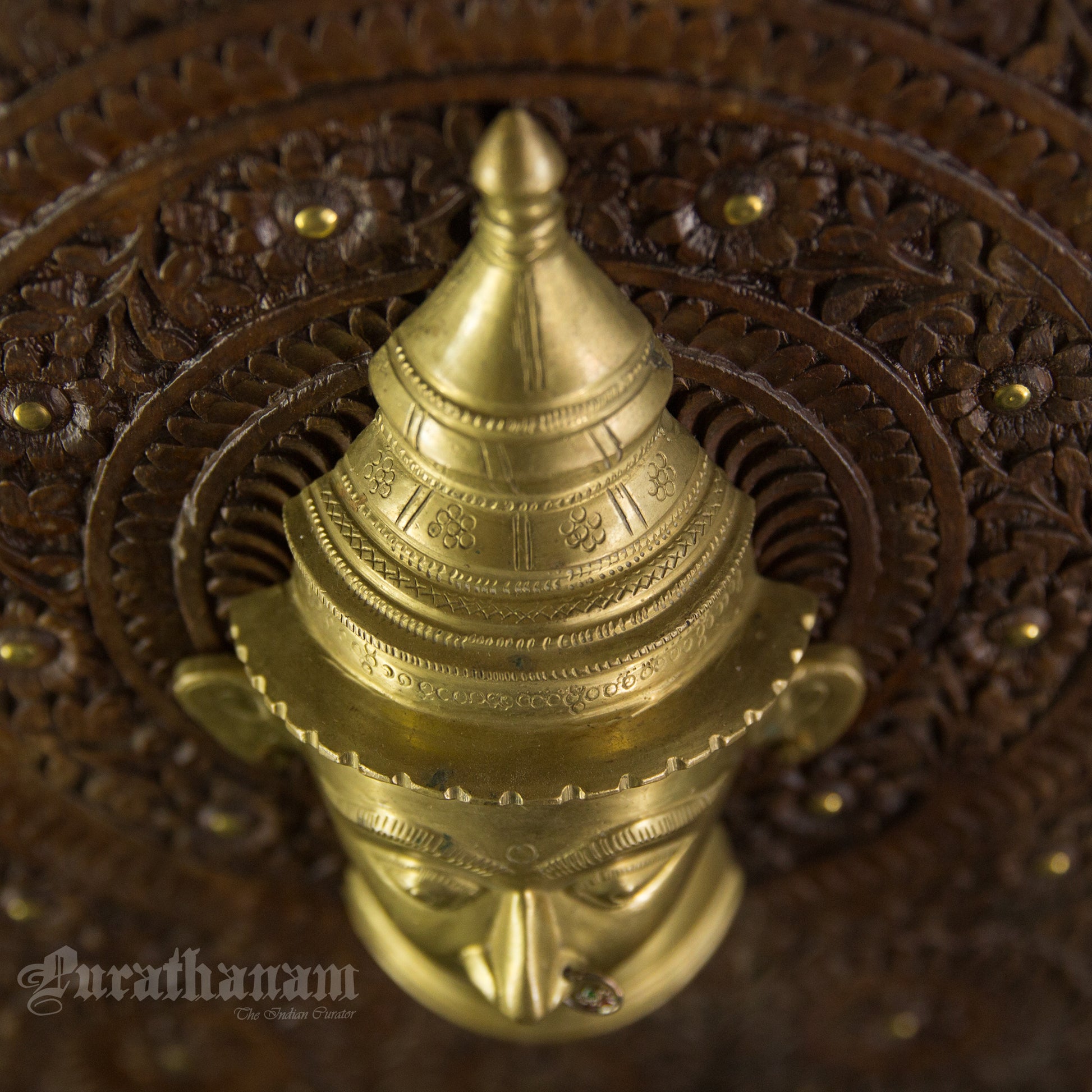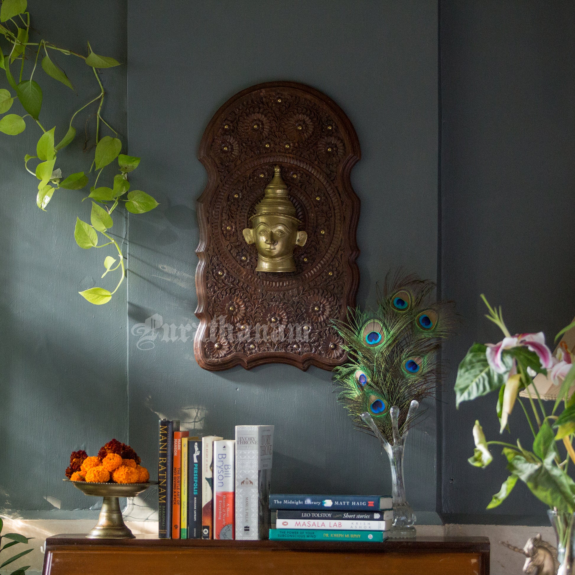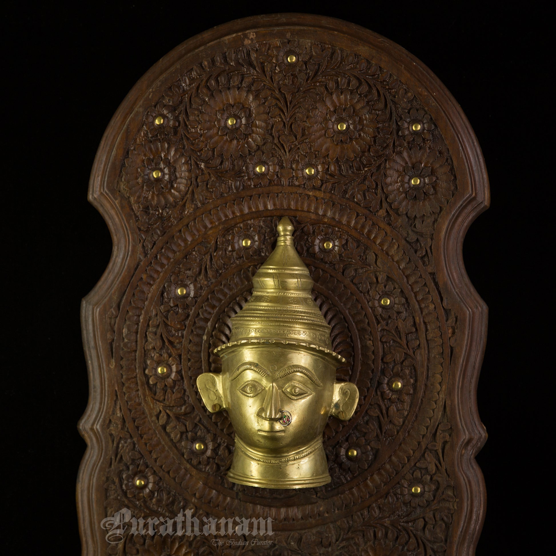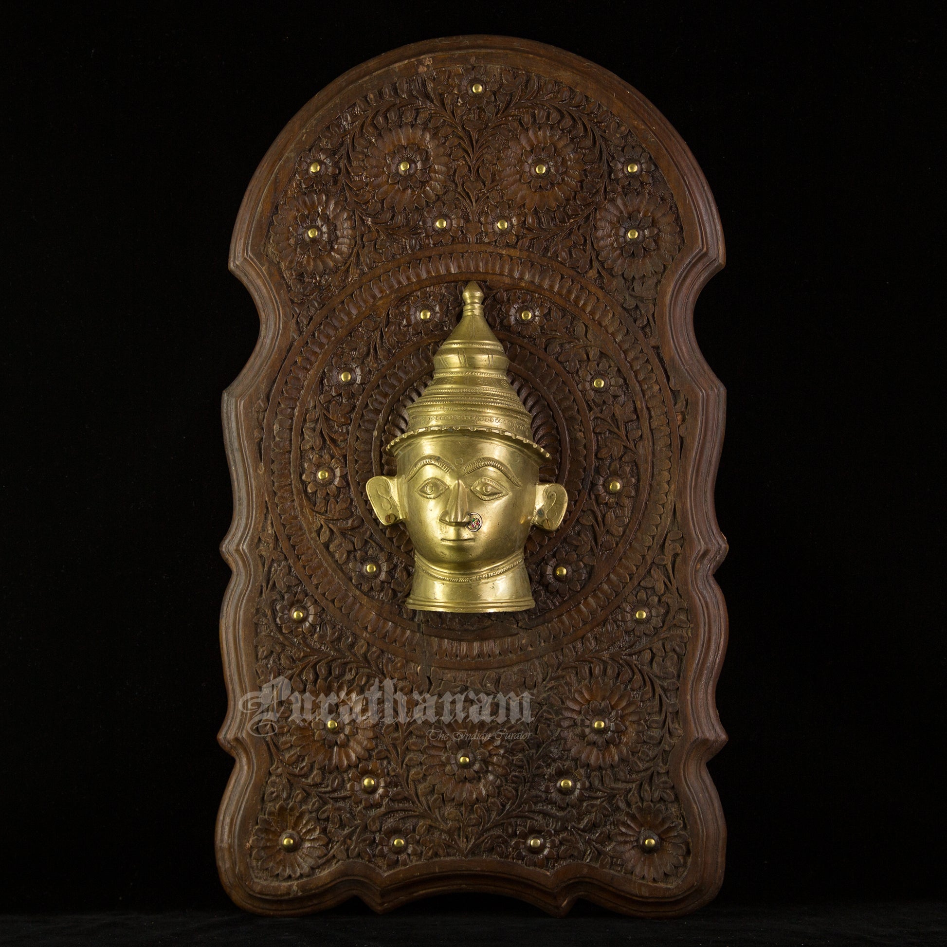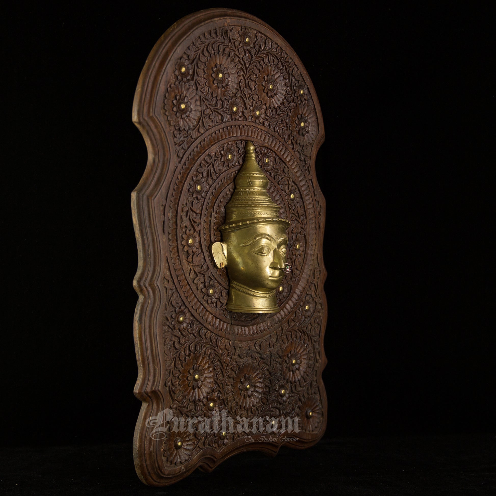 Here is a beautiful Wall hanging with a beautiful Gauri head made of Brass and mounted on Walnut wood.