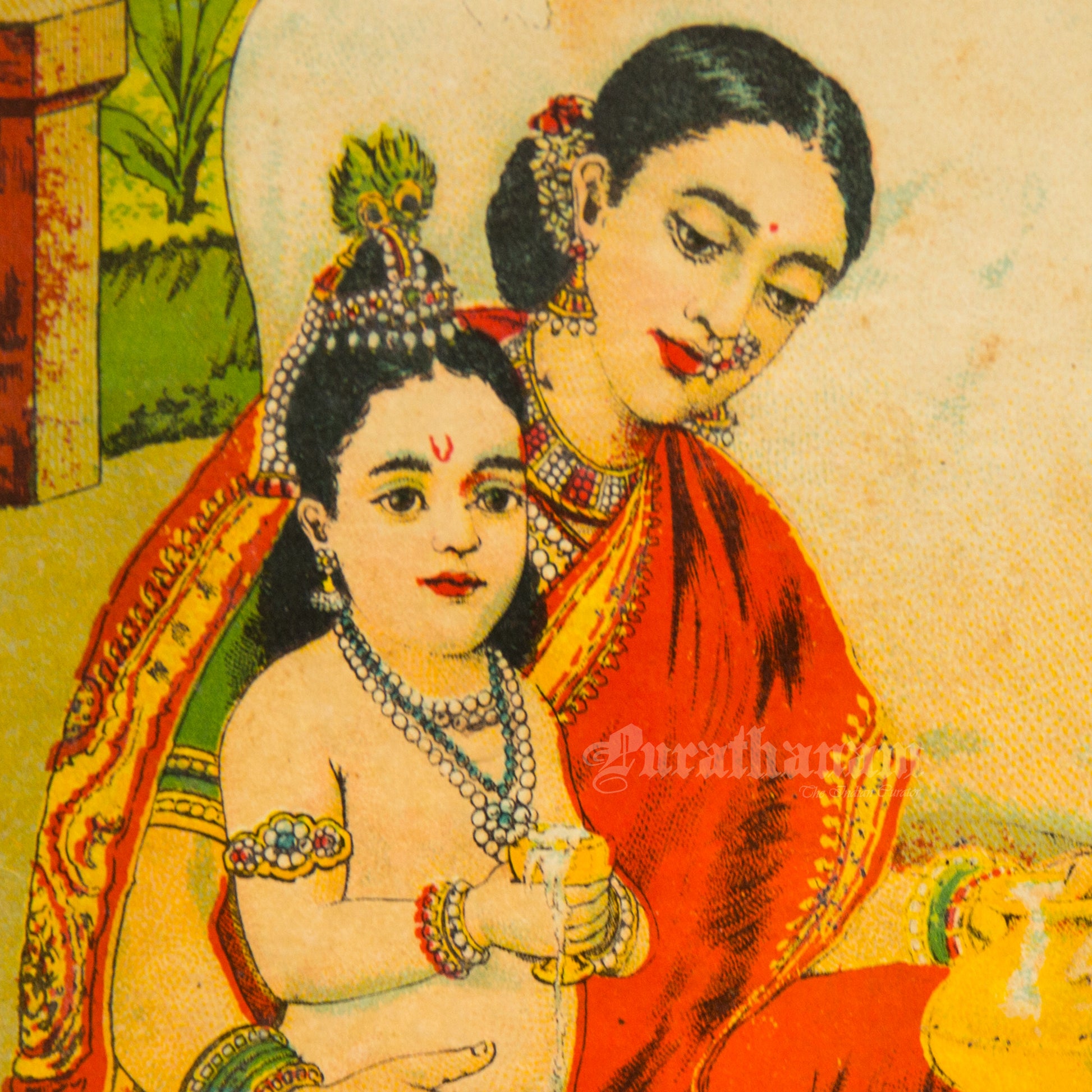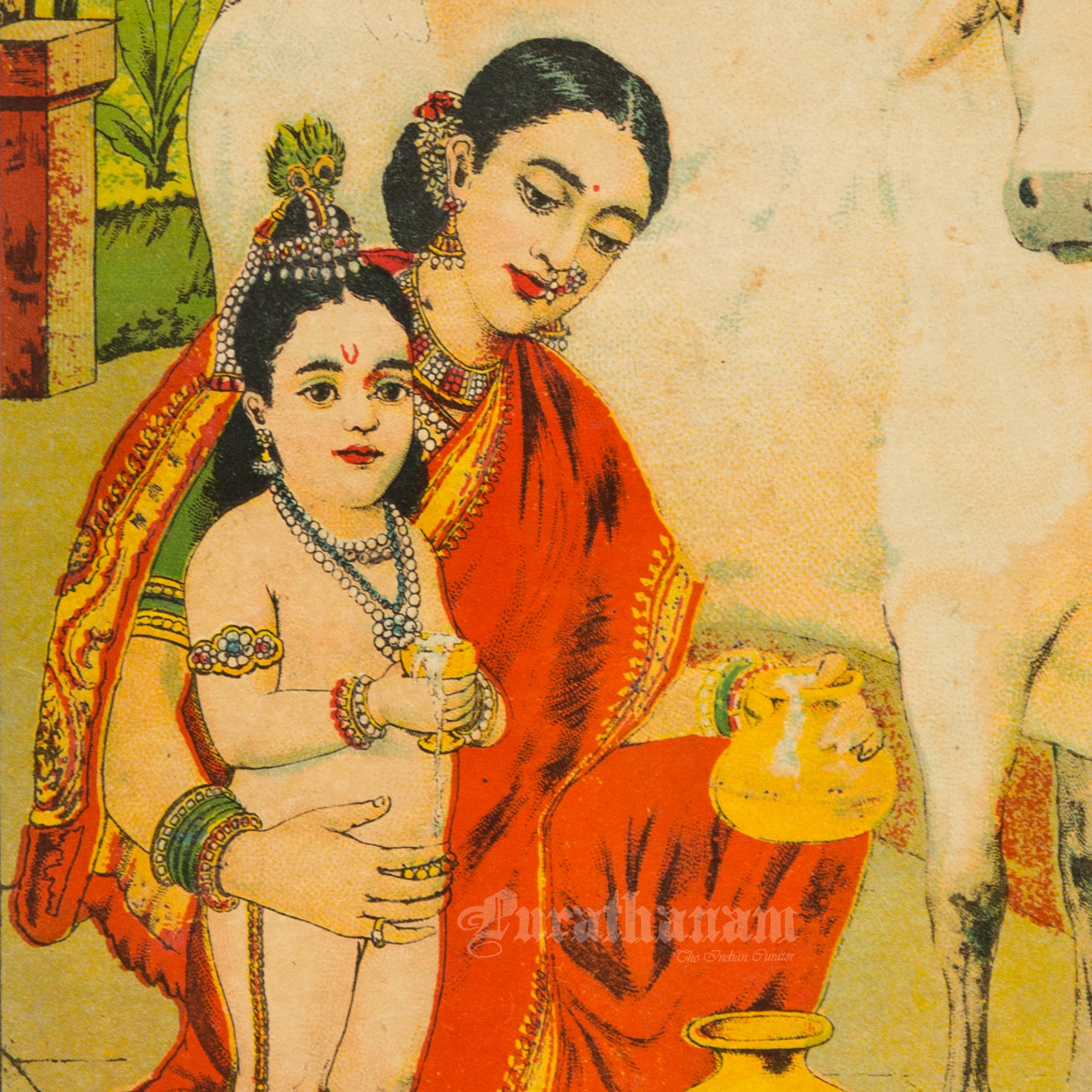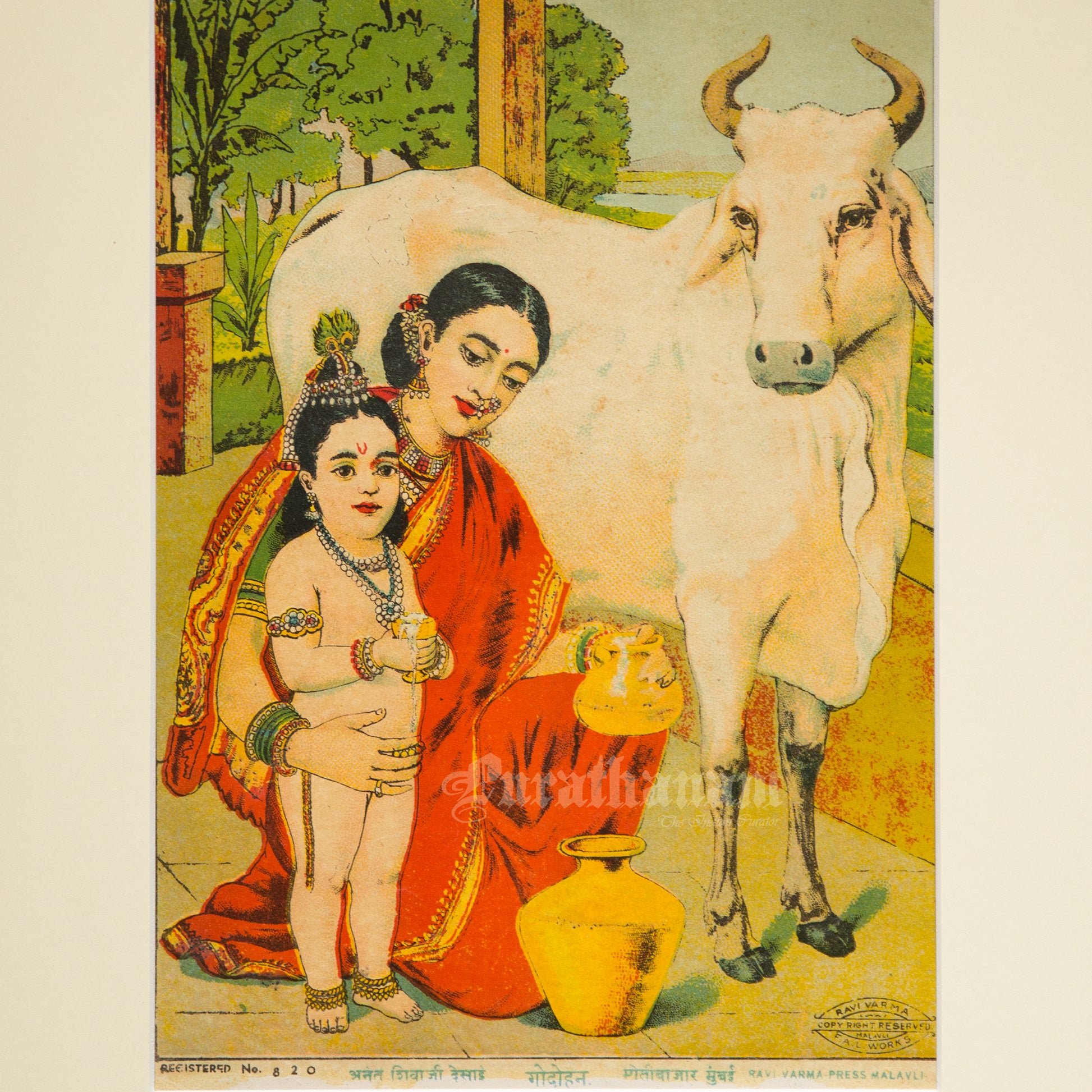 Introducing mini lithograph prints of size 10”x7” from 1920s - 1930s of Godhohan by Ravi Varma an Indian who achieved recognition for his depiction of scenes from the epics of the Mahabharata and Ramayana.
