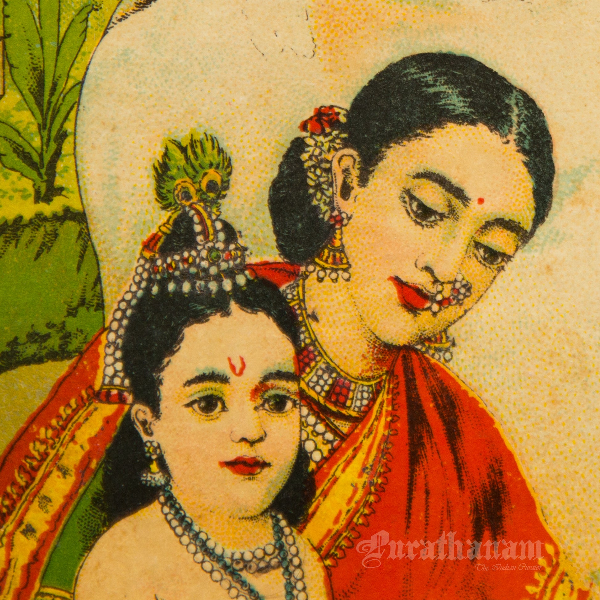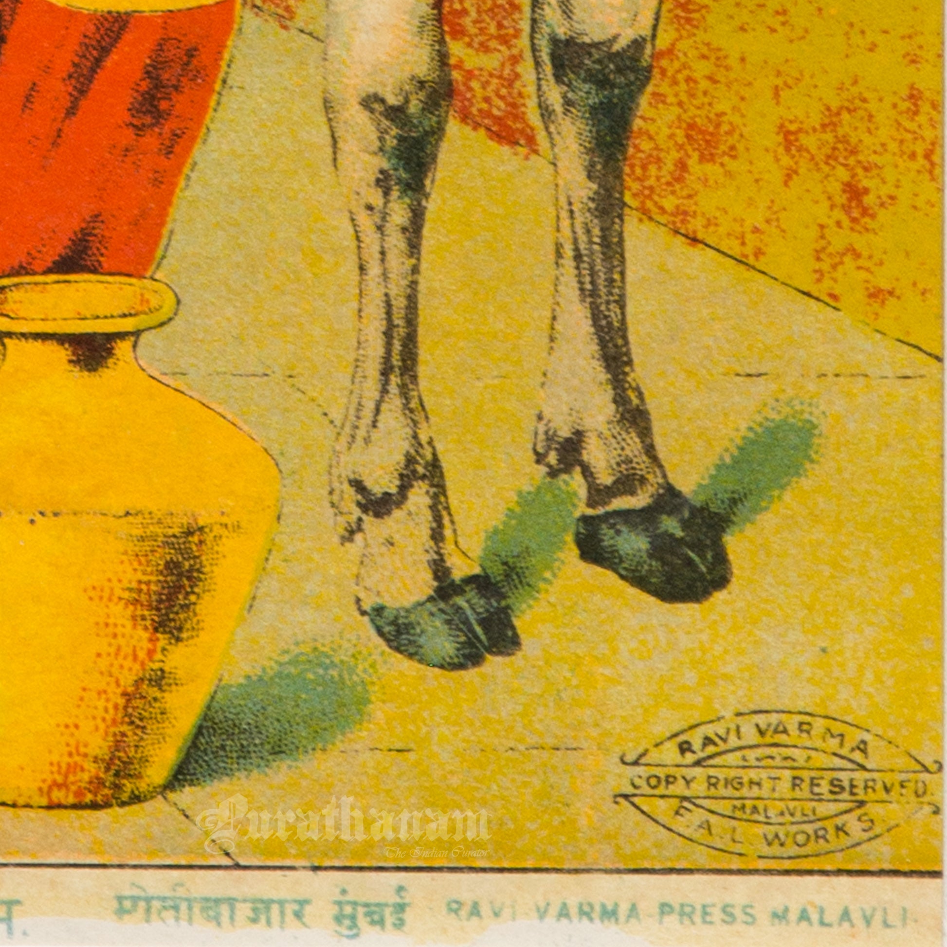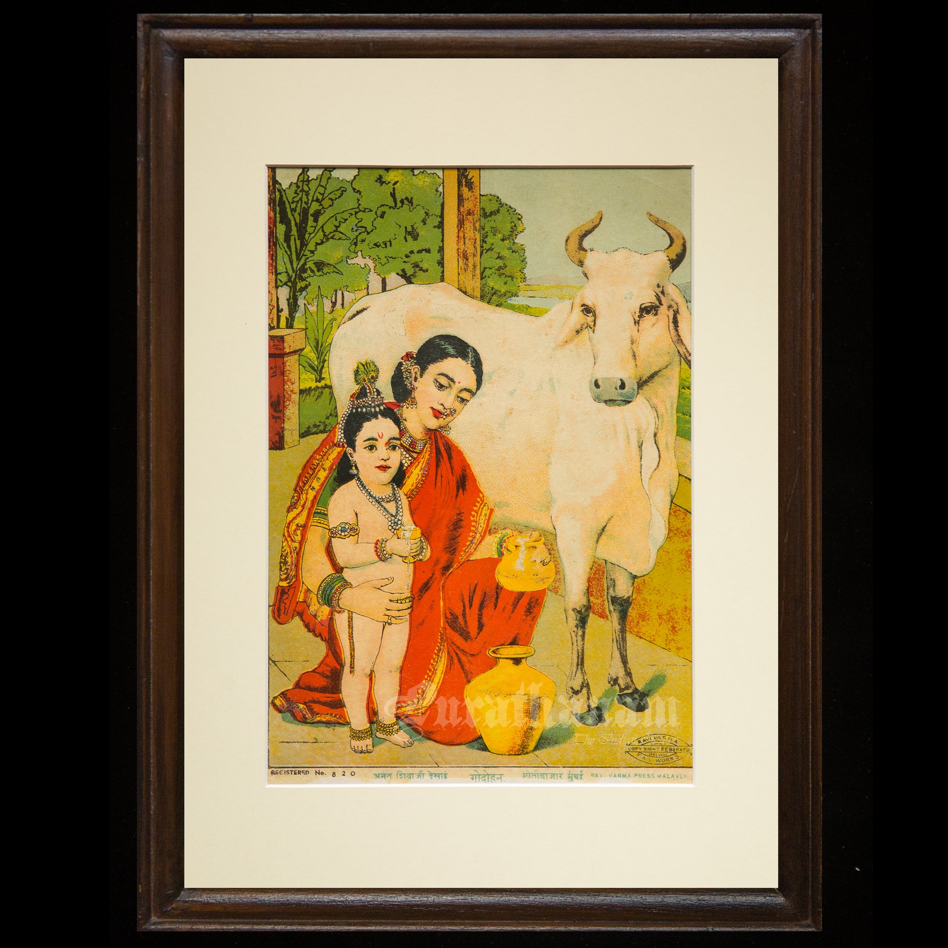 Introducing mini lithograph prints of size 10”x7” from 1920s - 1930s of Godhohan by Ravi Varma an Indian who achieved recognition for his depiction of scenes from the epics of the Mahabharata and Ramayana.