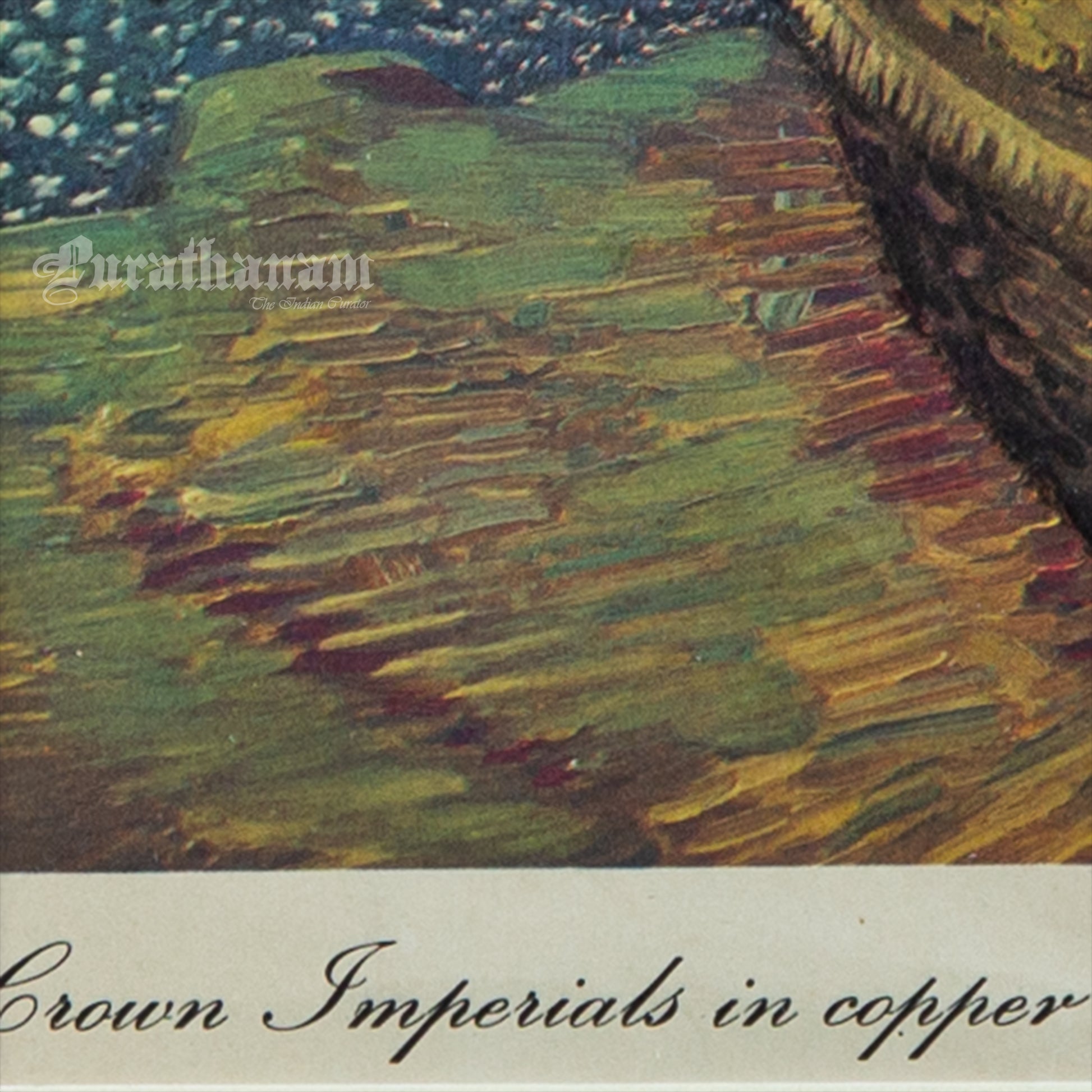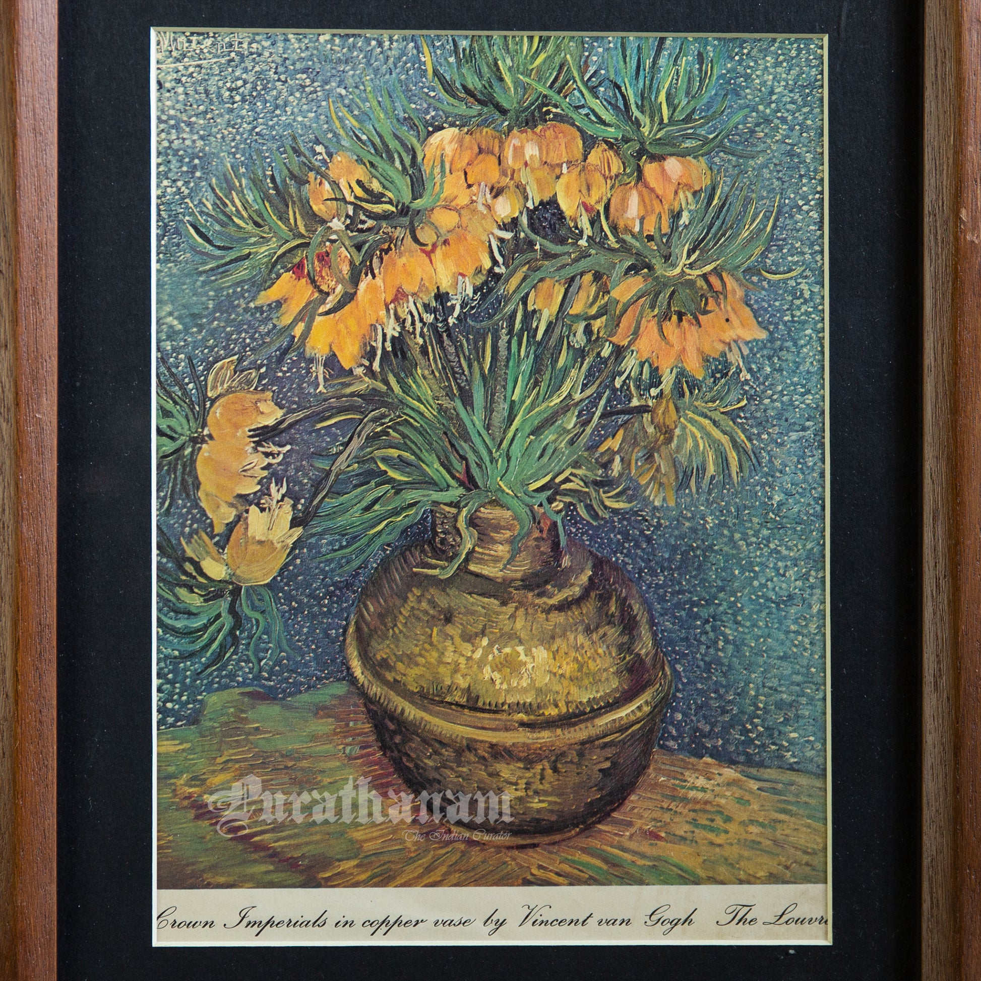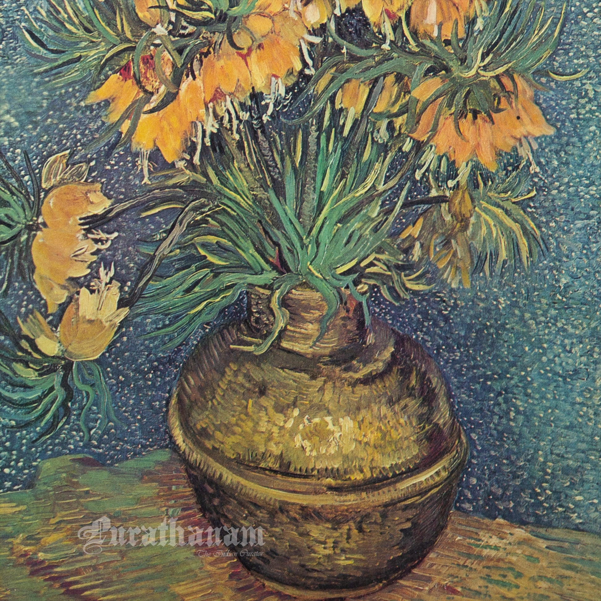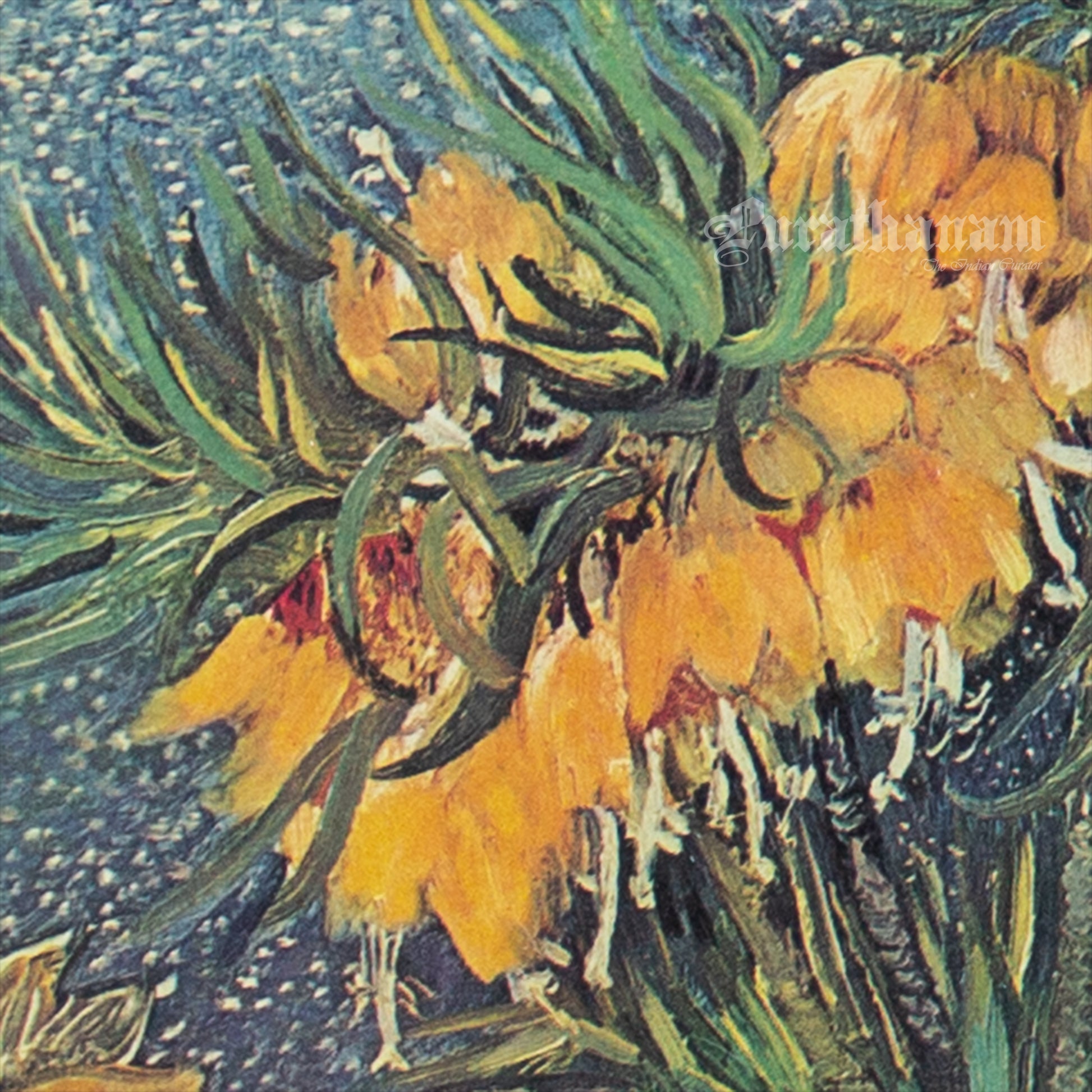 Here is an Archival print from 1950s of “Imperial Fritillaries in a Copper Vase" by the great Dutch artist and the post Impressionist painter Vincent Van Gogh. It is originally an oil painting on canvas measuring 73.5 by 60.5 cm which was painted in Paris in 1887. The painting is now part of the collection of the Musée d’Orsay in Paris, France.