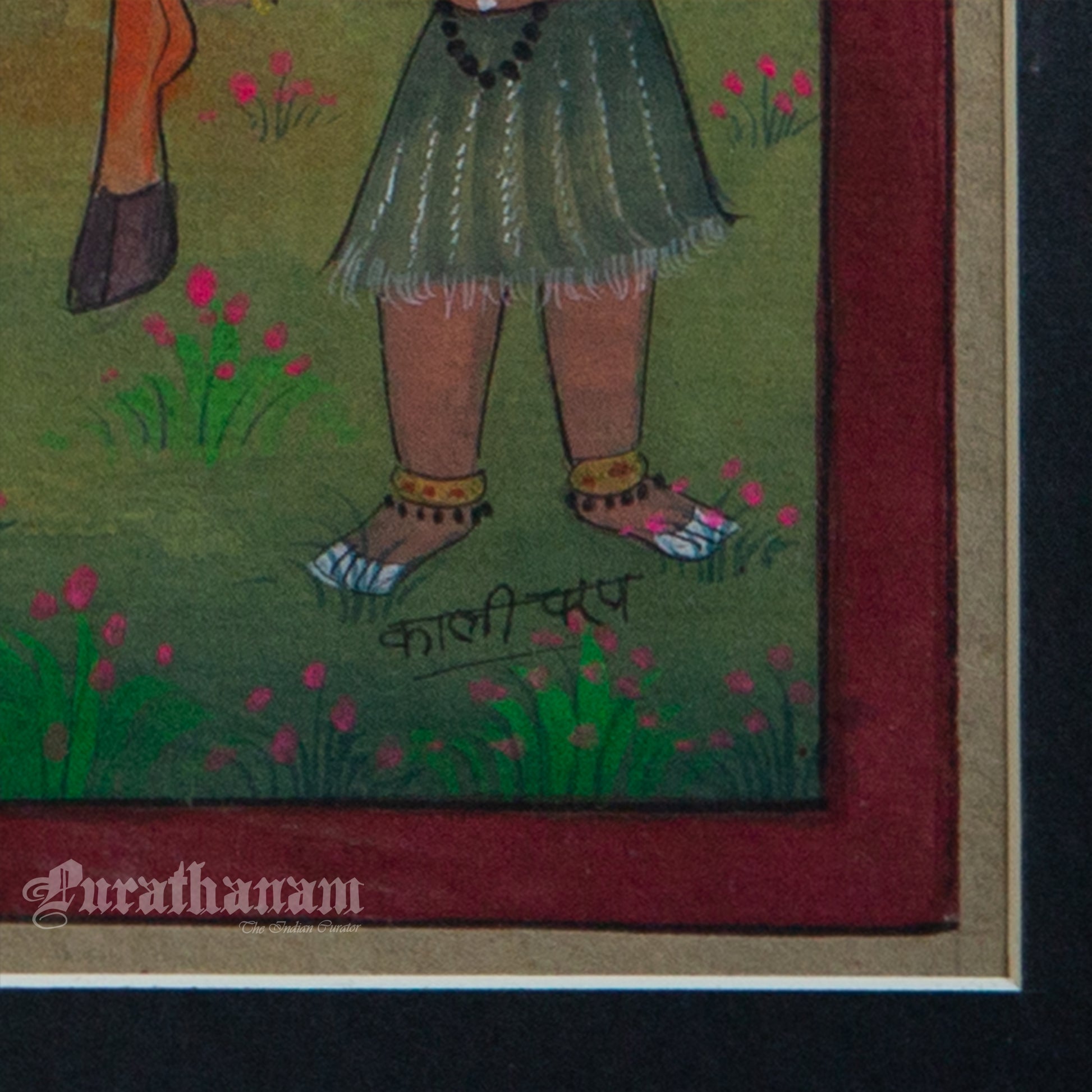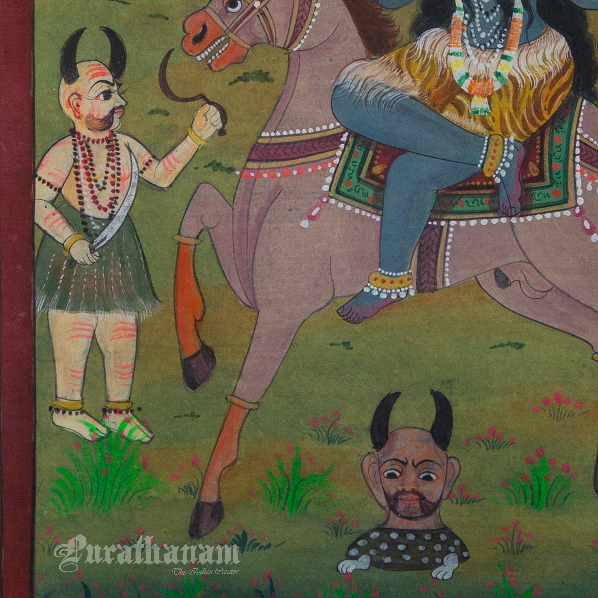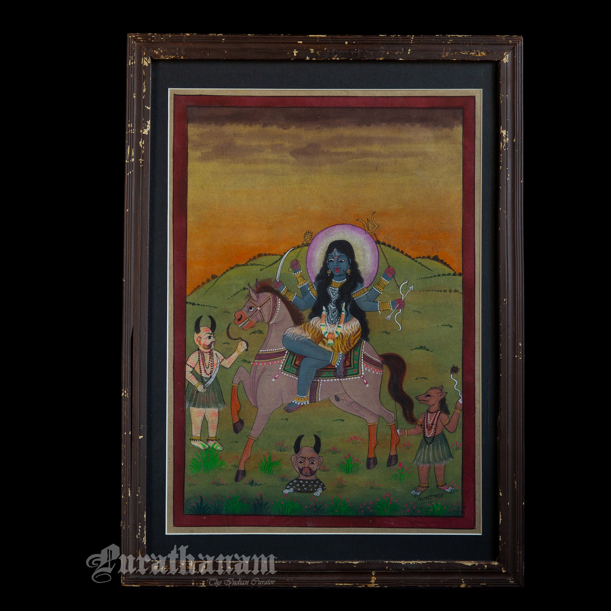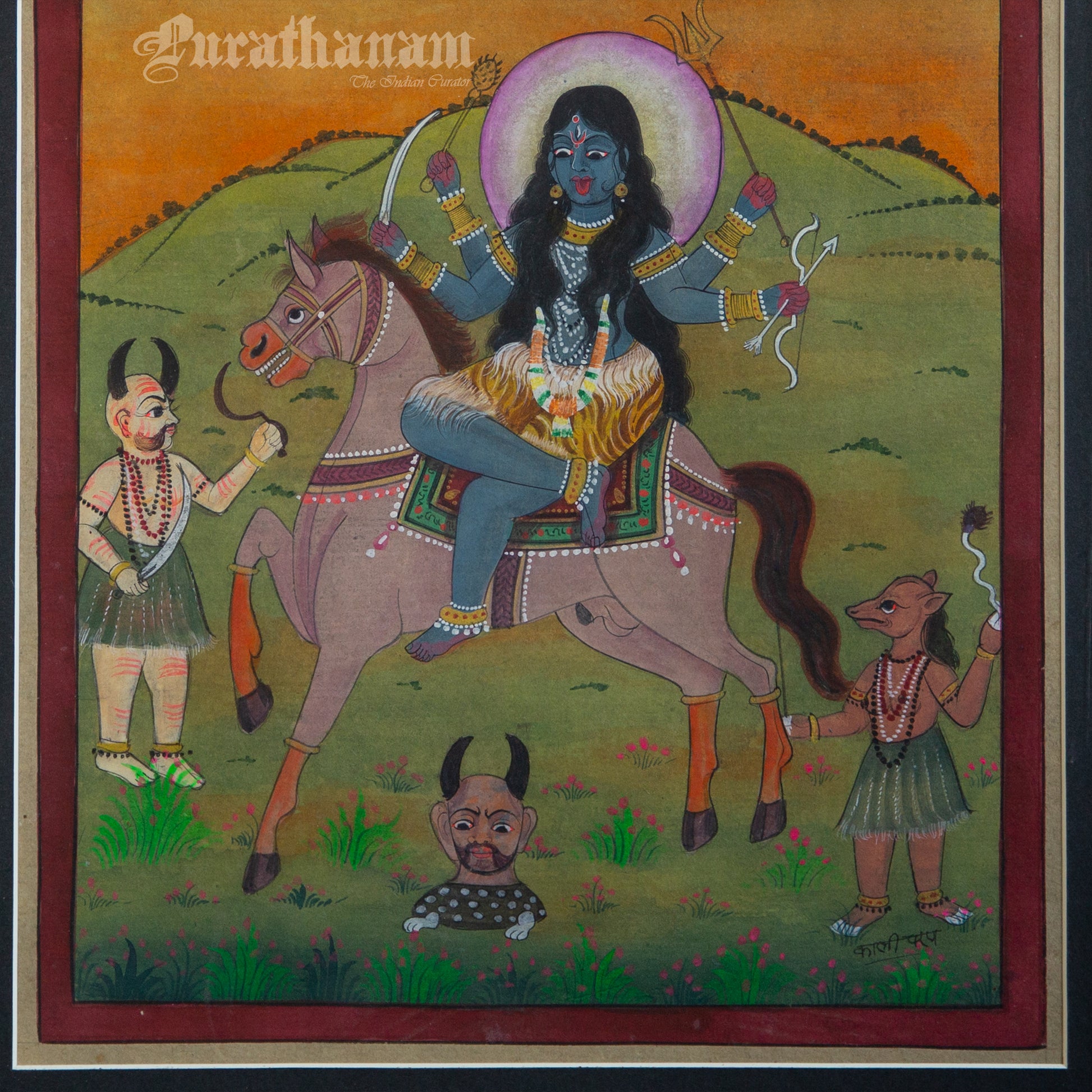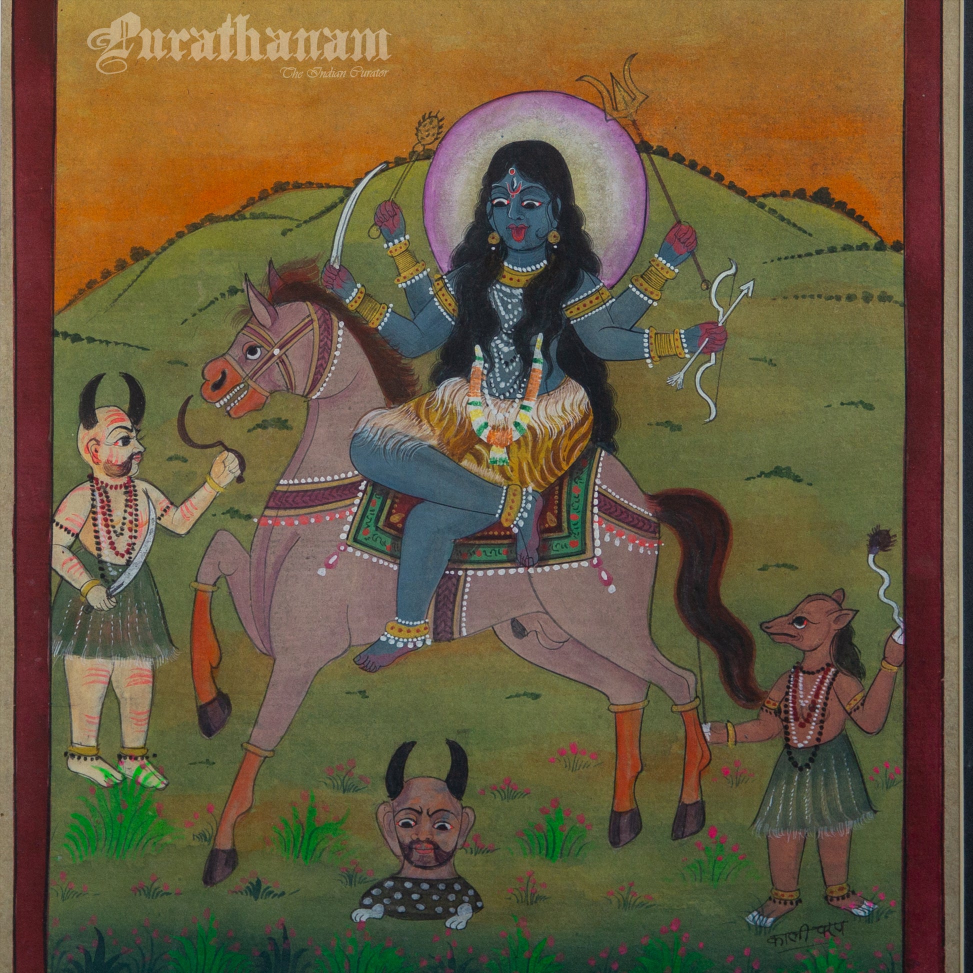 Here we have lovely miniature painting of Kalarathri Devi from the Bengal School of art painted by an Indian Artist Kalicharan in 1980s.