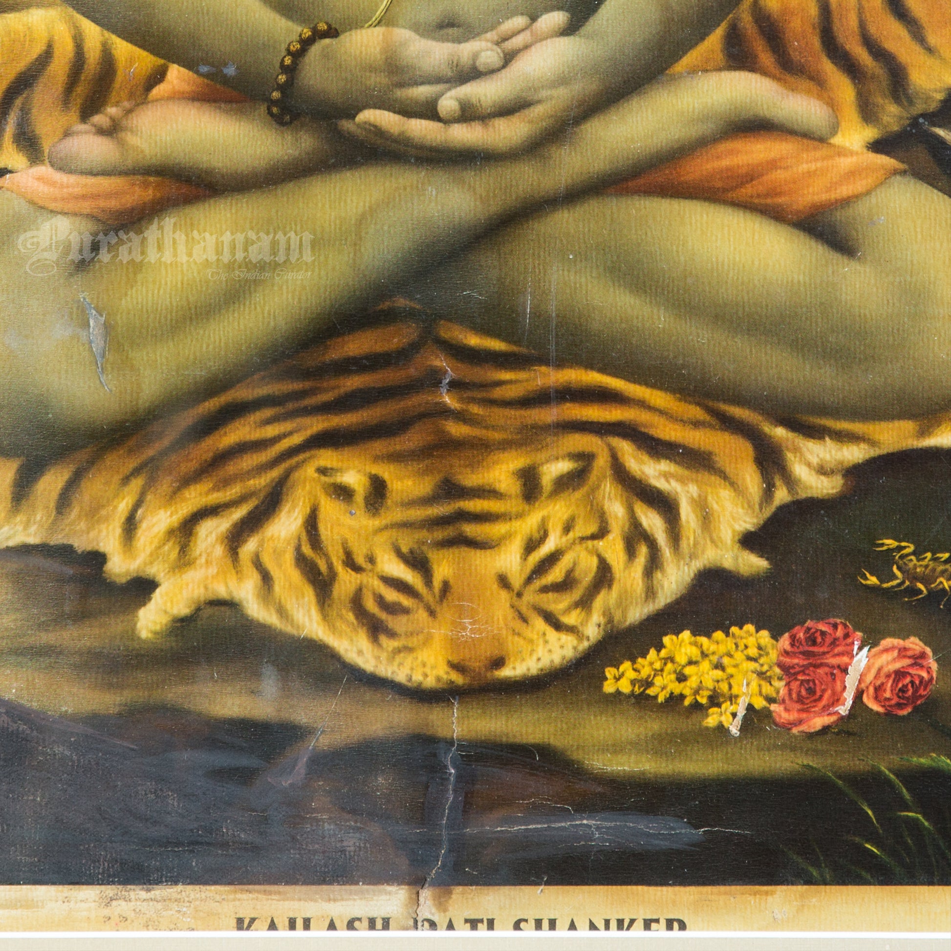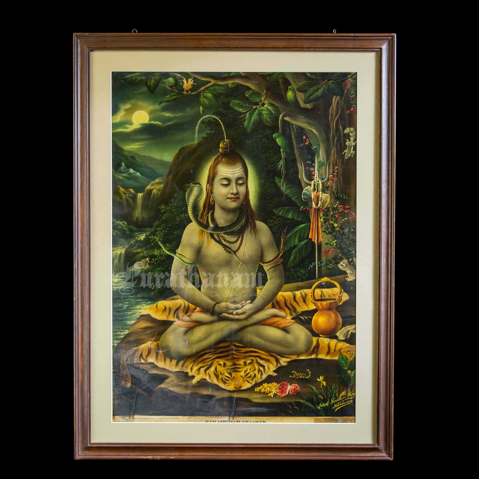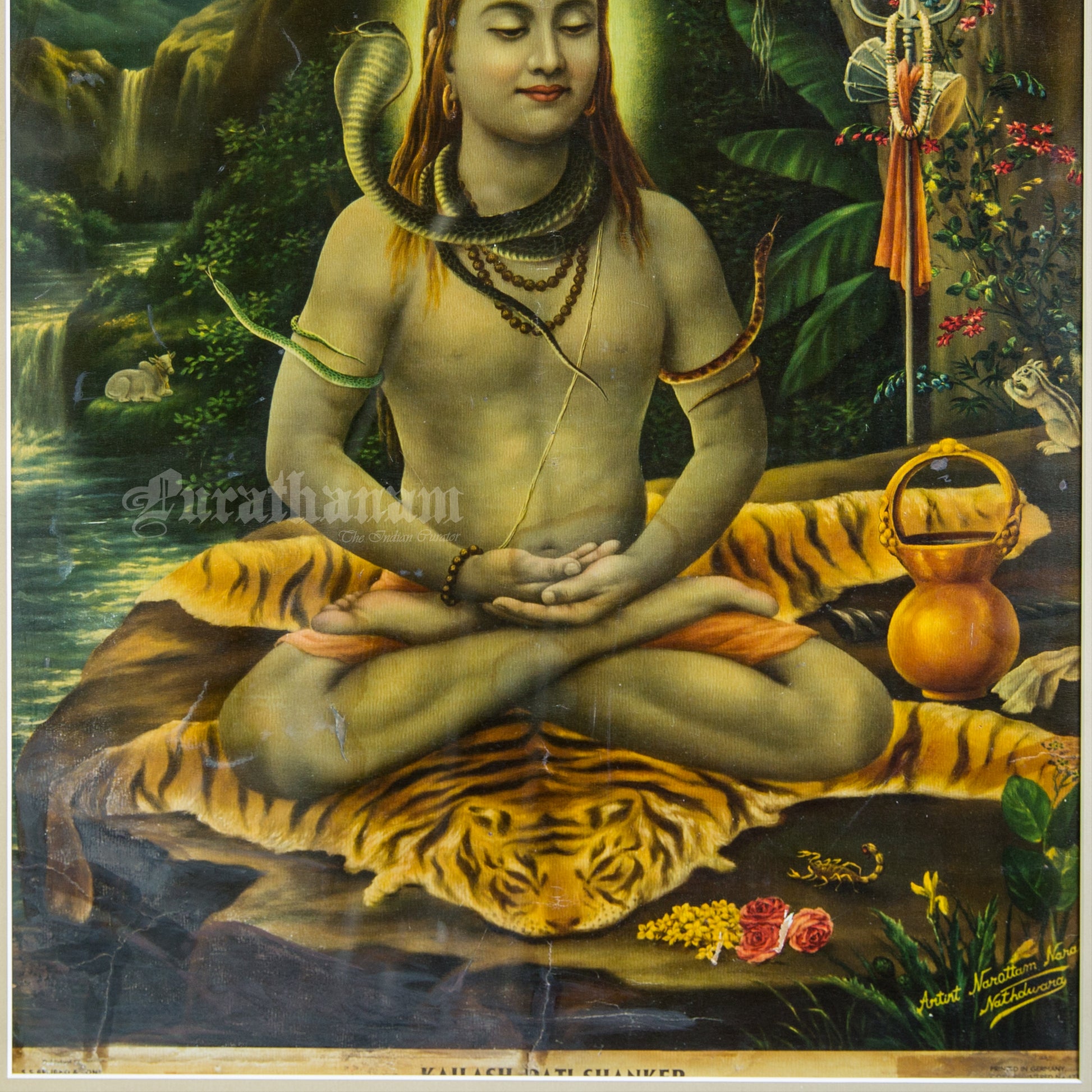 This is one of the Chromolithograph prints printed in Germany of Kailash Pati Shankar by Narottam Narayan Nathdwara in 1920s.