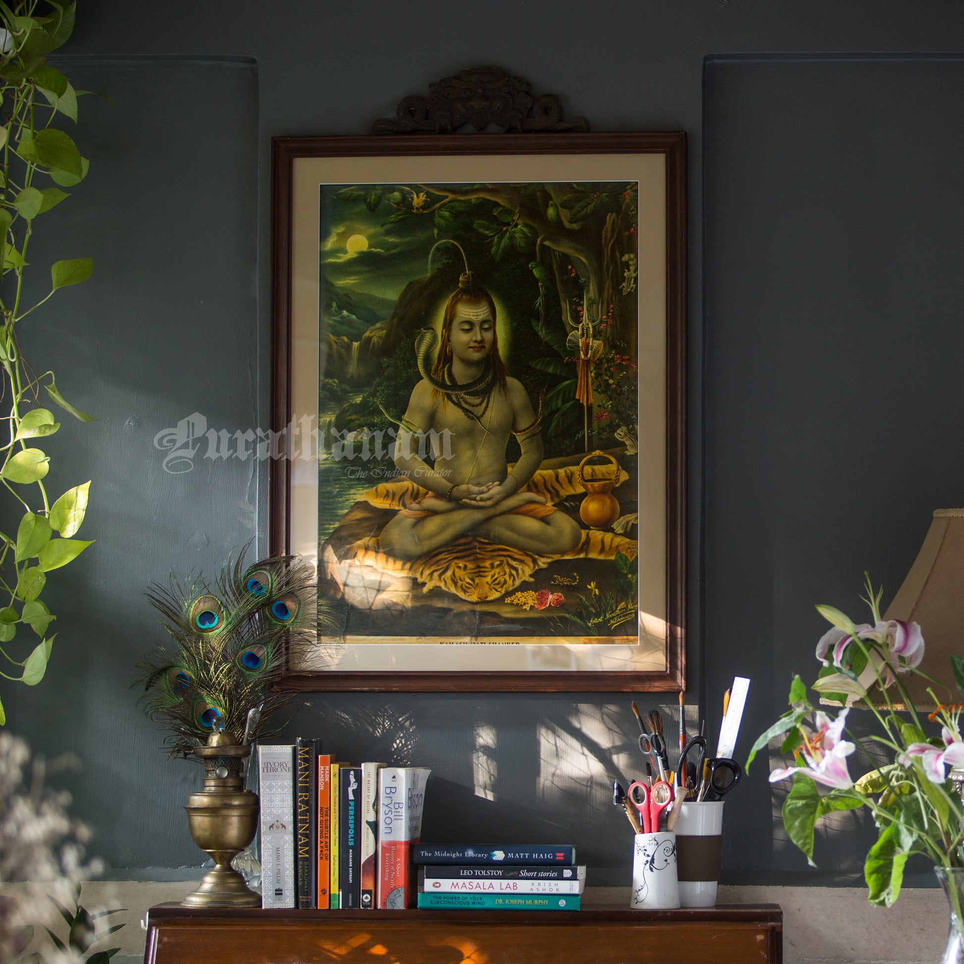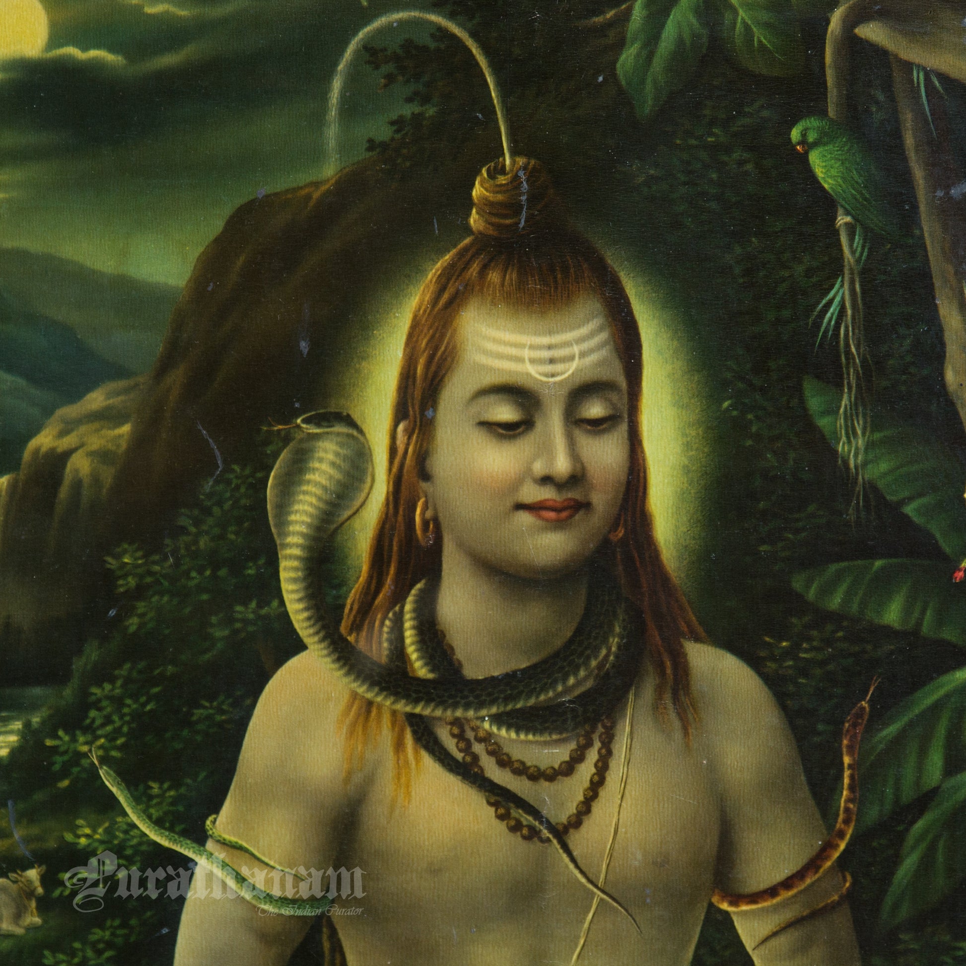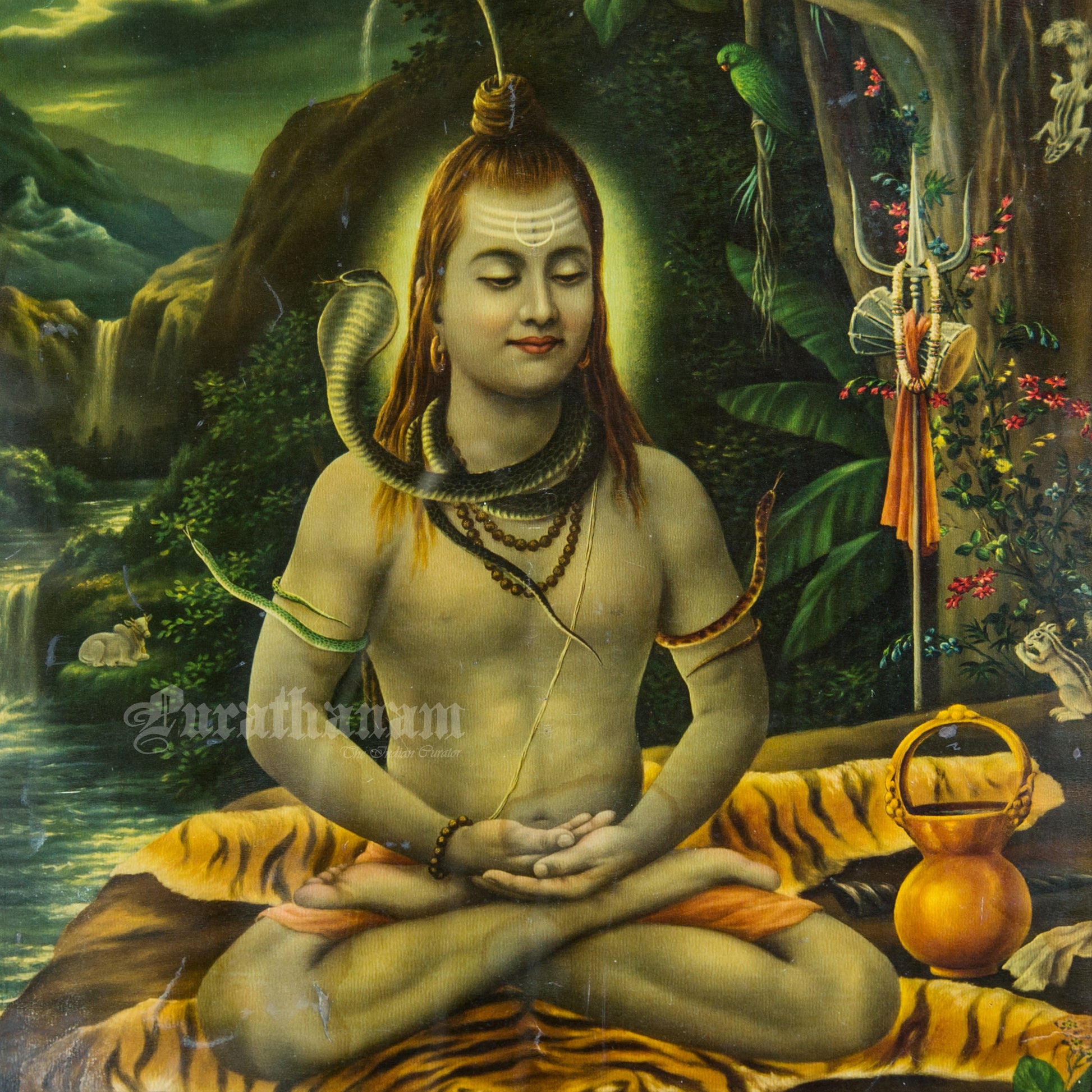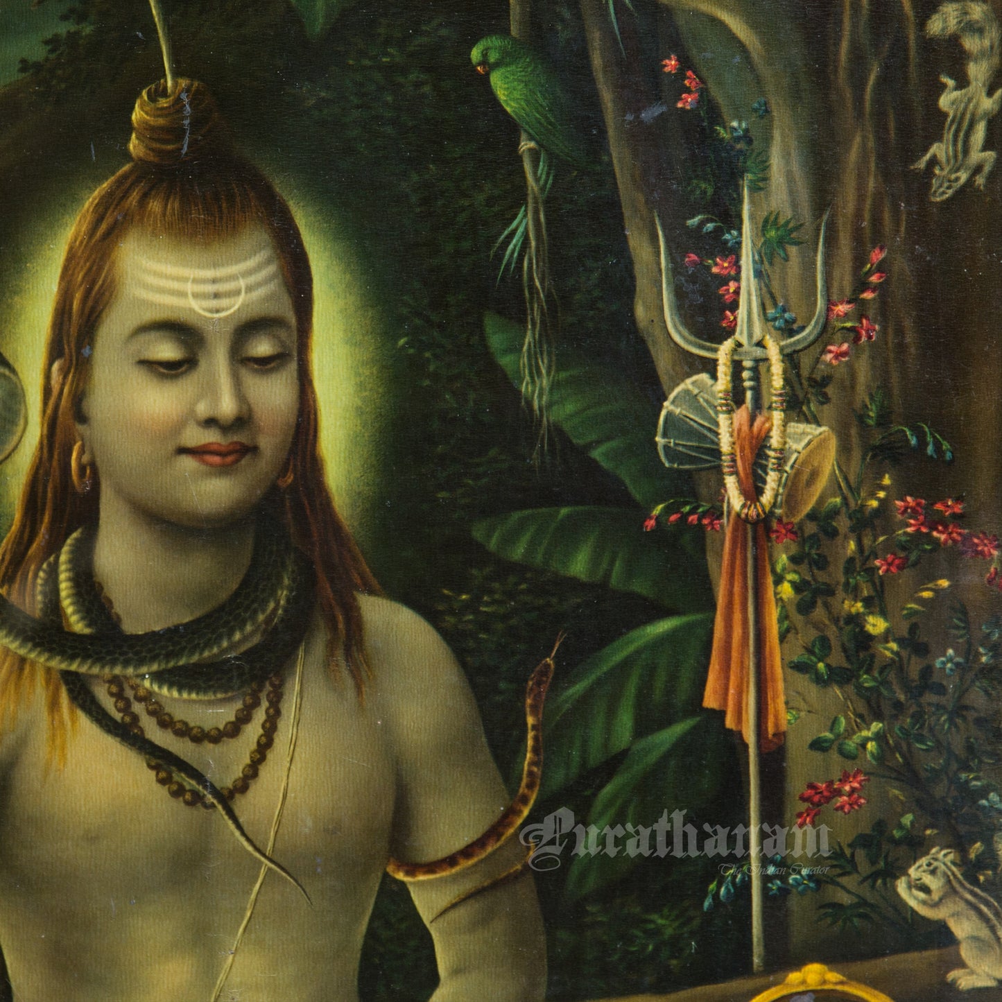 This is one of the Chromolithograph prints printed in Germany of Kailash Pati Shankar by Narottam Narayan Nathdwara in 1920s.