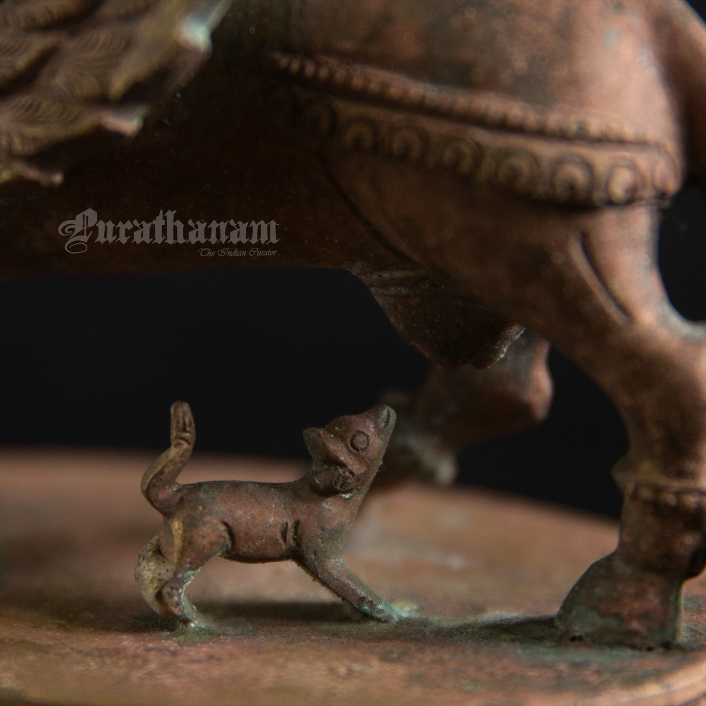 Here we have a Kamadenu sculpture made of brass, all the way from Tamizh Nadu, south of India.